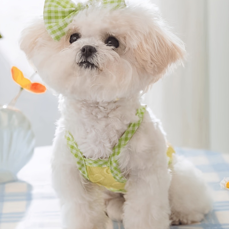 봄 여름 얇은 소재 반려동물 엠보싱 하트 끈 머리핀 세트 귀여운 강아지 옷 반팔 조끼 트렌디 브랜드스토어 가기