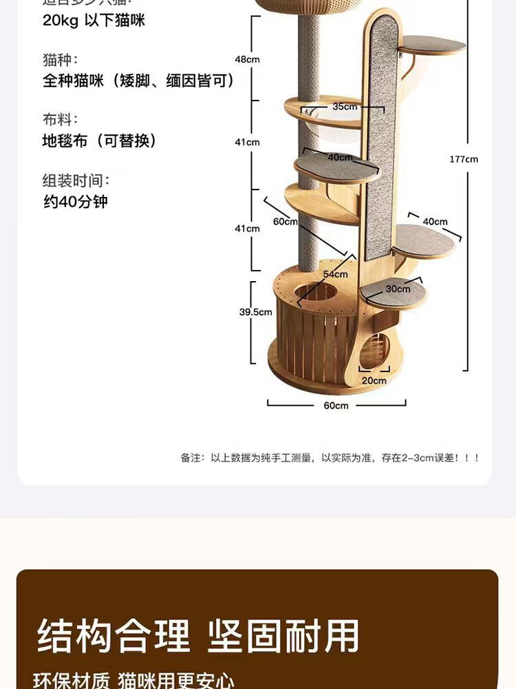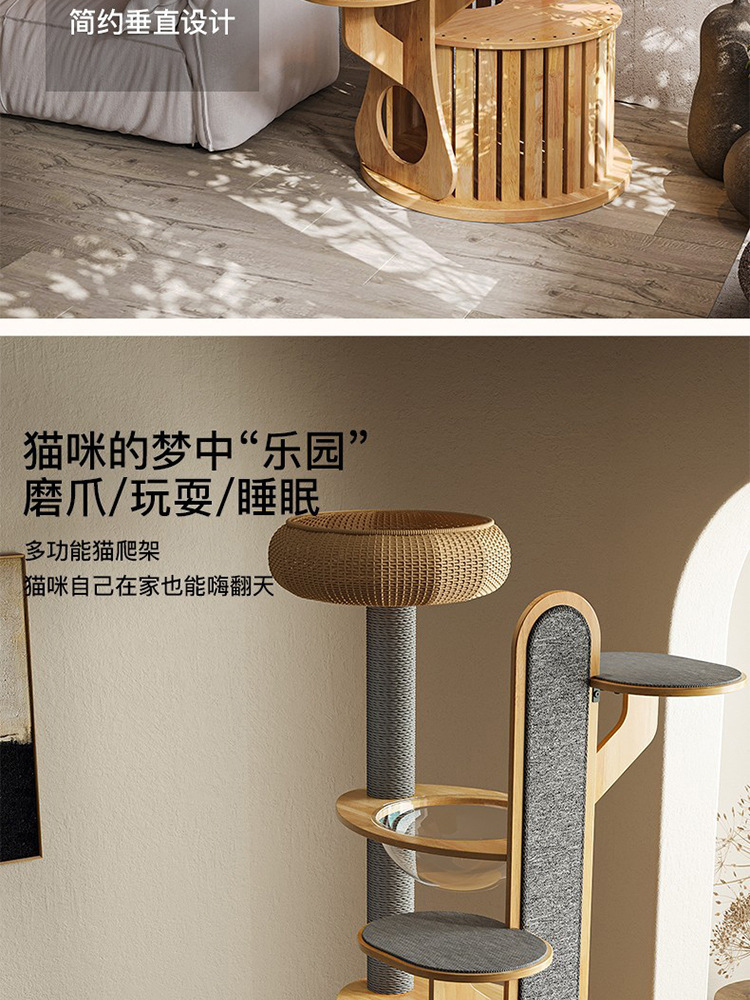 새로운 고양이 클라이밍 프레임, 대형 고양이 나무 장난감, 일체형 고양이 럭셔리 다층 고양이 집, 고양이 점프 플랫폼, 수직형 내마모성 전용스토어 가기