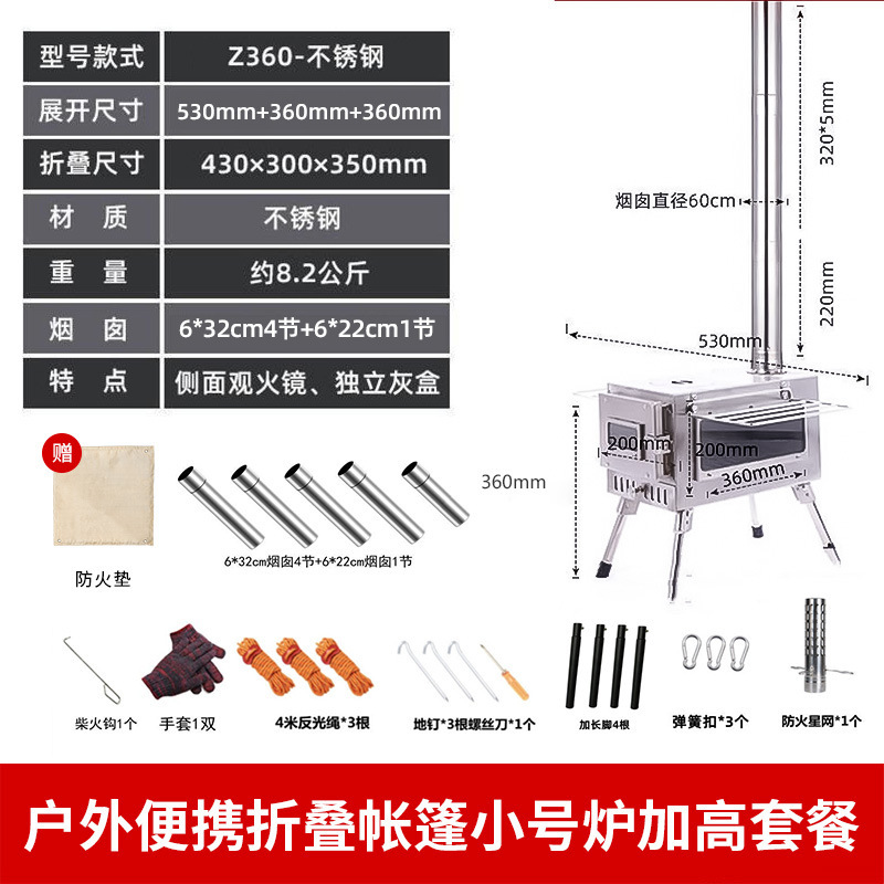 겨울 난방 장작 스토브 캠핑 스테인레스 스틸 텐트 장작 스토브 야외 난방 스토브 캠핑 스토브스토어 가기