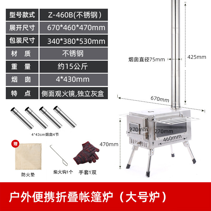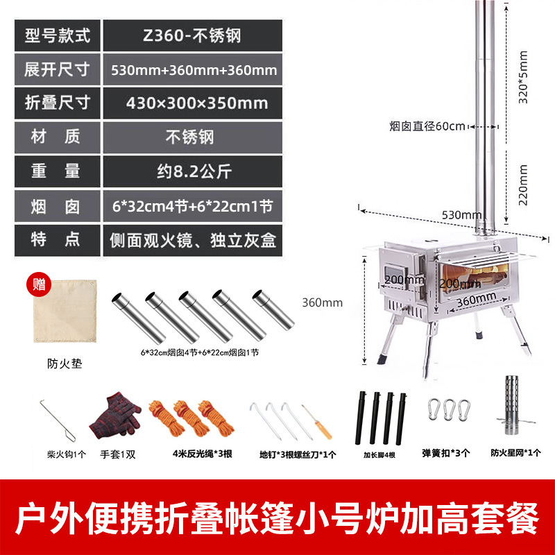 • 텐트 투명 장작 난로 스테인레스 스틸 모델 업그레이드 및 개선 버전♢♢