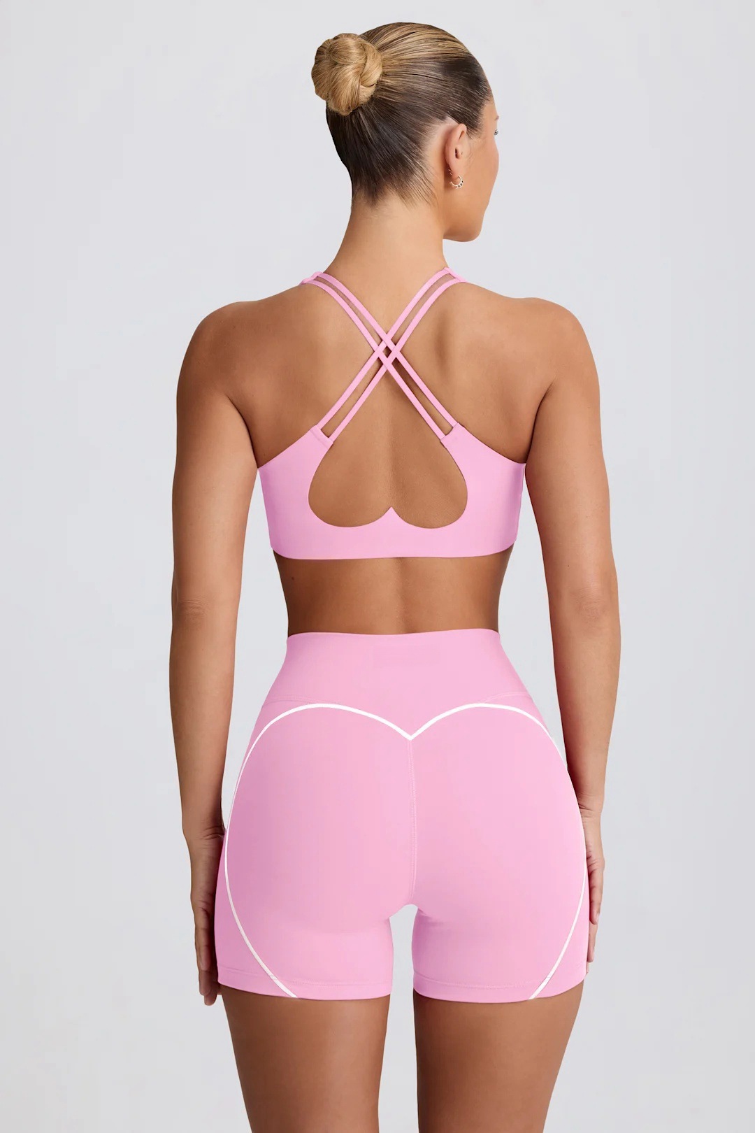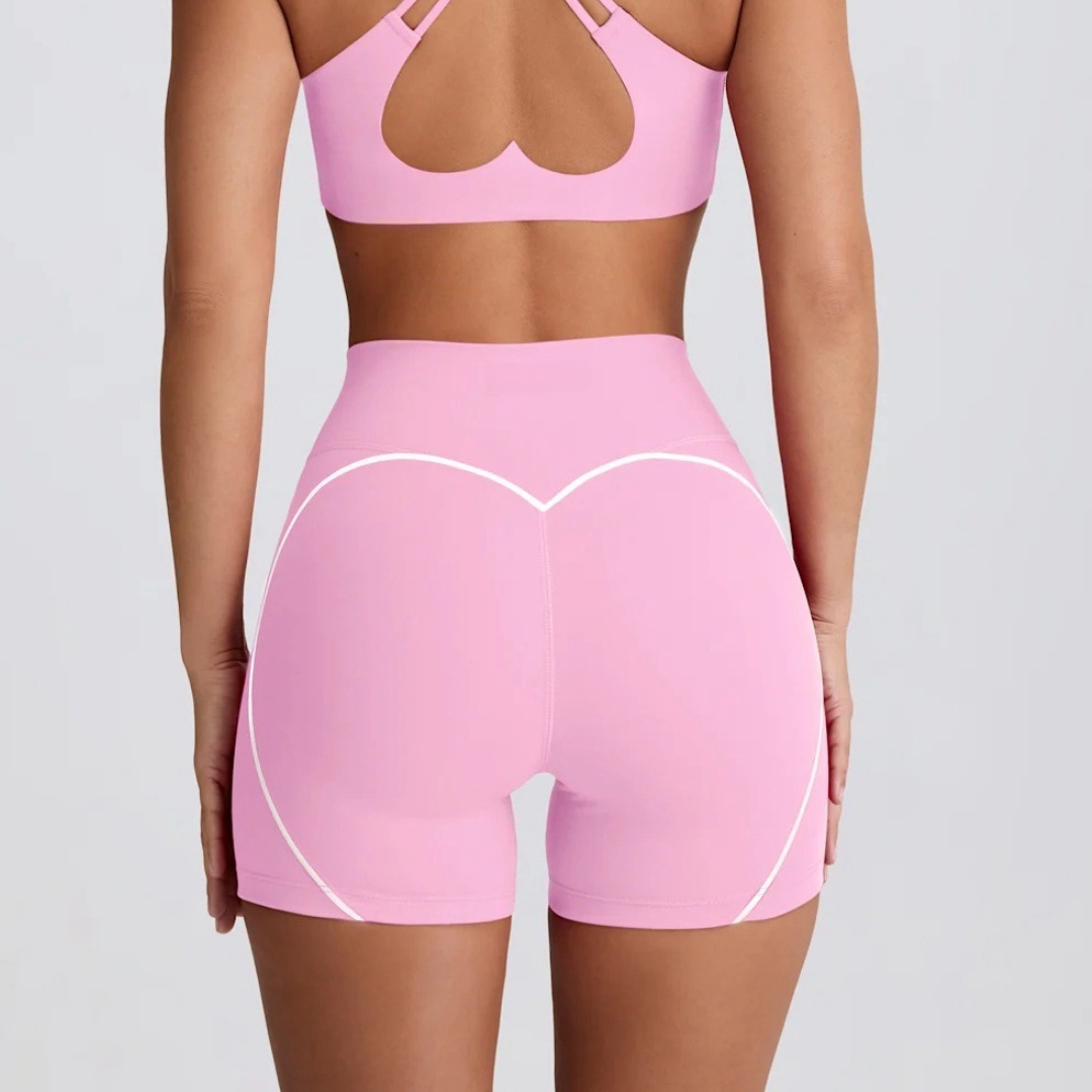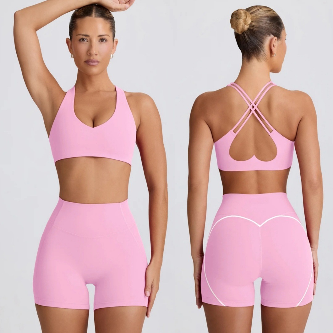 하트무늬 반바지 요가 반팔 탱크탑 스타일 세트 피트니스 편안하고 다용도 브라 아름다운 등 라인 가슴 패드 투피스 세트