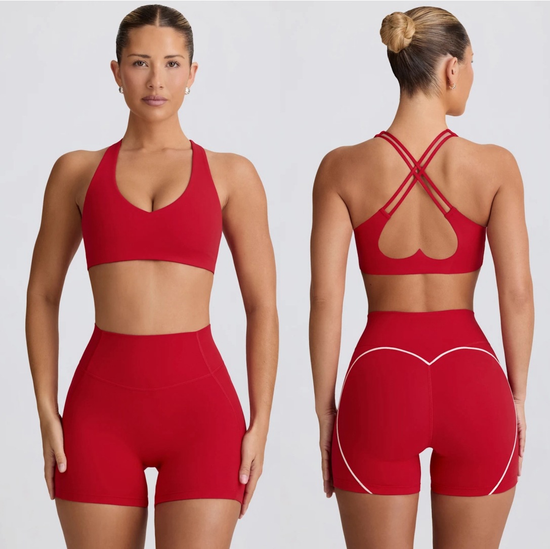 하트무늬 반바지 요가 반팔 탱크탑 스타일 세트 피트니스 편안하고 다용도 브라 아름다운 등 라인 가슴 패드 투피스 세트스토어 가기