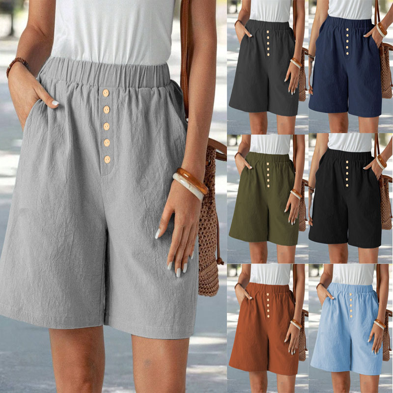 2025 유럽과 미국의 국경 아마존 새로운 여름 여성 캐주얼 느슨한 포켓 코튼 및 리넨 반바지스토어 가기