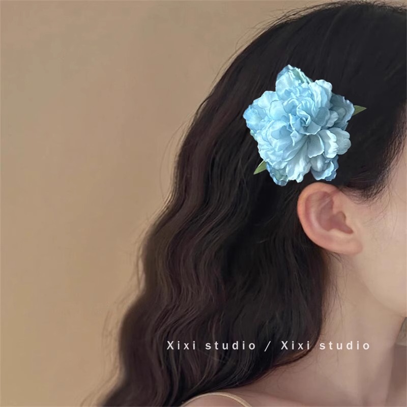 블루 튤립 머리핀 신선한 휴가 스타일 꽃 사이드 머리핀 사진 헤어 액세서리 분위기 앞머리 클립 머리 장식스토어 가기