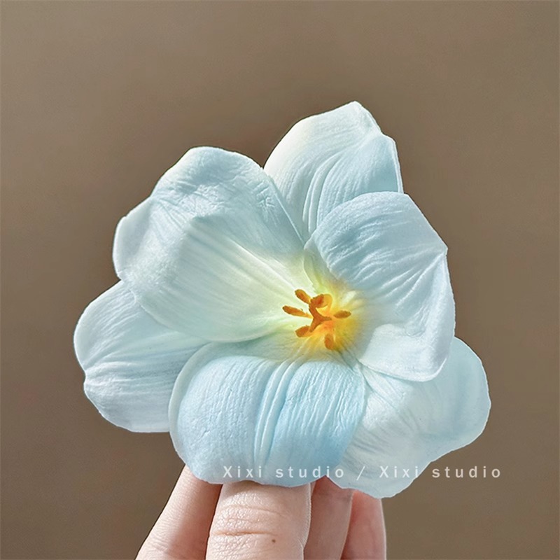 블루 튤립 머리핀 신선한 휴가 스타일 꽃 사이드 머리핀 사진 헤어 액세서리 분위기 앞머리 클립 머리 장식