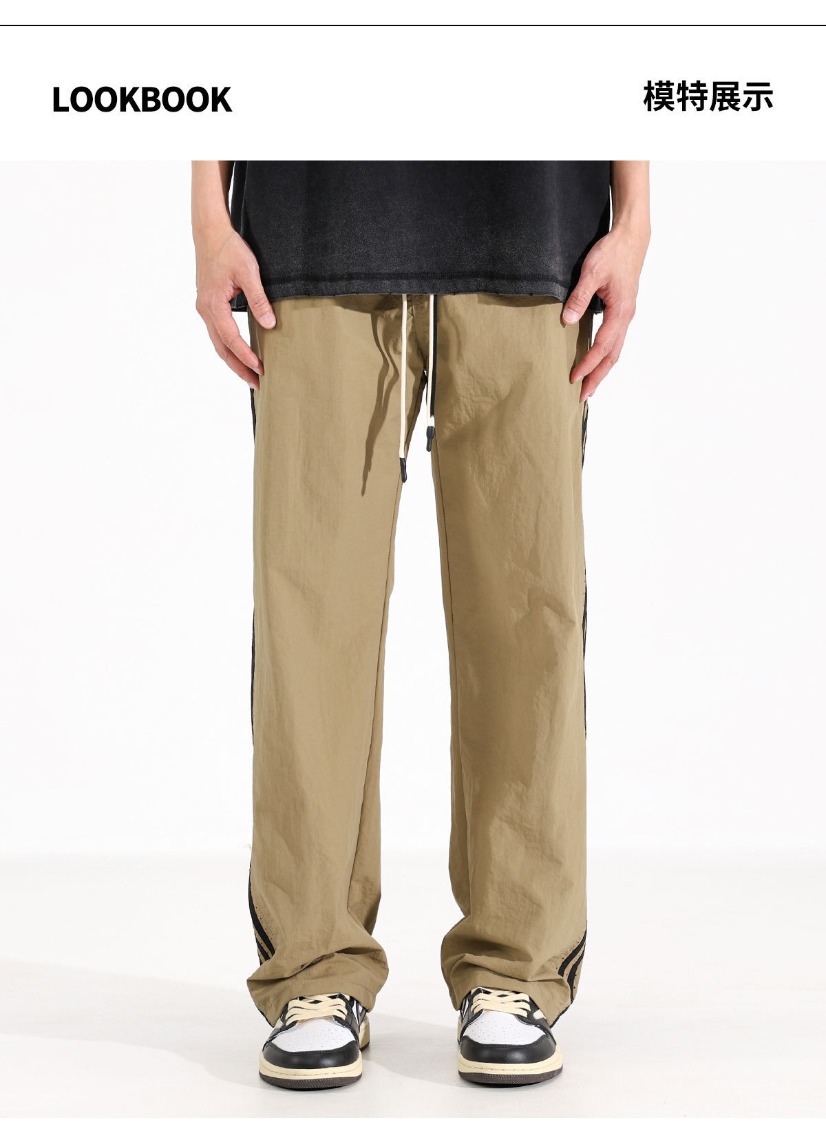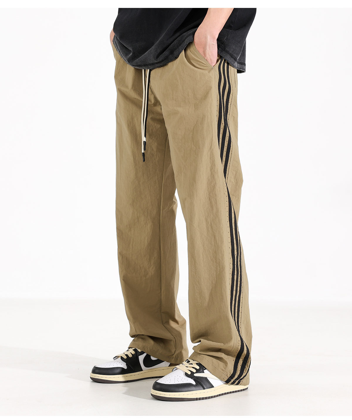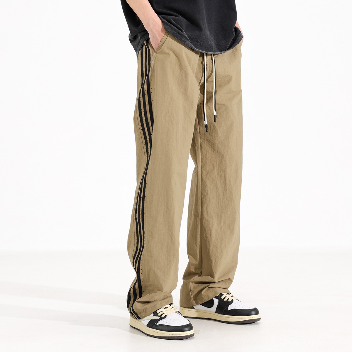 남성용 캐주얼 바지 2025 새로운 야외 얇은 속건성 스포츠 스트레이트 바지 남성용 통기성 메쉬 느슨한 와이드 레그 바지