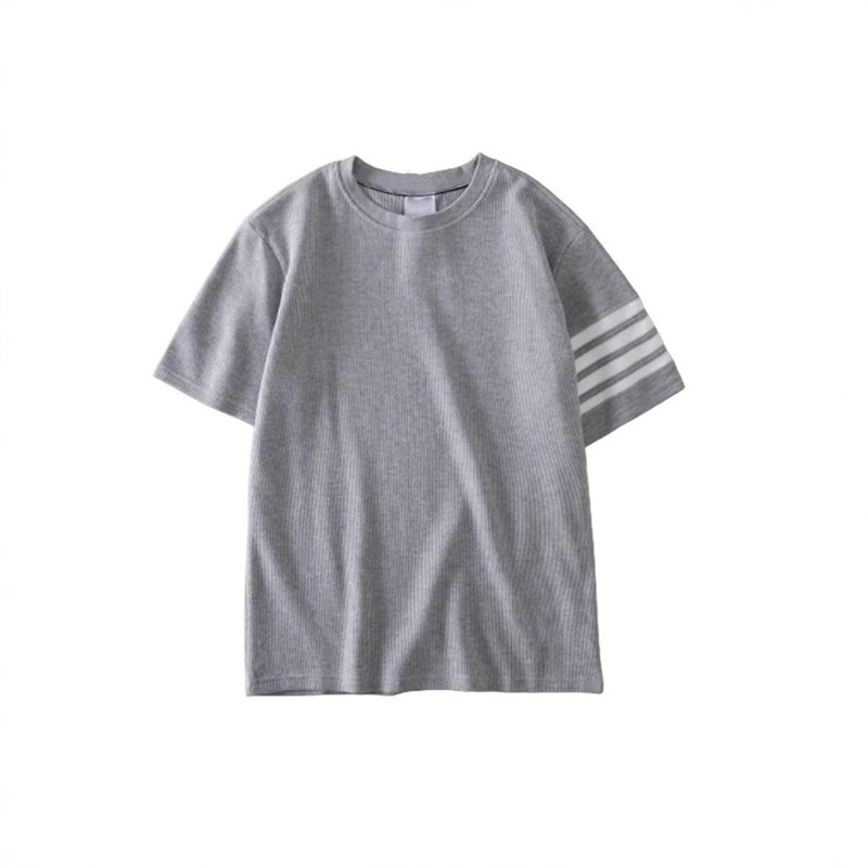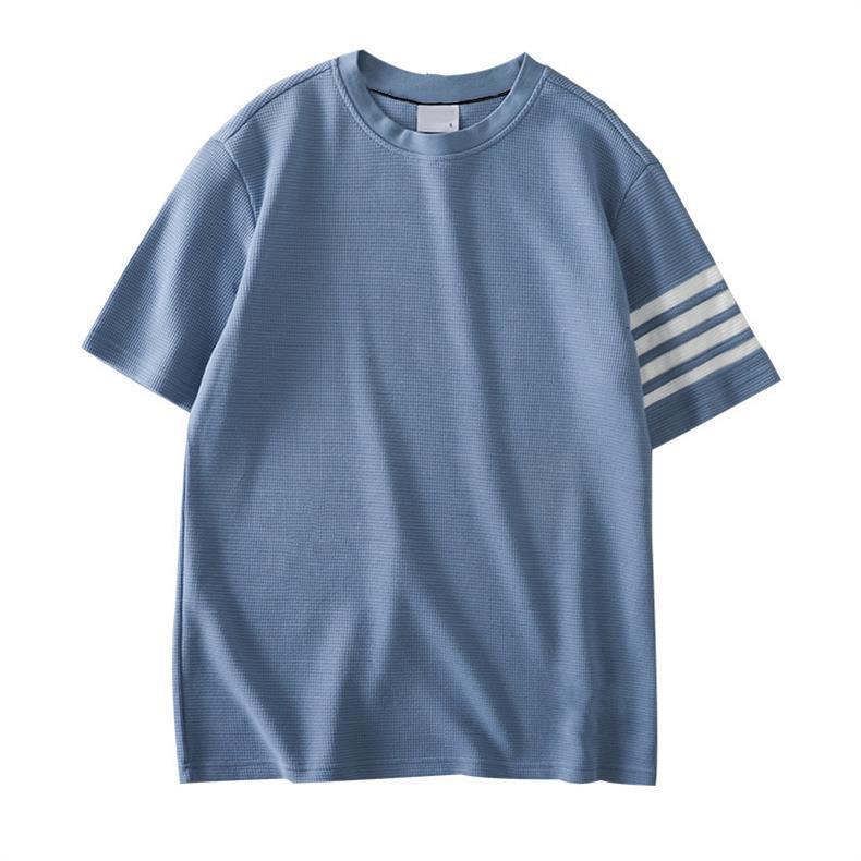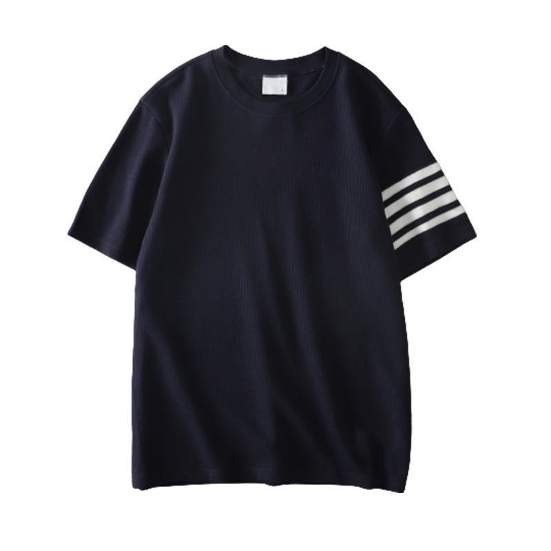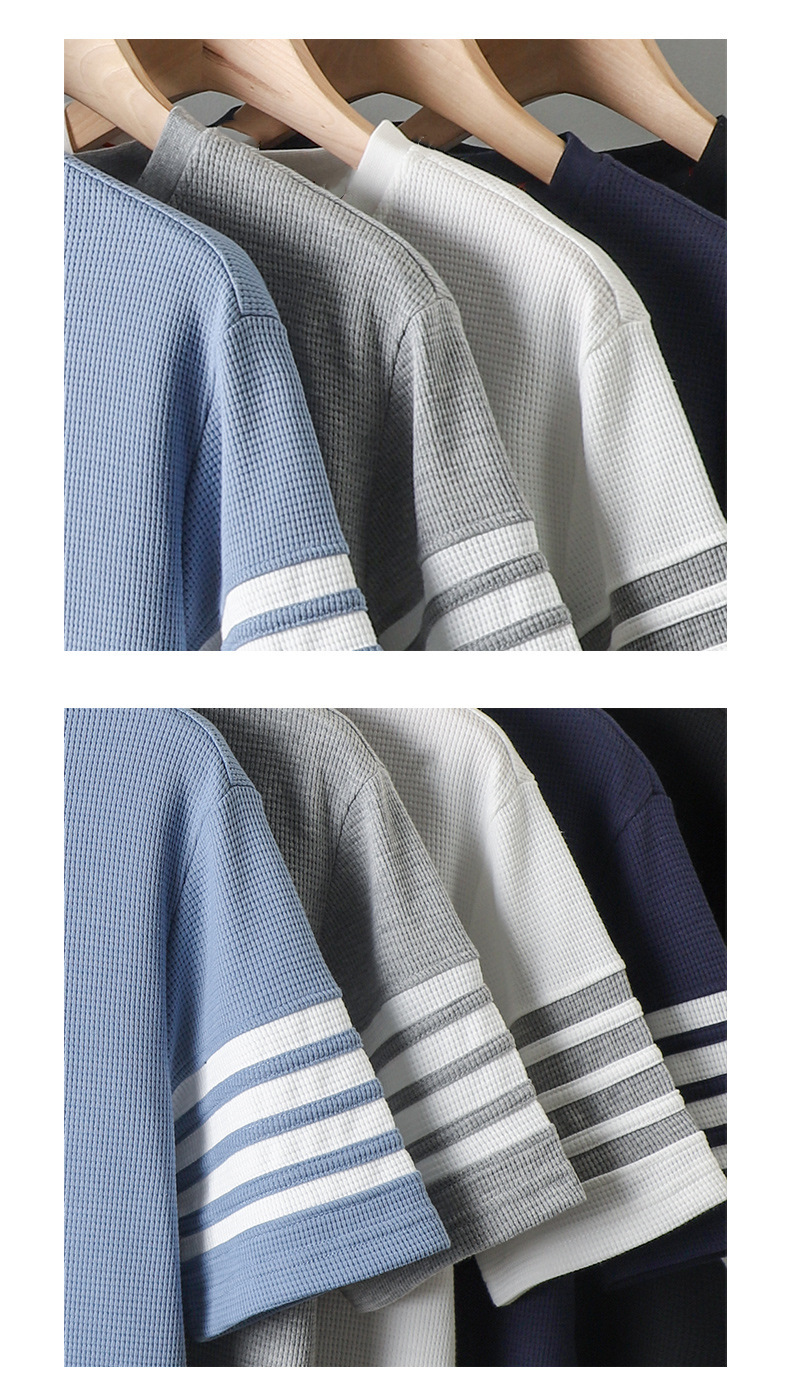 일본 스타일 얇은 단색 반팔 티셔츠 남성용 여름 통기성 루즈핏 네줄 스트라이프 작은 칼라 기본 티셔츠 반팔 트렌디스토어 가기