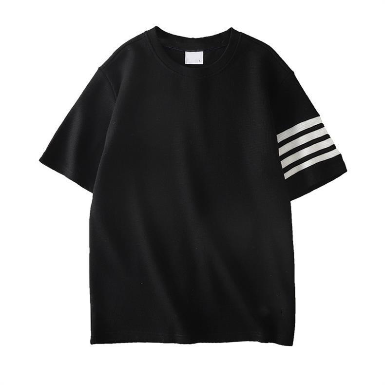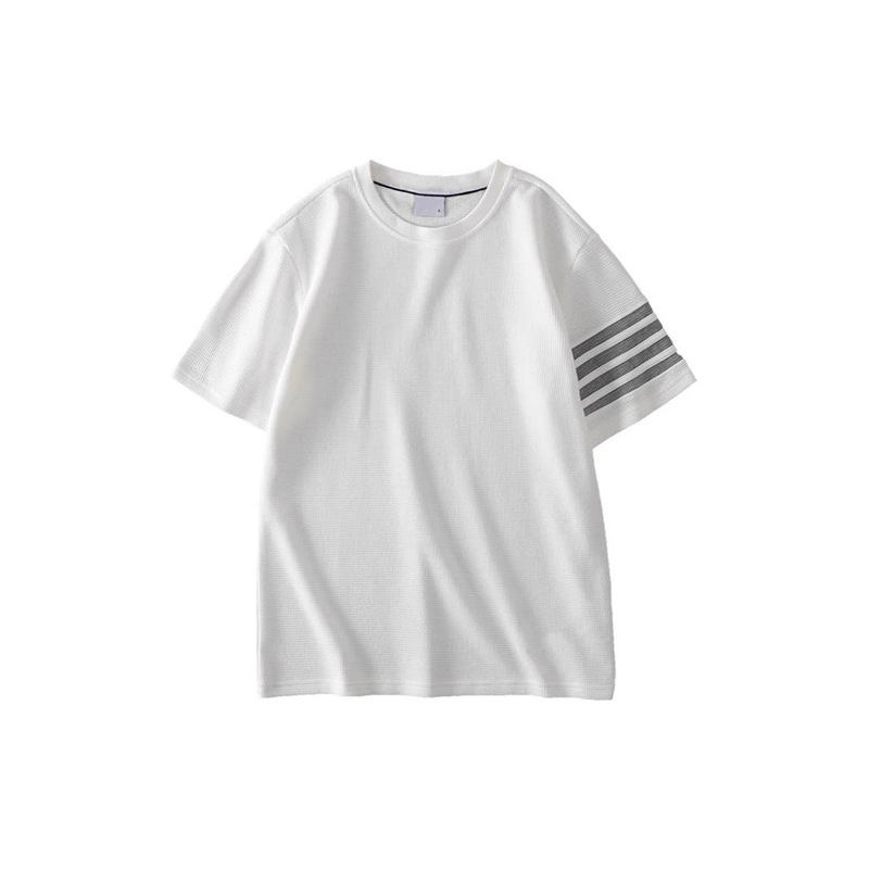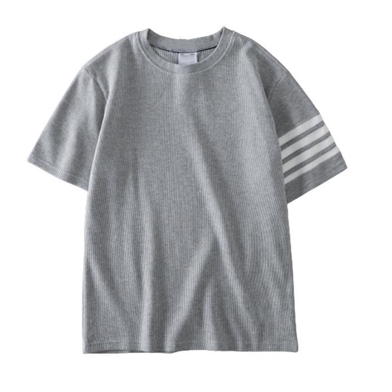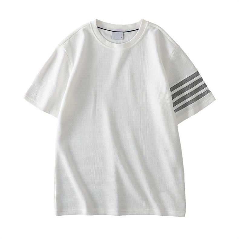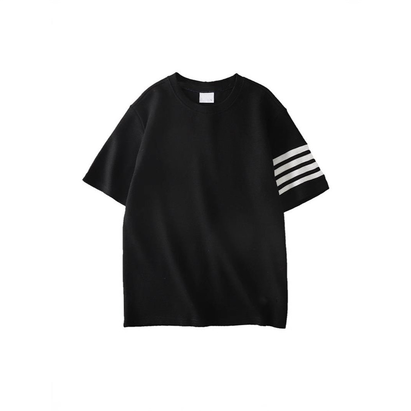 일본 스타일 얇은 단색 반팔 티셔츠 남성용 여름 통기성 루즈핏 네줄 스트라이프 작은 칼라 기본 티셔츠 반팔 트렌디스토어 가기