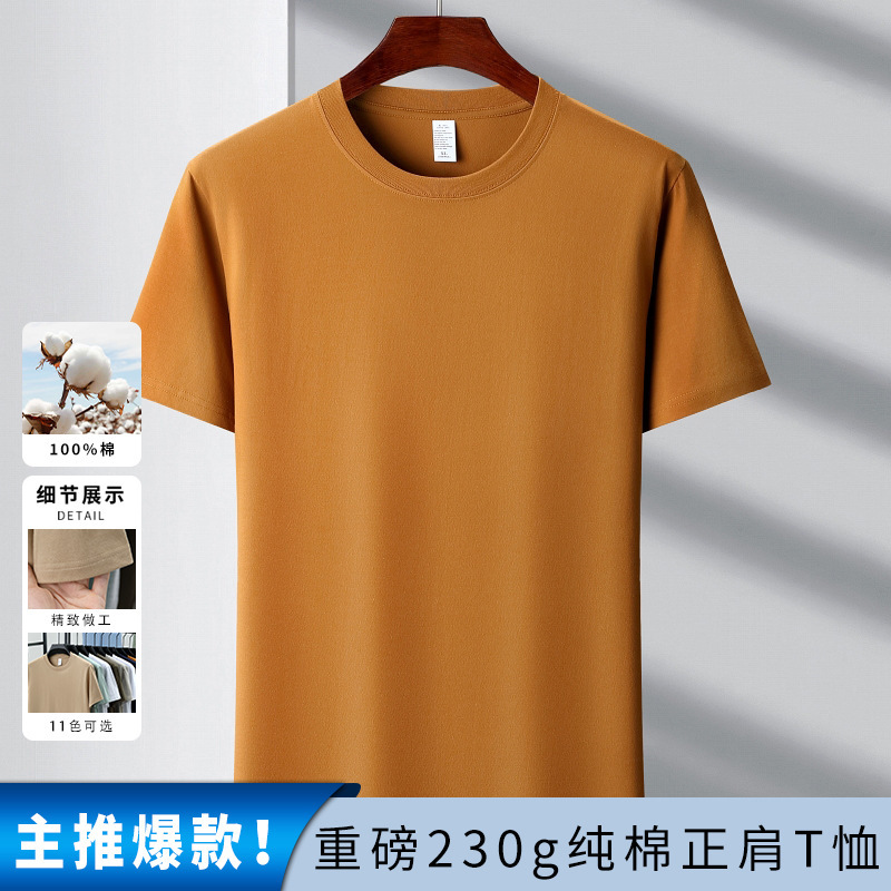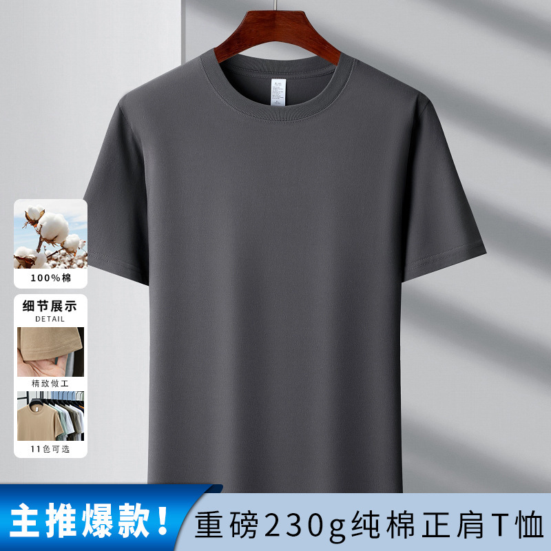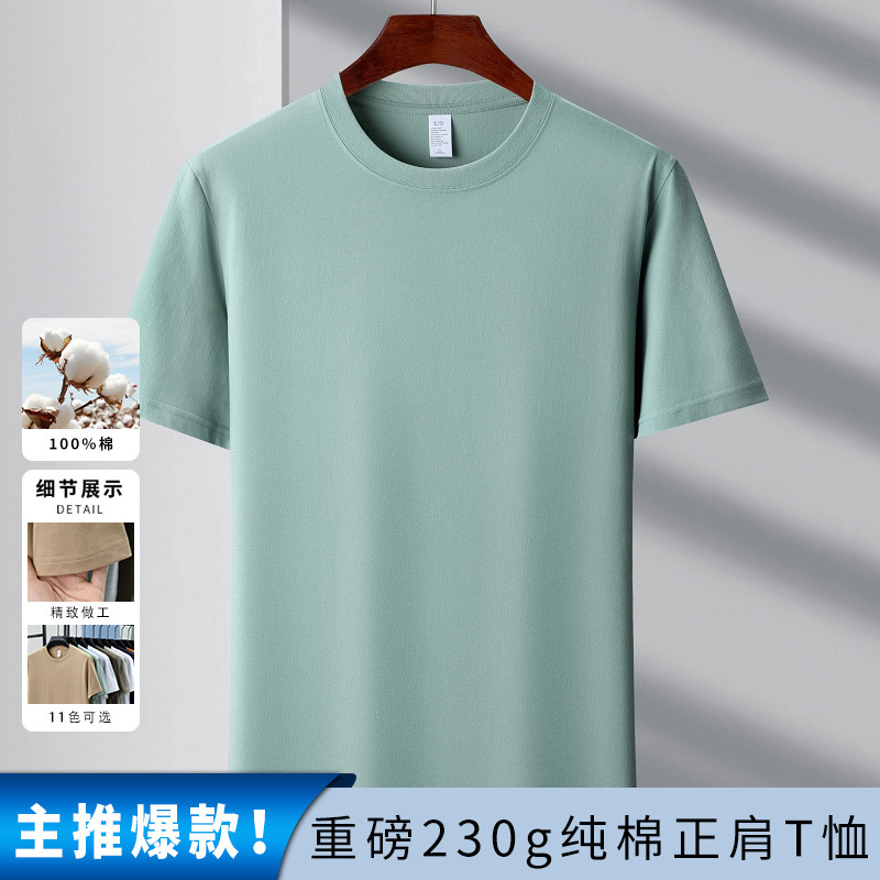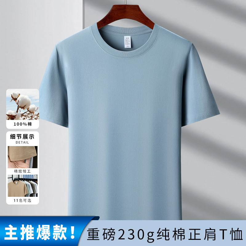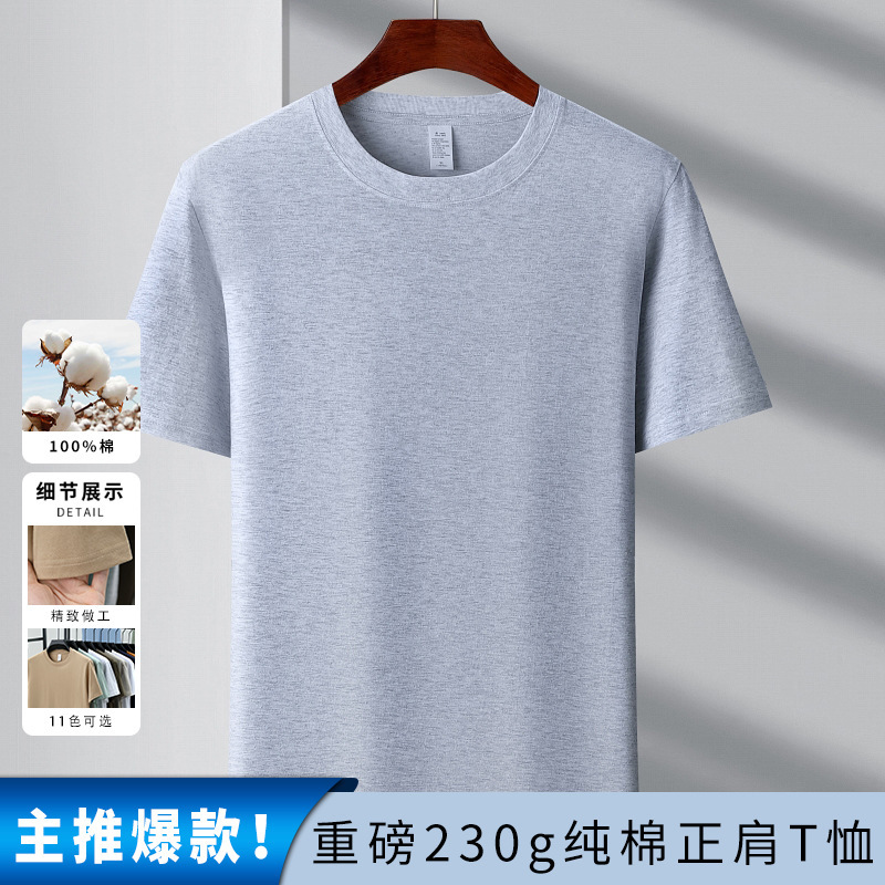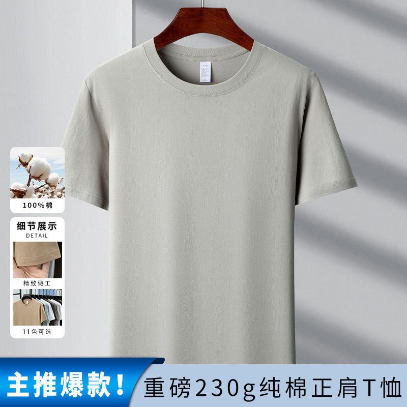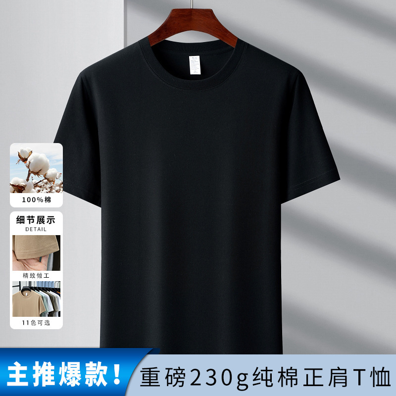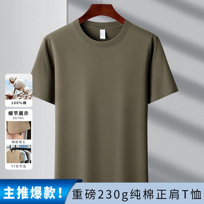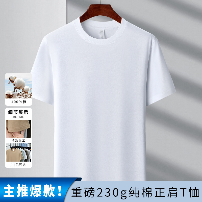 230g 여름 남성 반팔 티셔츠 패셔너블하고 다재다능한 바닥 셔츠 라운드 넥 순수 코튼 의류 탑 티셔츠 반팔 남성 20스토어 가기