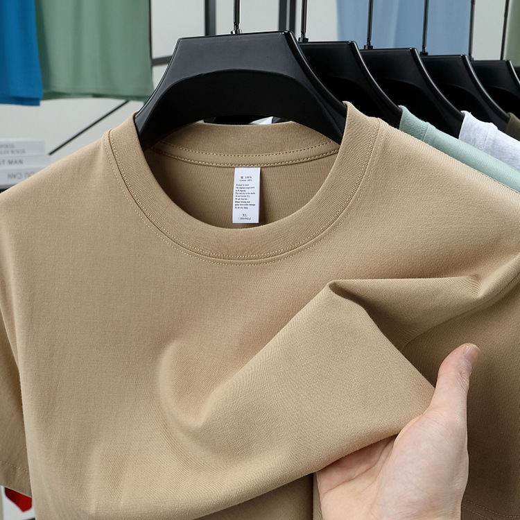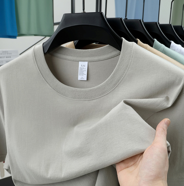 230g 여름 남성 반팔 티셔츠 패셔너블하고 다재다능한 바닥 셔츠 라운드 넥 순수 코튼 의류 탑 티셔츠 반팔 남성 20