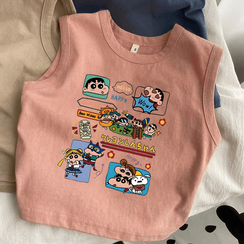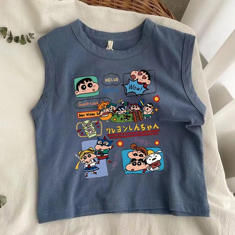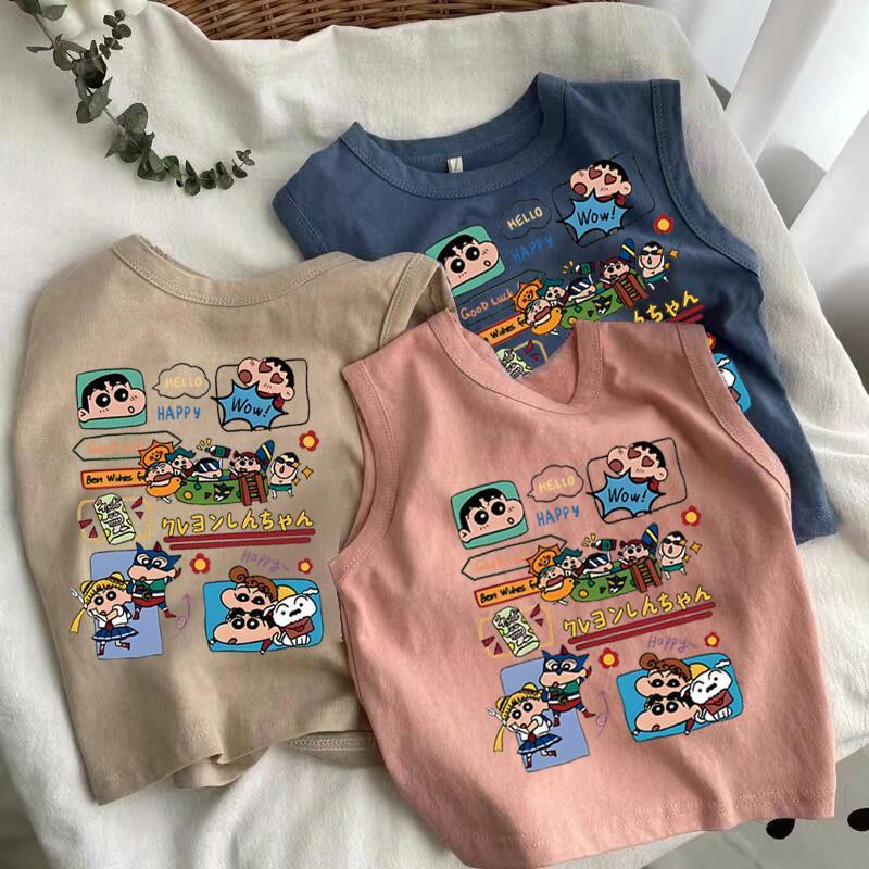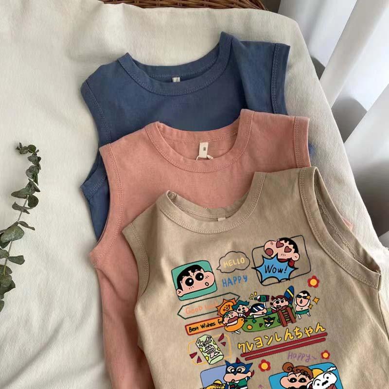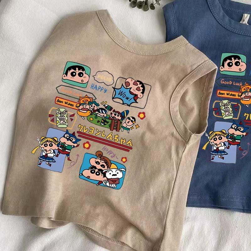어린이 아기 순수 코튼 조끼 여름 새 스타일 소녀 만화 크레용 신짱 인쇄 소년 스타일 민소매 탑스토어 가기