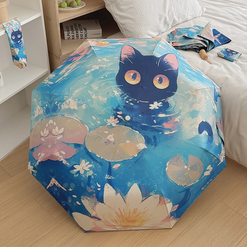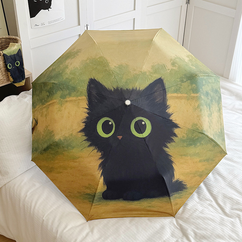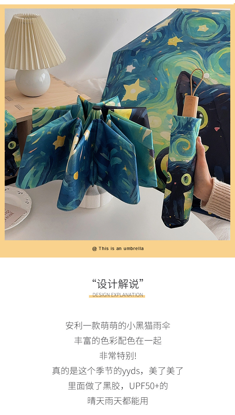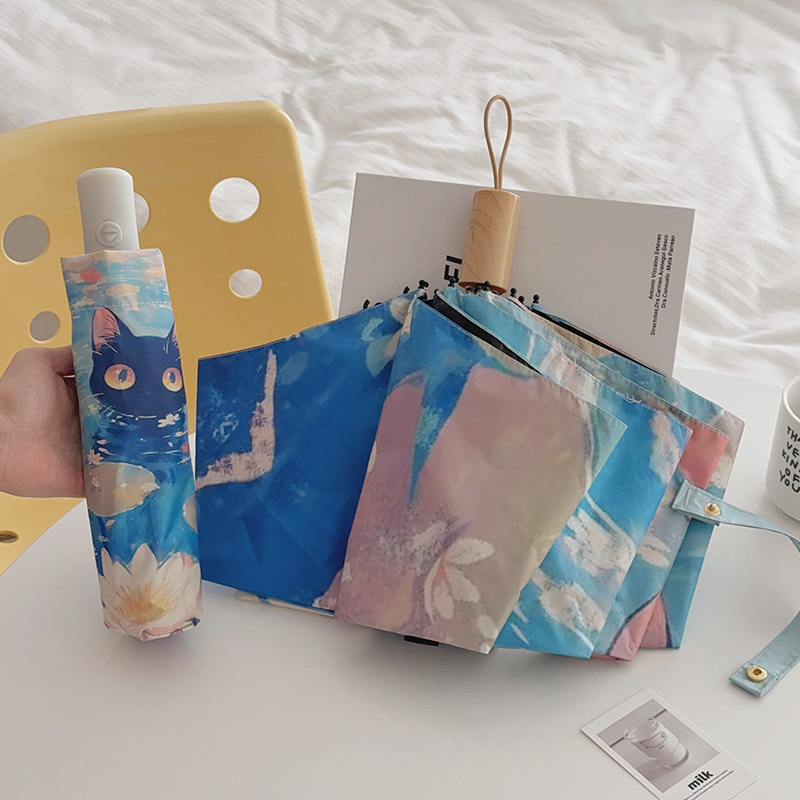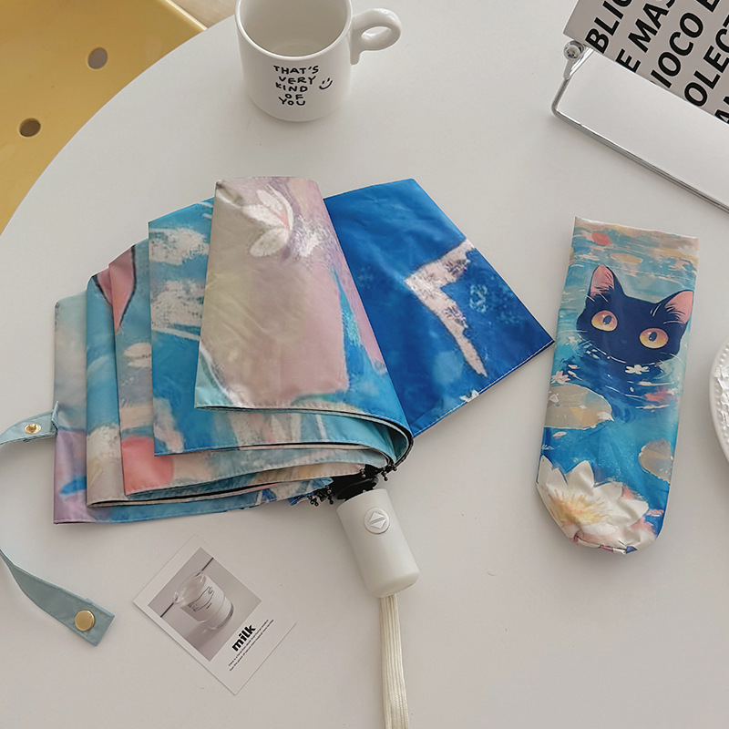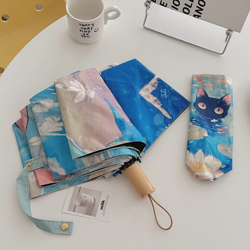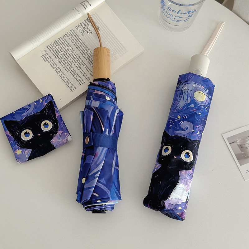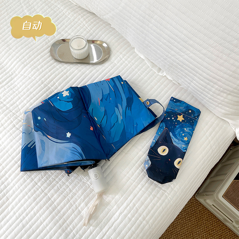 반 고흐 만화 고양이 비닐 접는 우산 전문 태양 보호 자외선 차단 우산 휴대용 미니 우산스토어 가기
