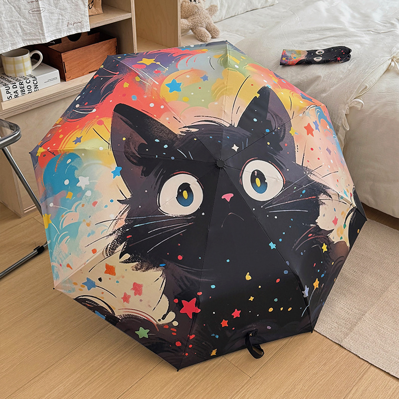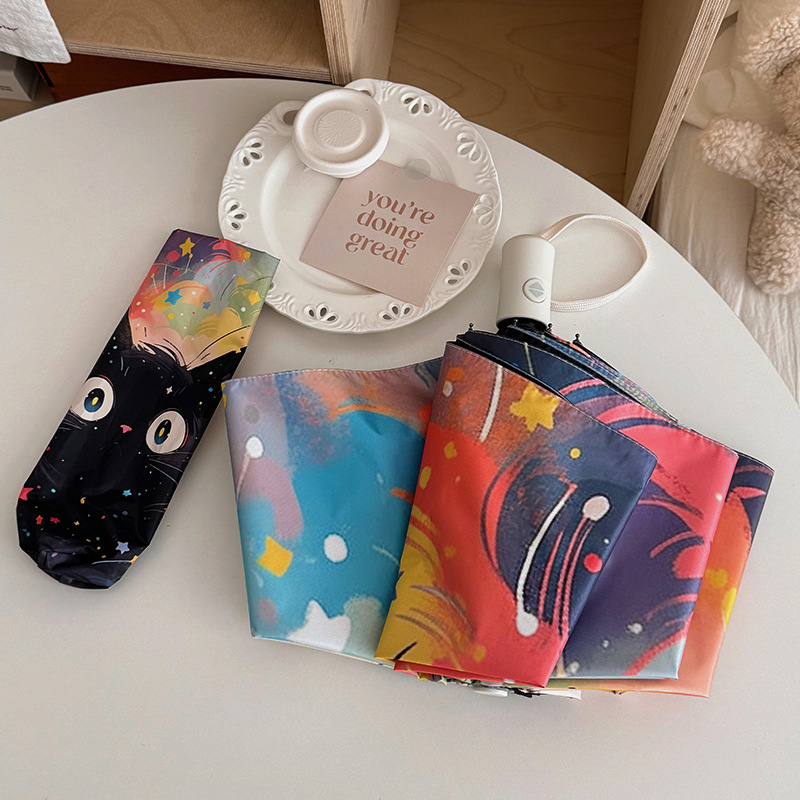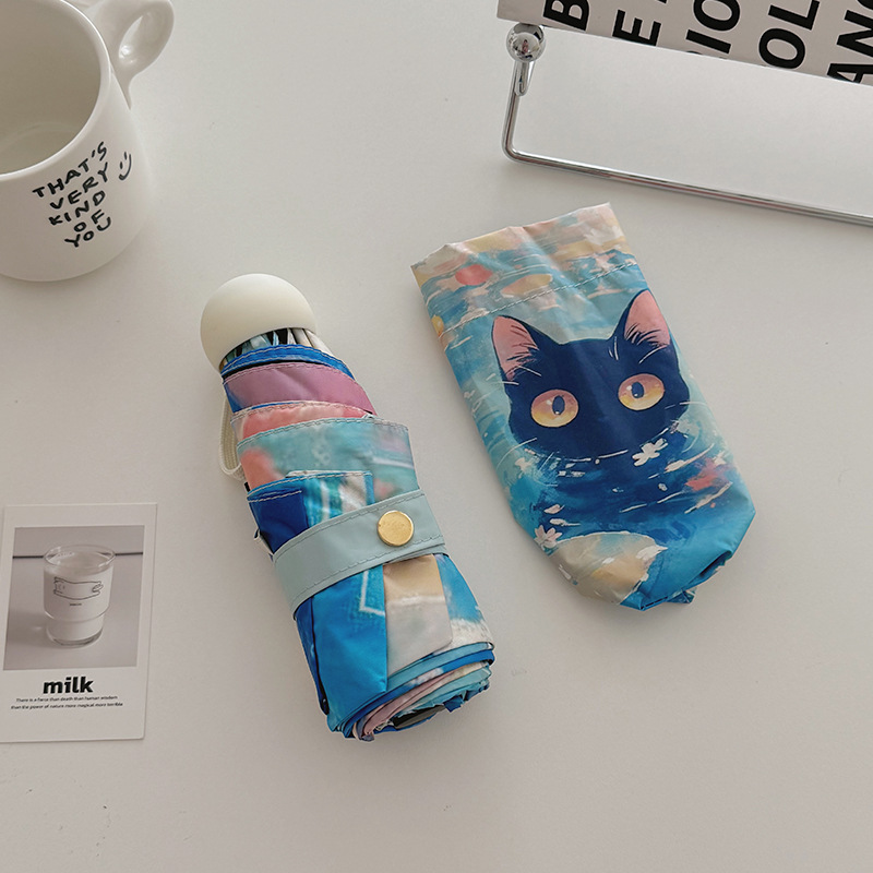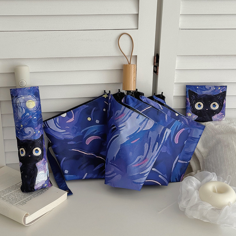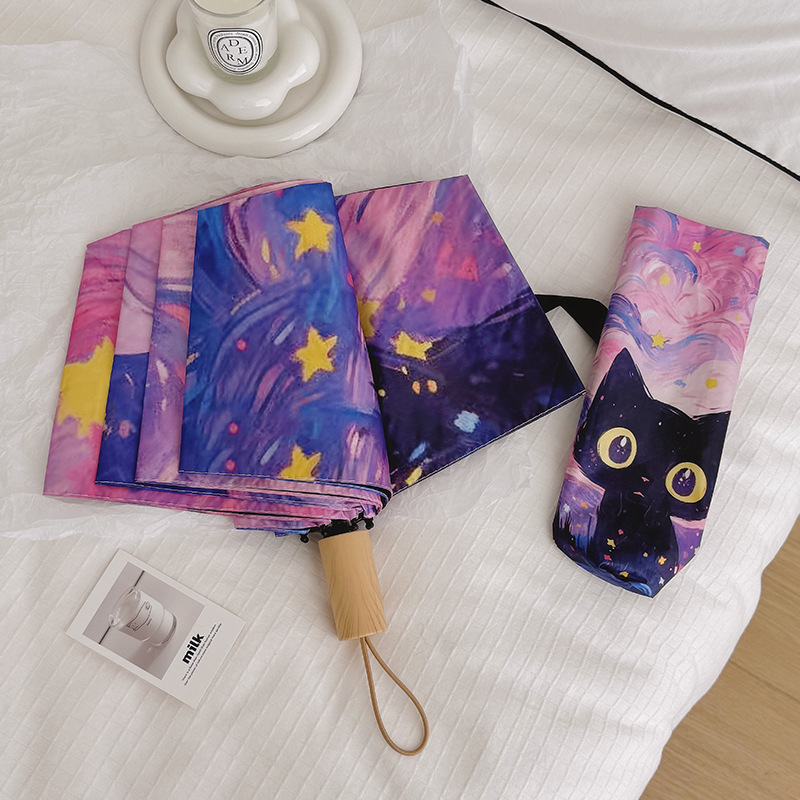 반 고흐 만화 고양이 비닐 접는 우산 전문 태양 보호 자외선 차단 우산 휴대용 미니 우산