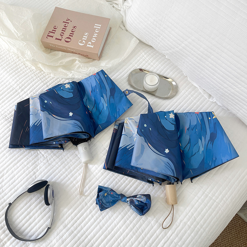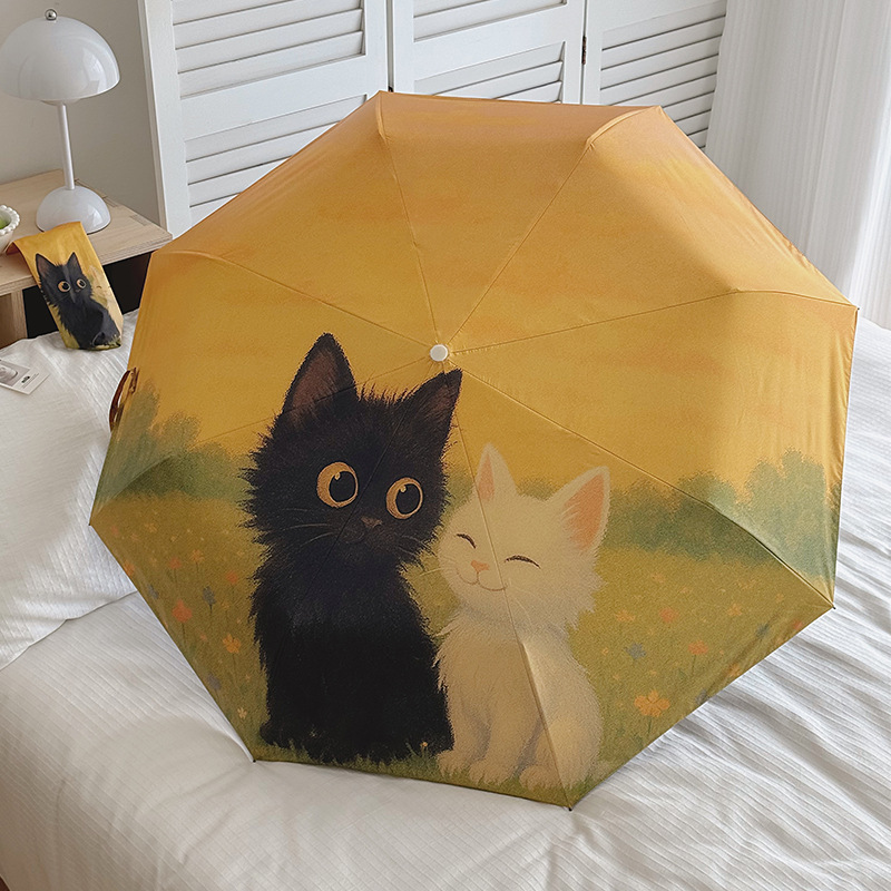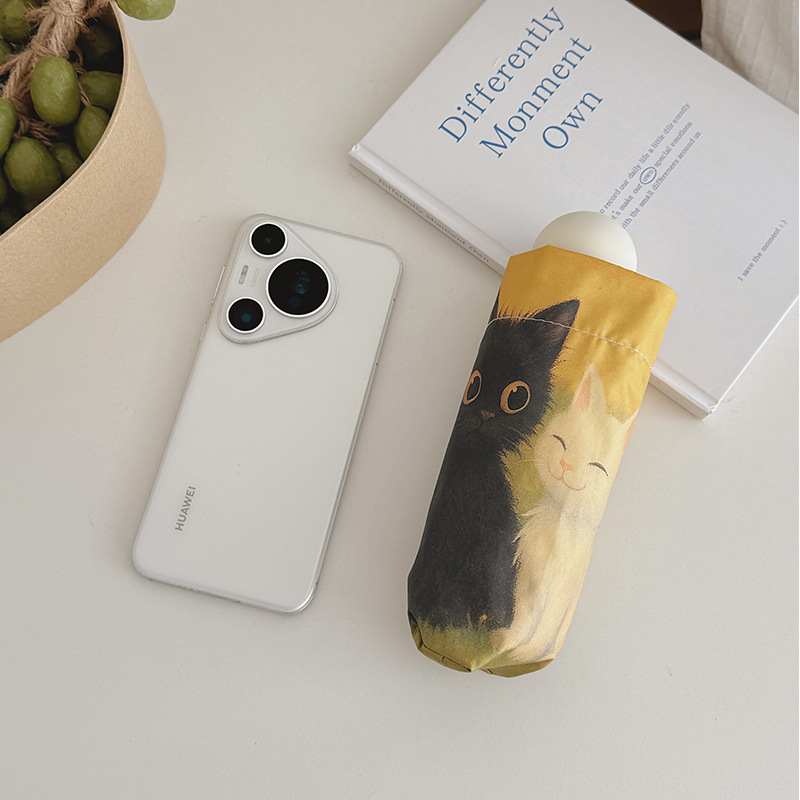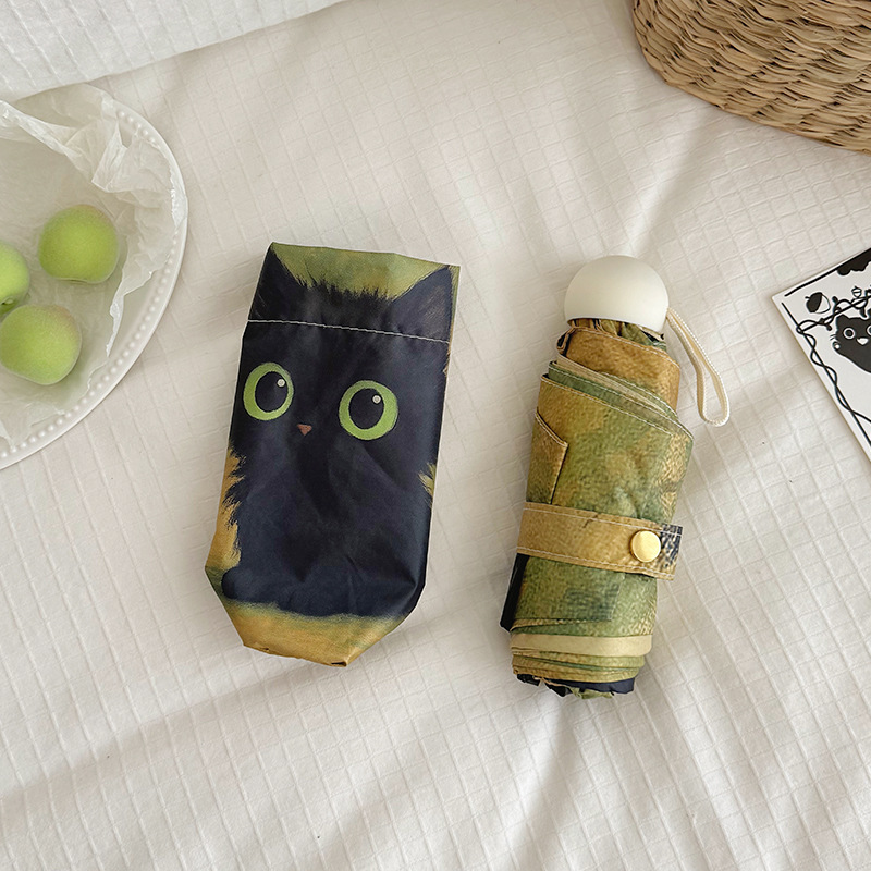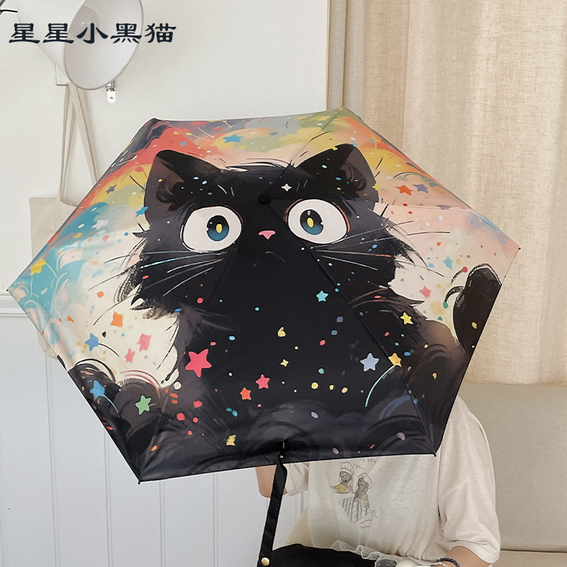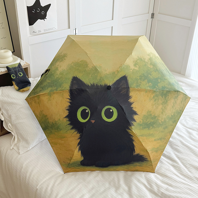 반 고흐 만화 고양이 비닐 접는 우산 전문 태양 보호 자외선 차단 우산 휴대용 미니 우산