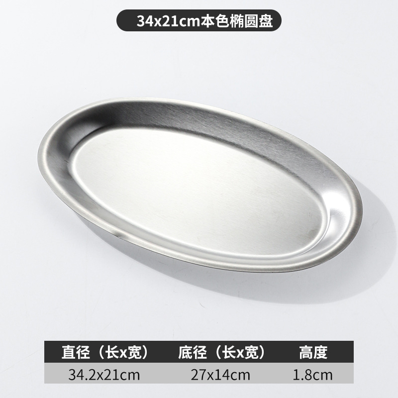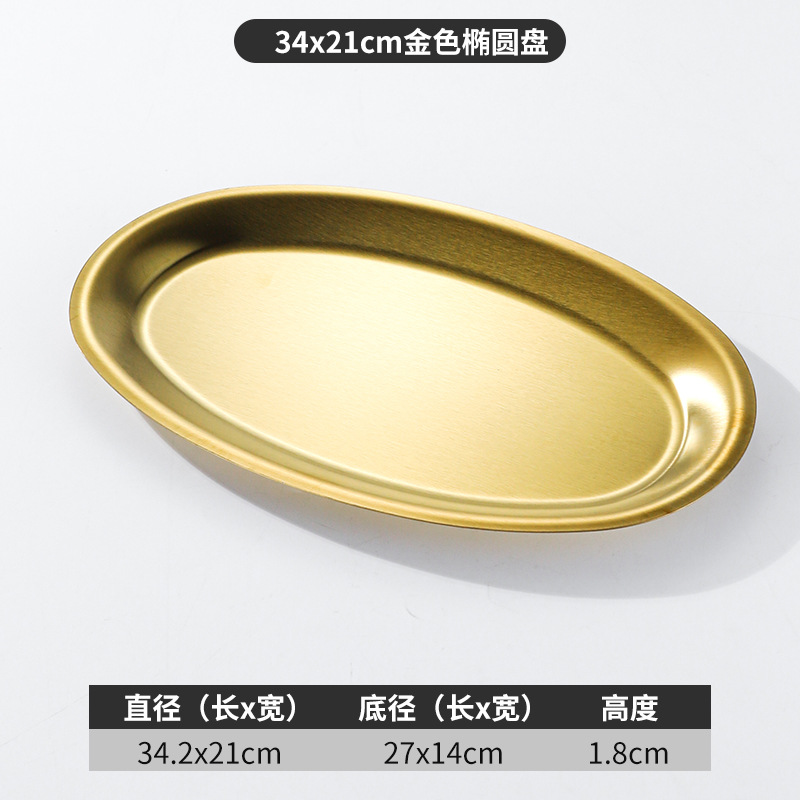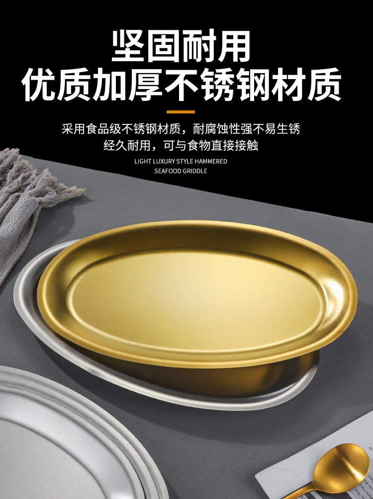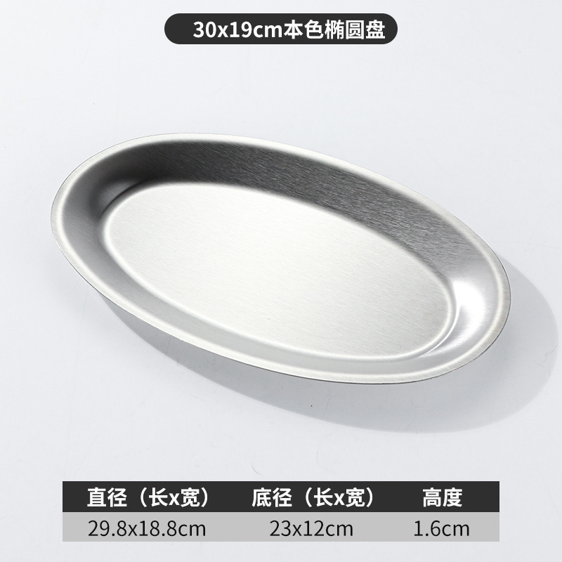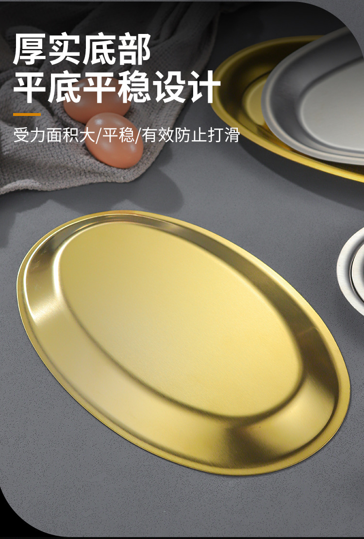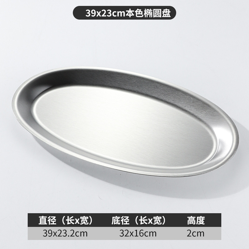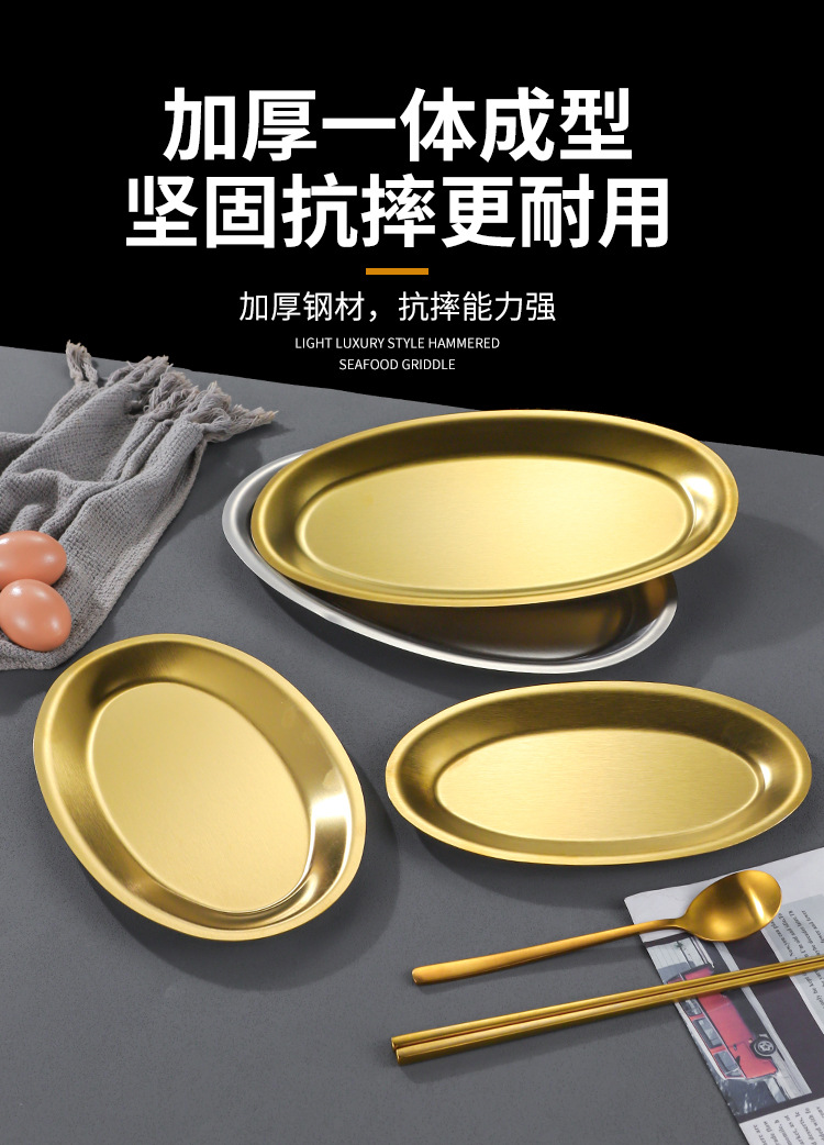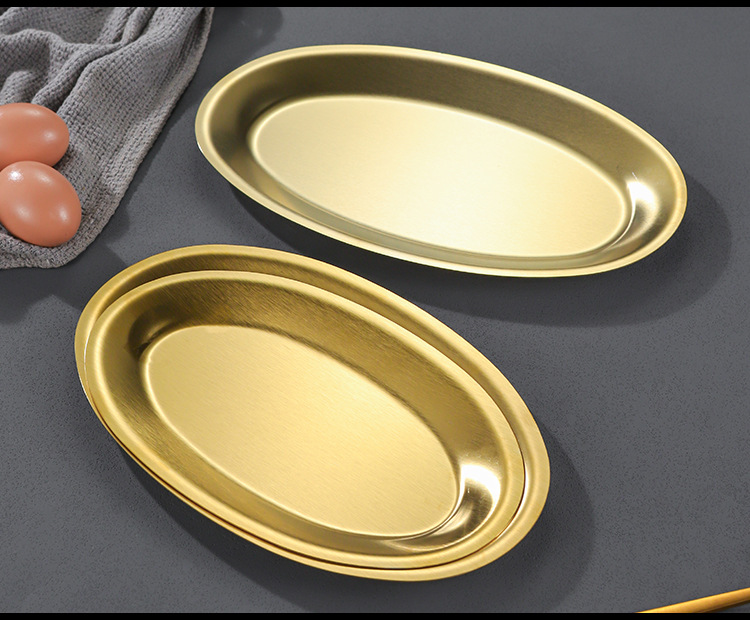 한국 상업용 바베큐 접시 스테인레스 스틸 계란 모양의 접시 황금 타원형 평면 트레이 대형 생선 찜 접시 접시스토어 가기