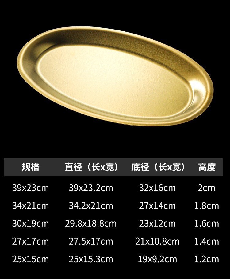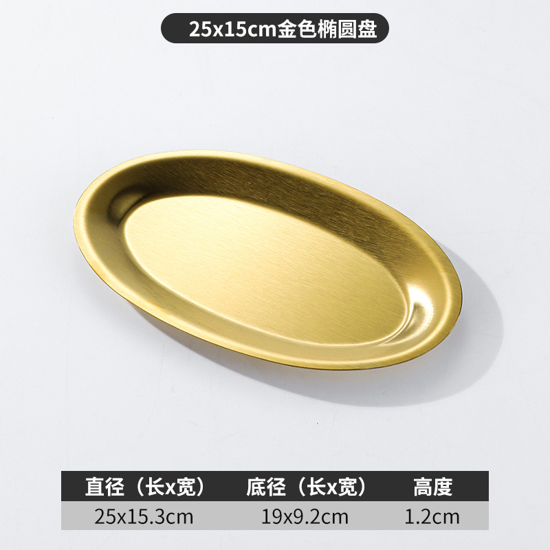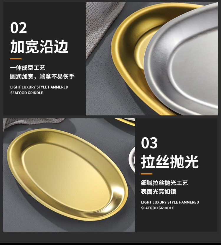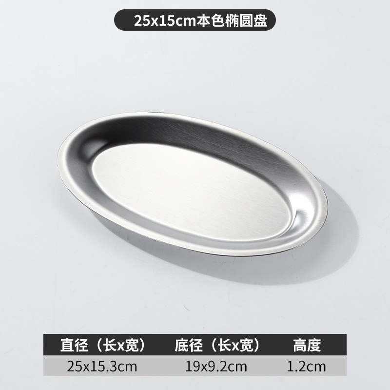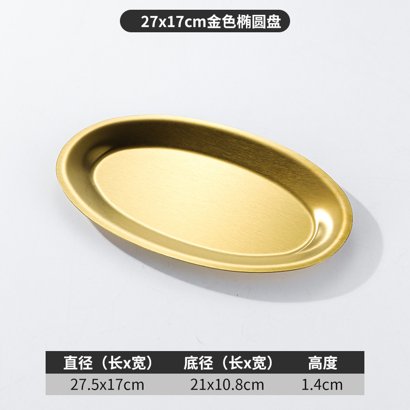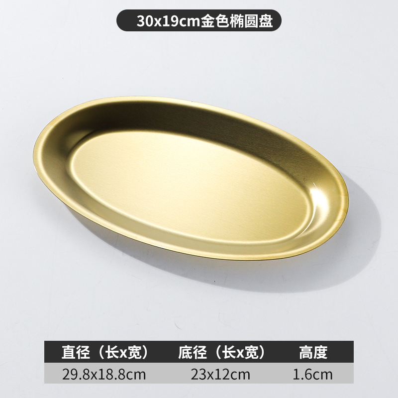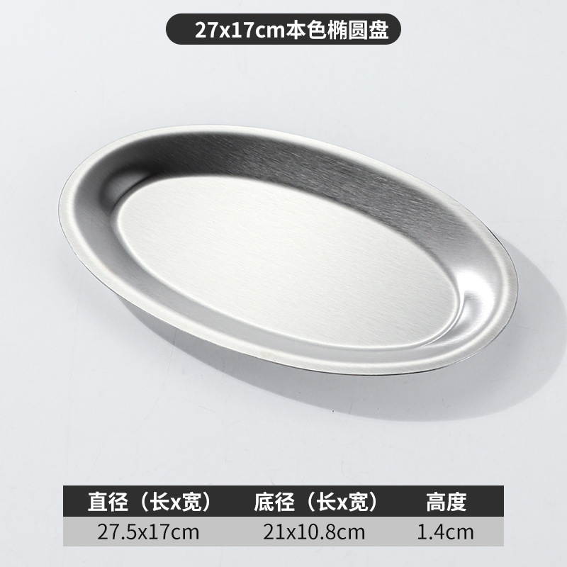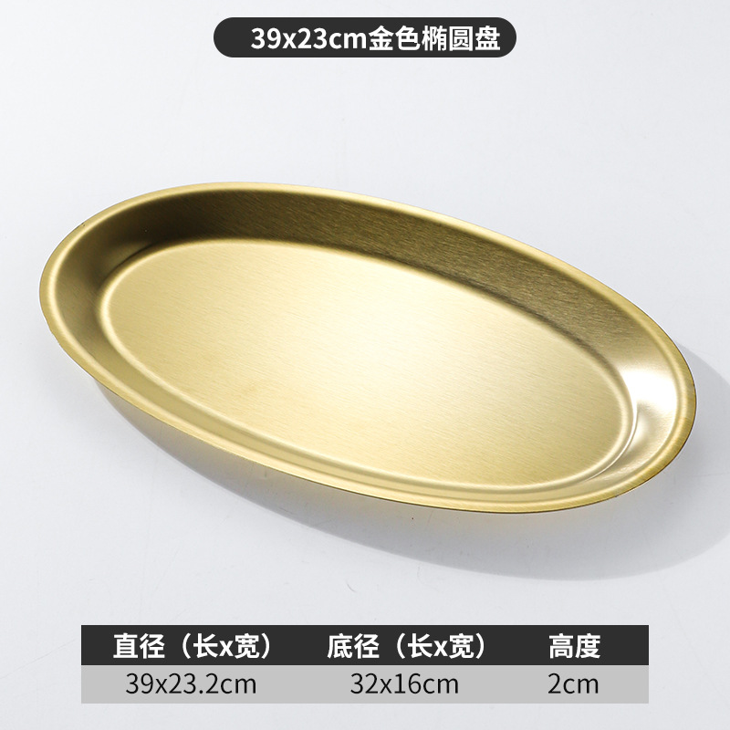 한국 상업용 바베큐 접시 스테인레스 스틸 계란 모양의 접시 황금 타원형 평면 트레이 대형 생선 찜 접시 접시스토어 가기