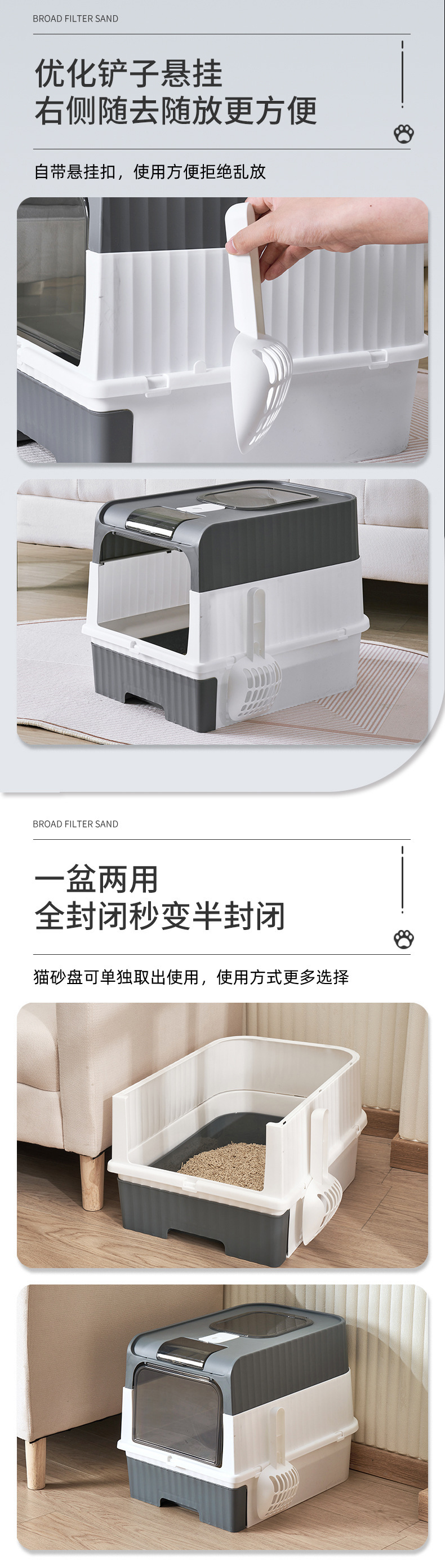 완전히 밀폐 된 고양이 화장실 서랍 탈취제 고양이 쓰레기 상자 애완 동물 용품 공장 도매 스플래시 대형 고양이 쓰레기 상자