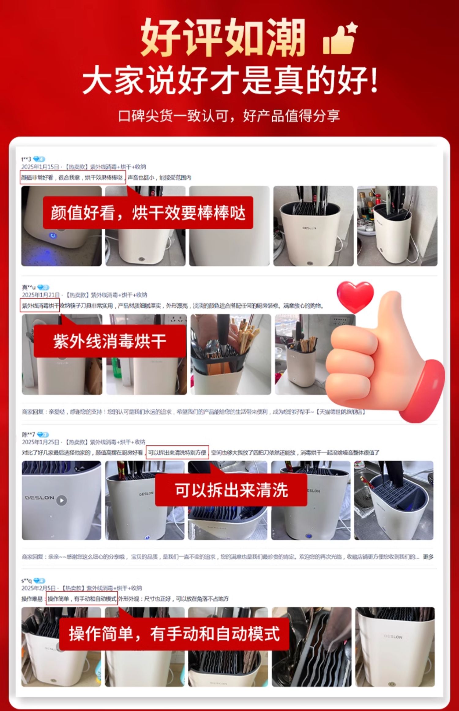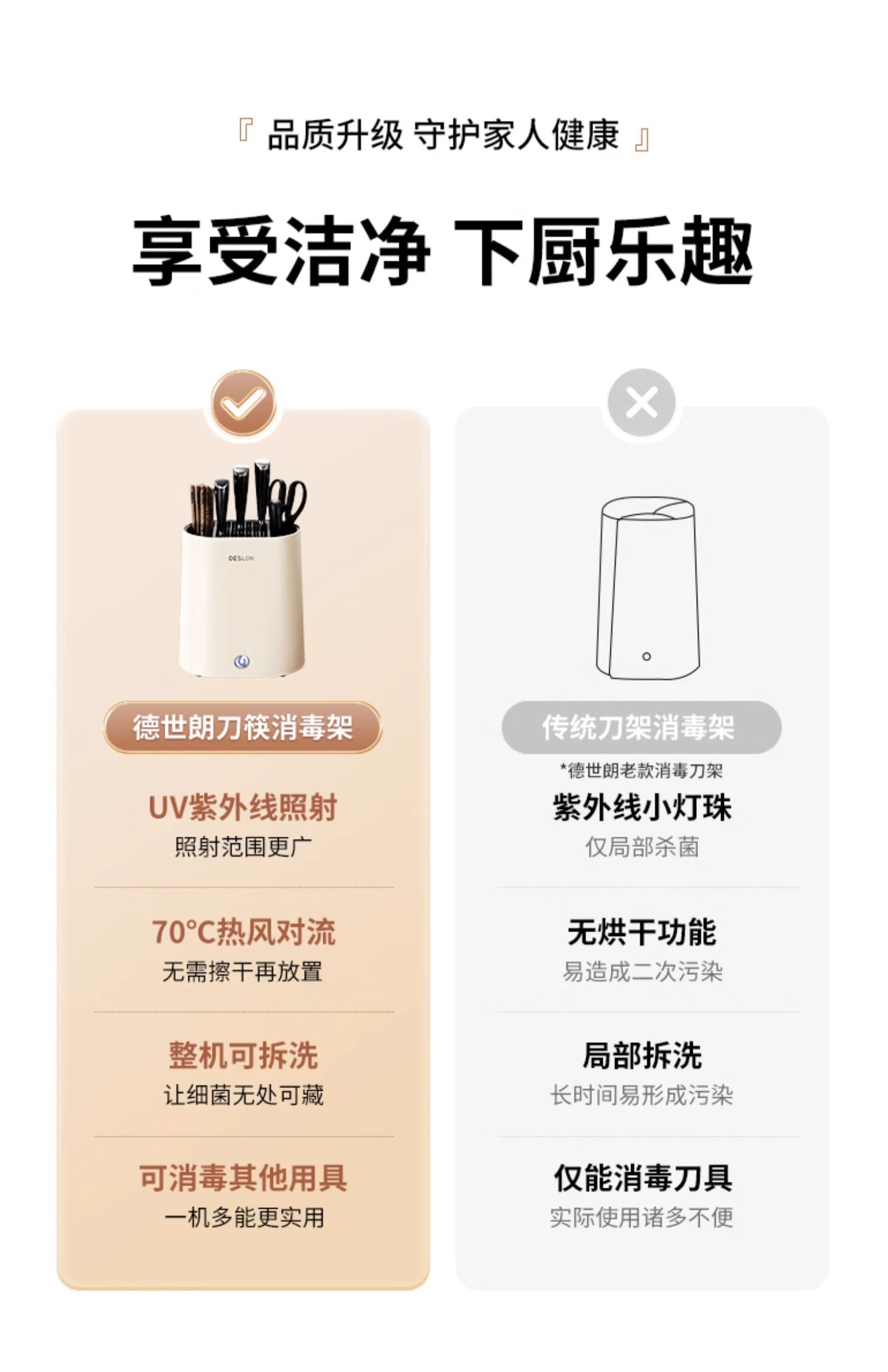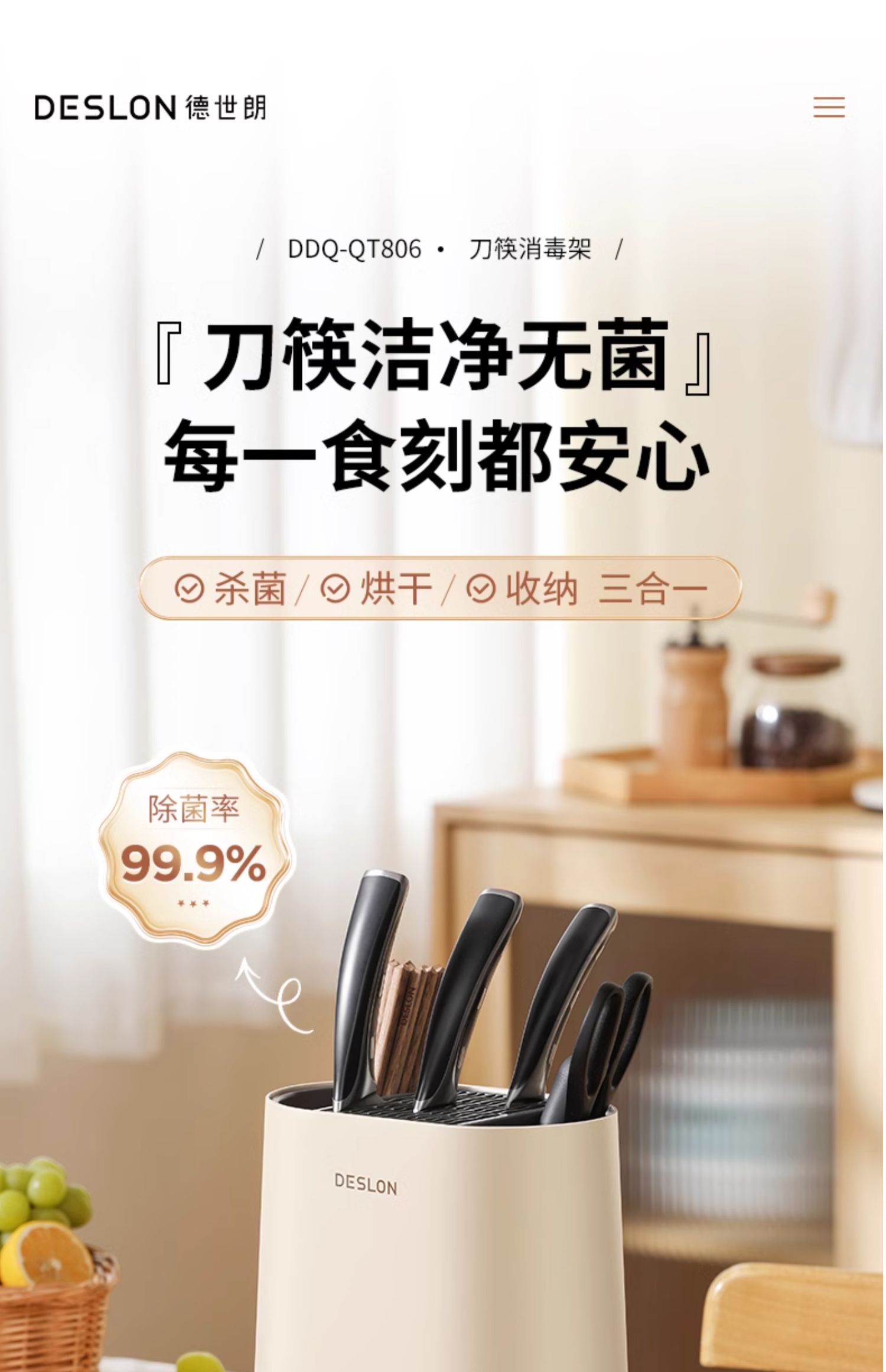 Deseland 젓가락 소독기, 칼, 주방 식기 소독기, 보관 및 건조 일체형 칼 홀더, 가정용 완전 자동스토어 가기