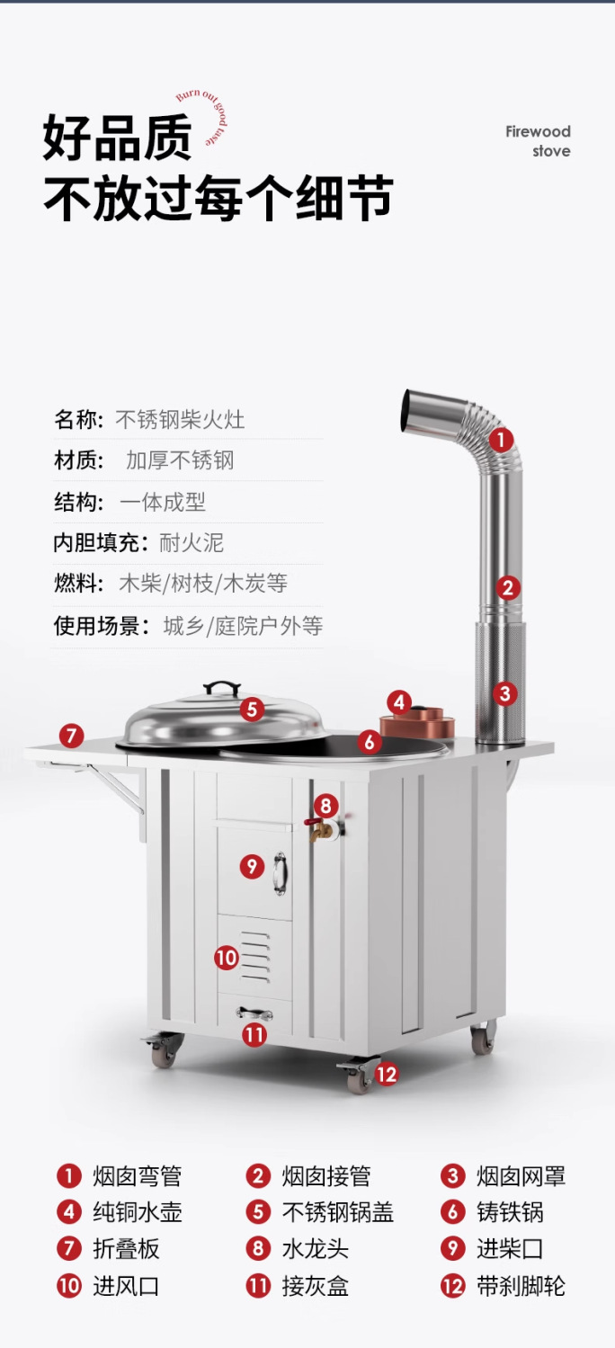 • 두꺼운 국가 표준 .304 [20년 보증] - 초강력 두꺼운 이중 스토브 50+64+접이식 플레이트+물탱크
