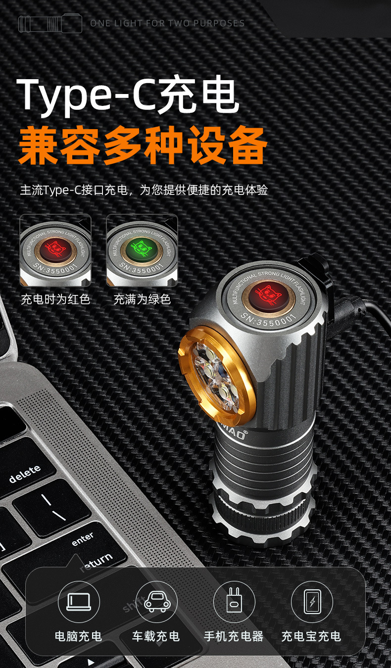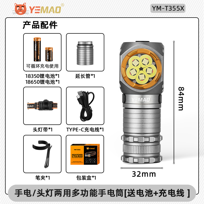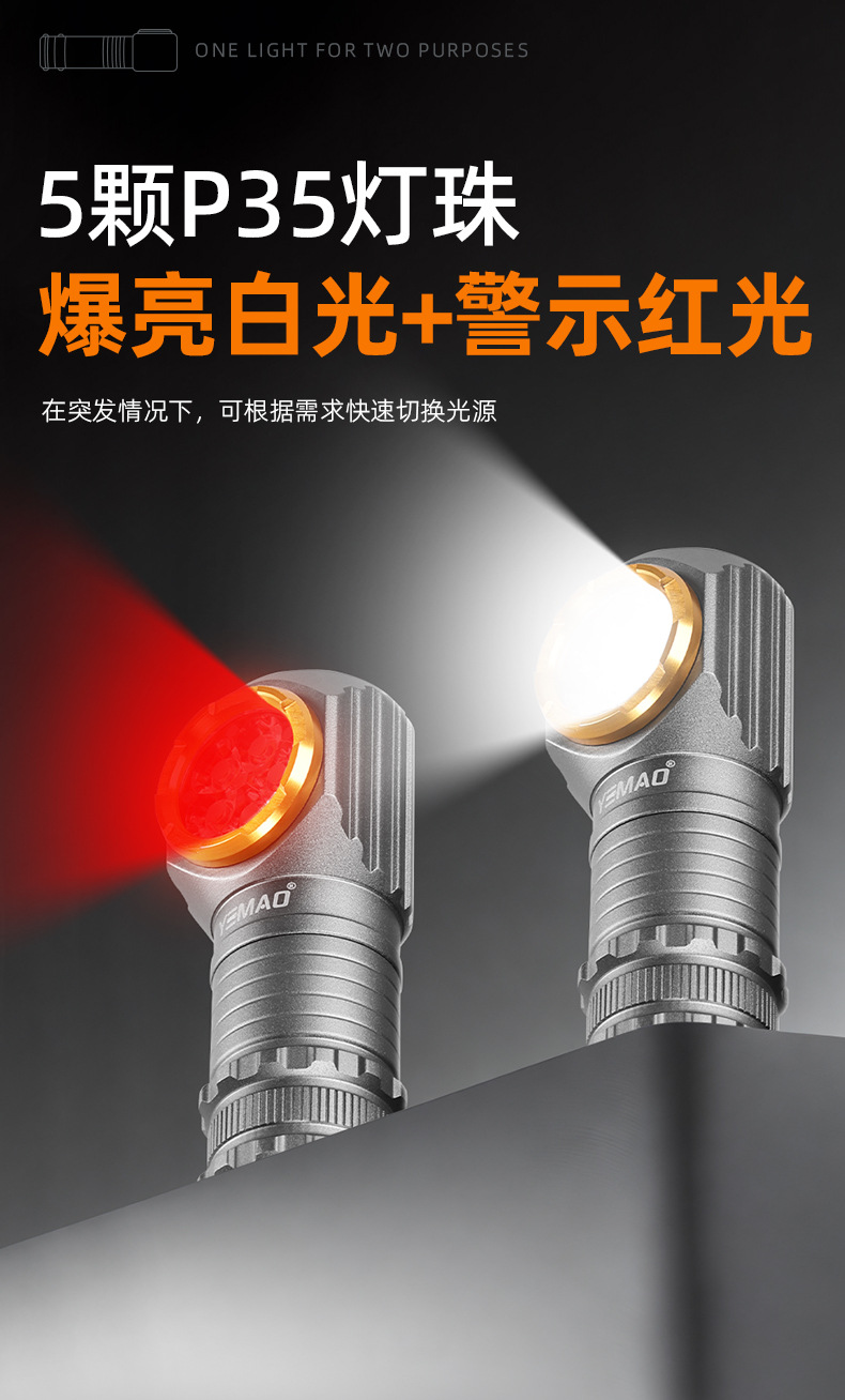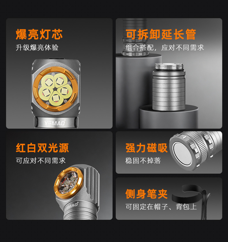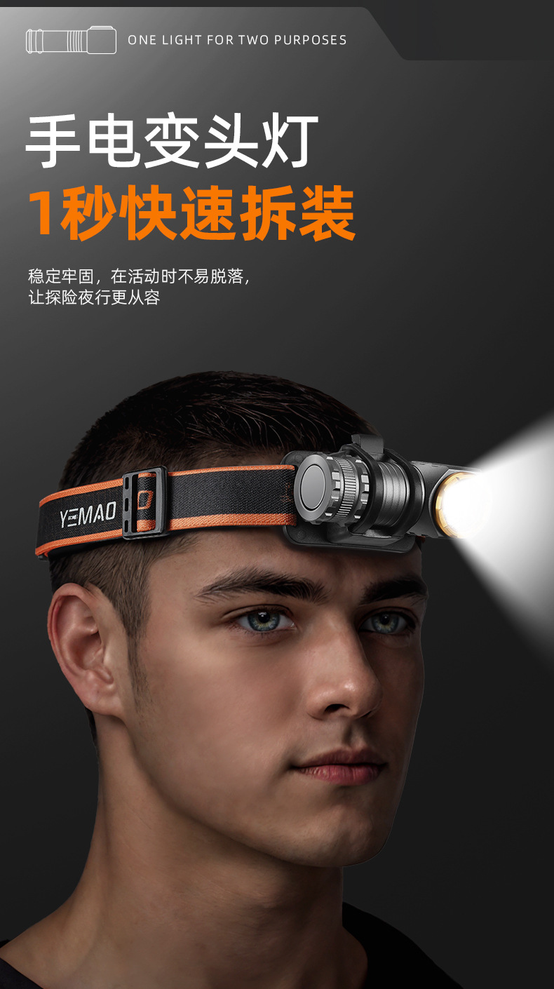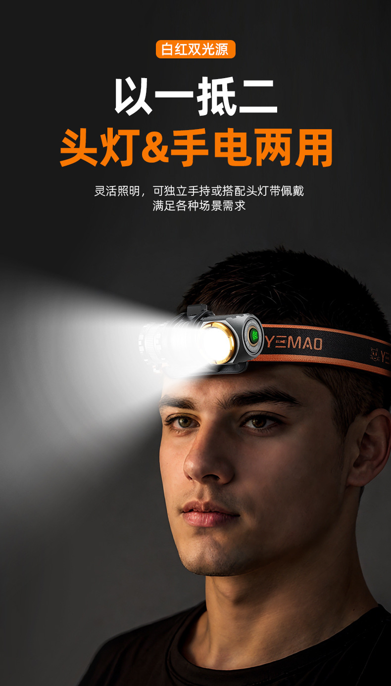 야간 고양이 헤드 장착형 손전등, 소형 실외 조명, 고휘도, 긴 배터리 수명, 자기 흡입, 충전식, 야간 낚시, 방수
