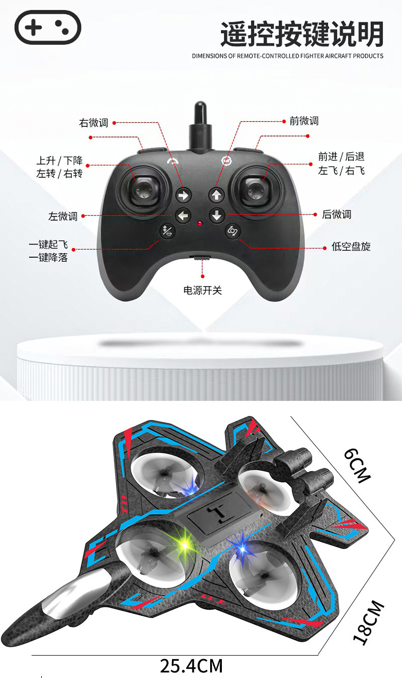 국경 간 새로운 글라이더 어린이 4 축 원격 제어 항공기 전투기 세트 초등학생을위한 높은 낙상 방지 폼 UAV