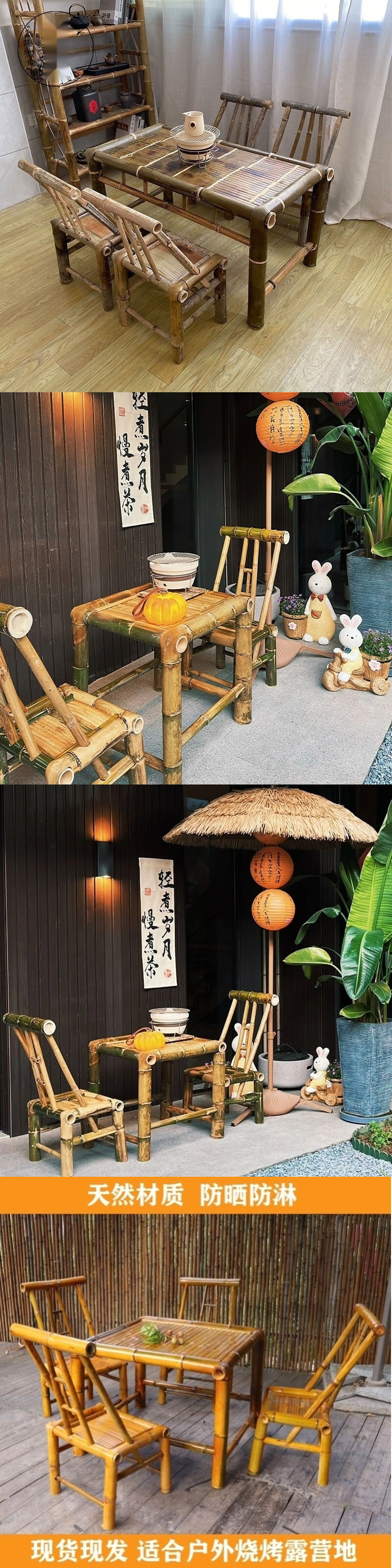 수제 테이블과 의자 조합, 야외 안뜰 커피 테이블, 대나무로 짠 티 테이블, 가정용 복고풍 고급 식탁과 의자