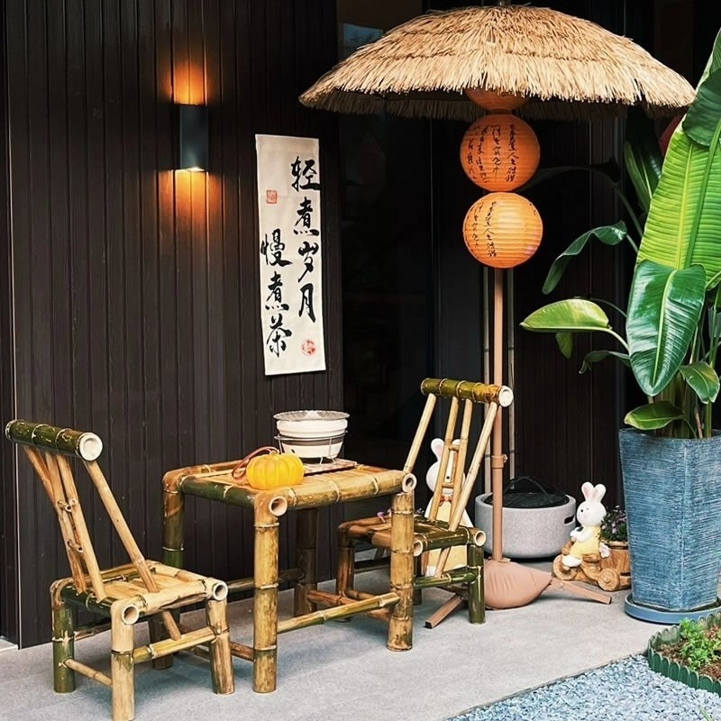 • 고급 탄화 대나무 테이블 70*70*60 의자 4개 포함