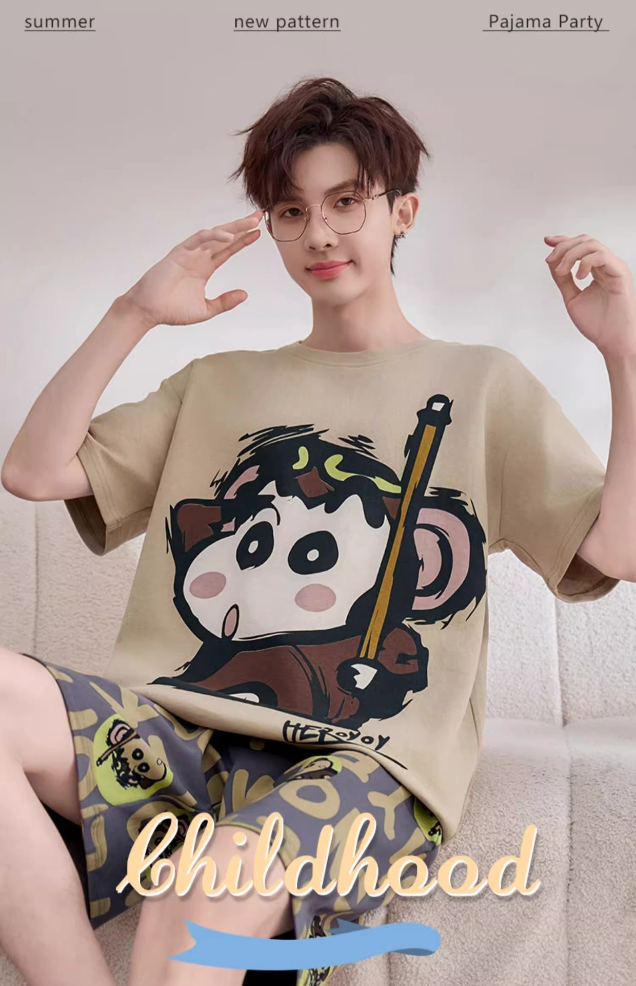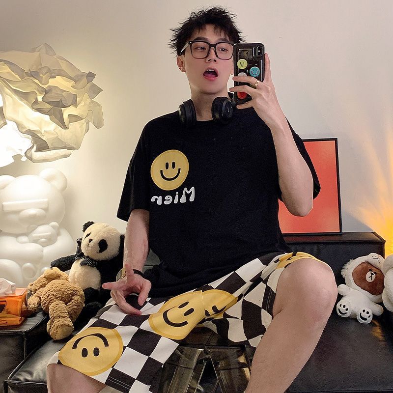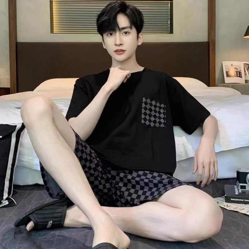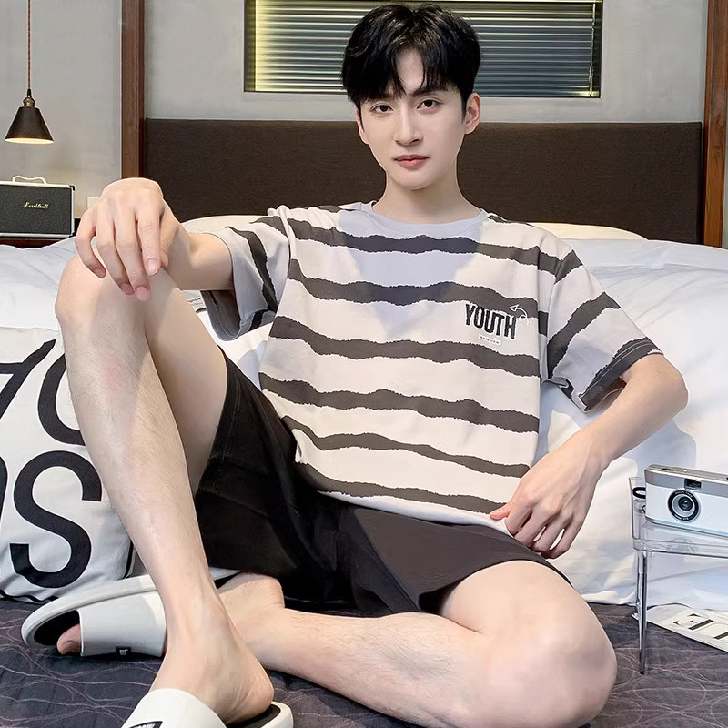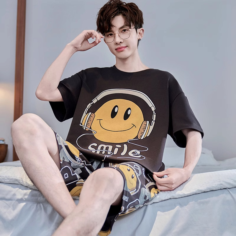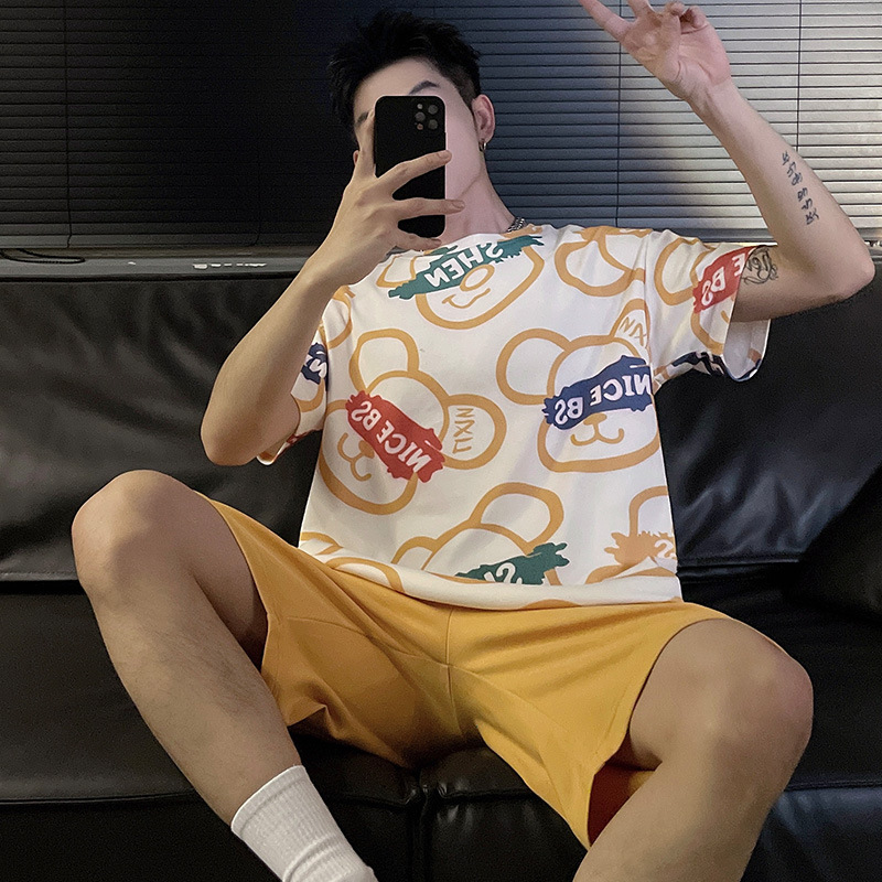 십대 플러스 플러스 사이즈 느슨한 외부 옷 입고 남자 잠옷 여름 반팔 반바지 얇은 세트