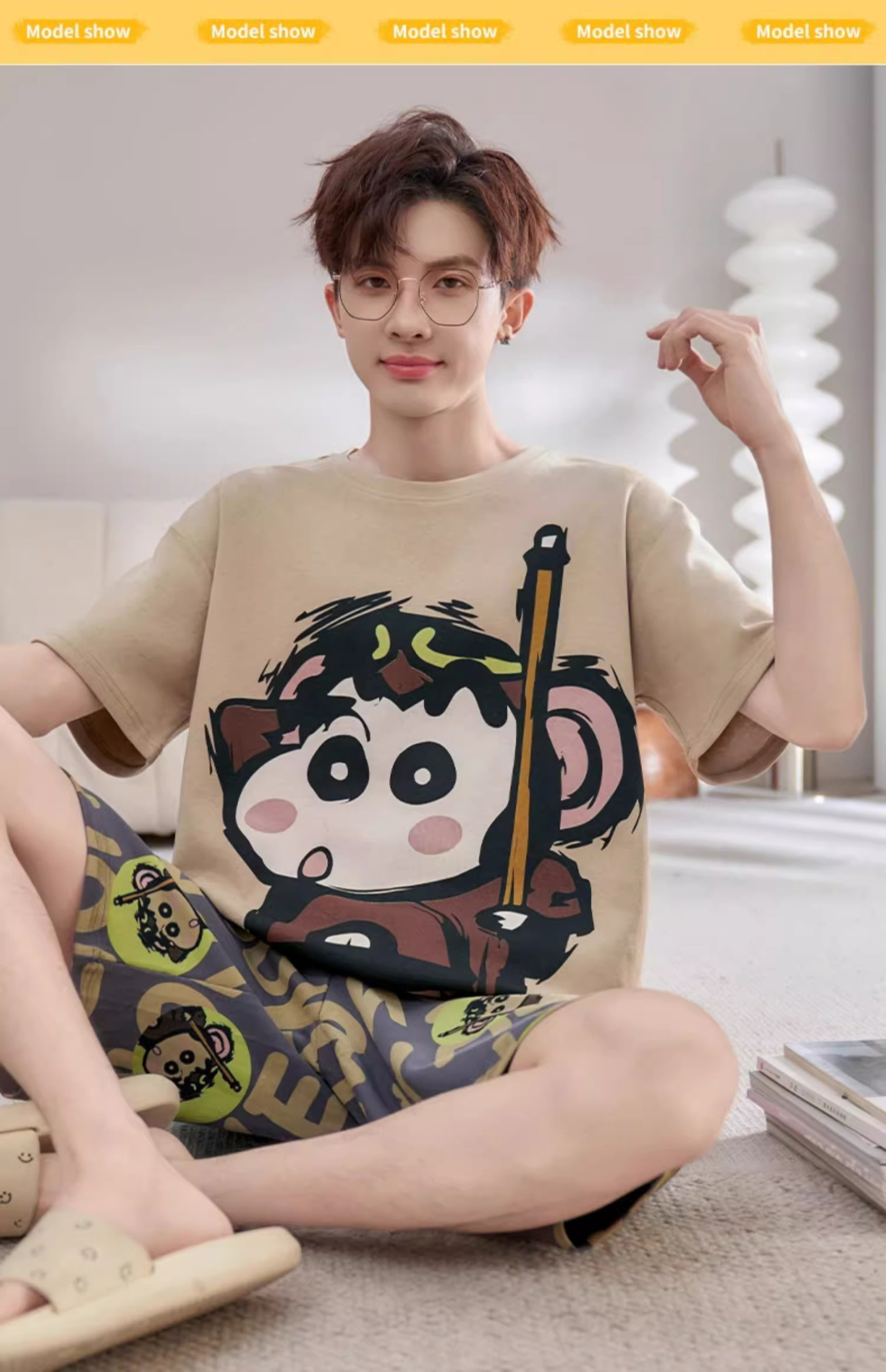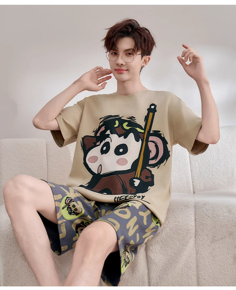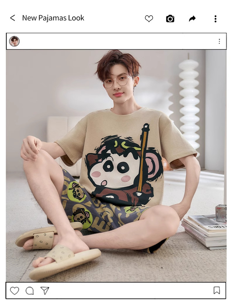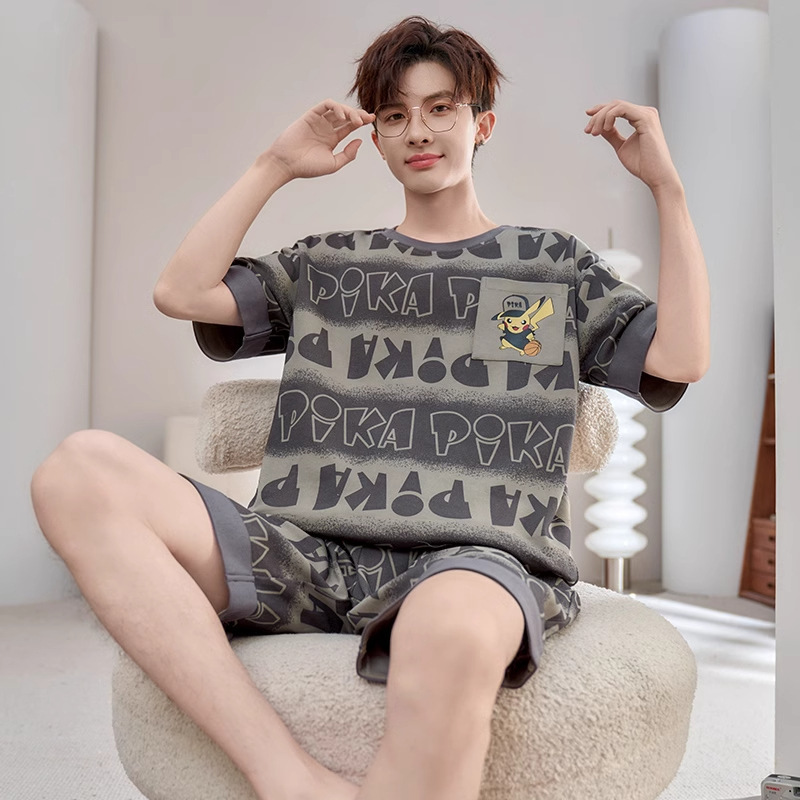 십대 플러스 플러스 사이즈 느슨한 외부 옷 입고 남자 잠옷 여름 반팔 반바지 얇은 세트