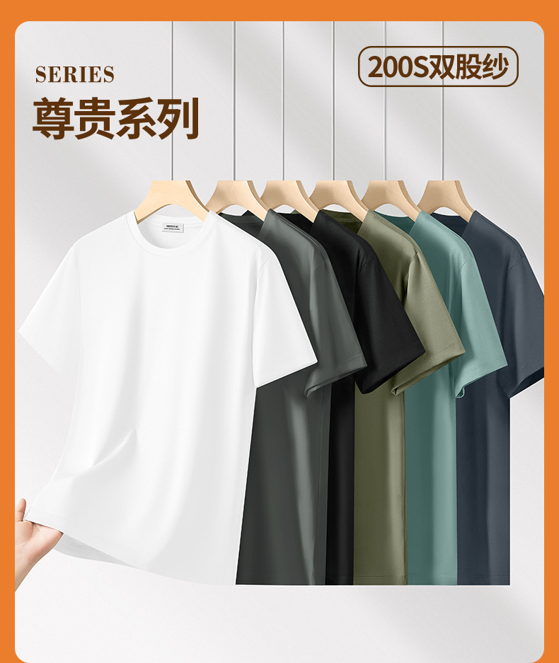 200수 액체 암모니아 처리된 롱 스테이플 코튼 반팔 티셔츠 남성 여름 얇은 이너웨어 고급 라운드넥 실크광 코튼 반팔
