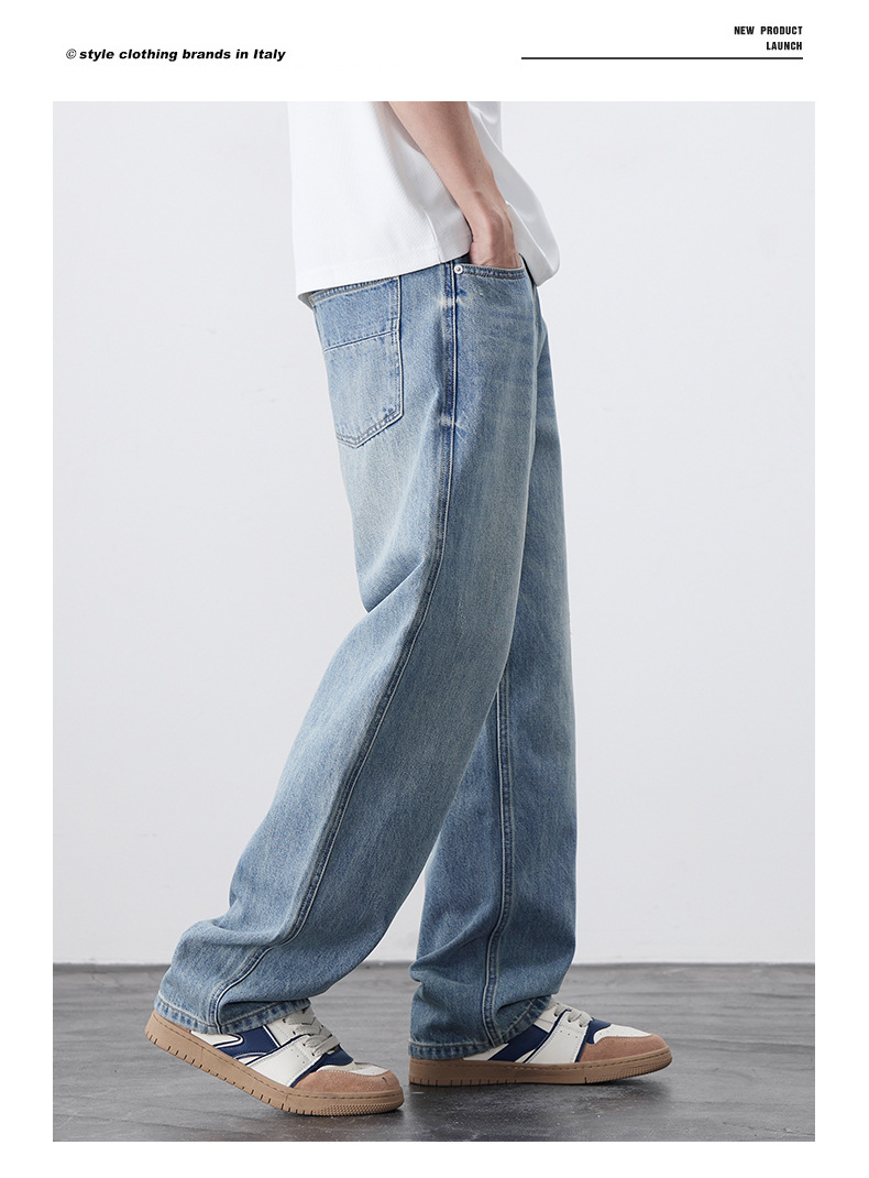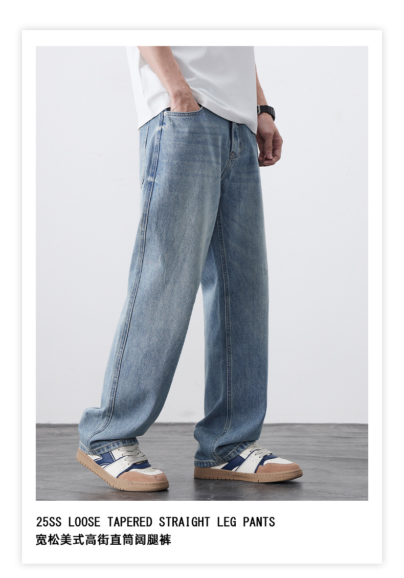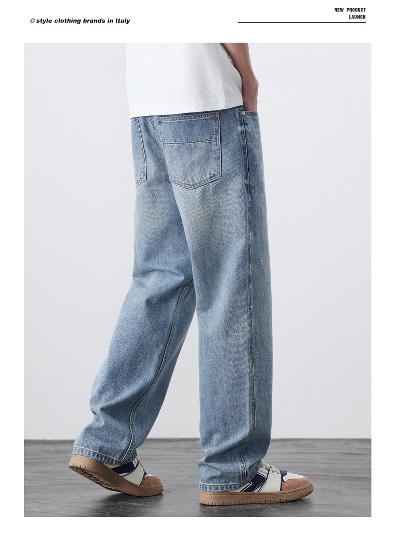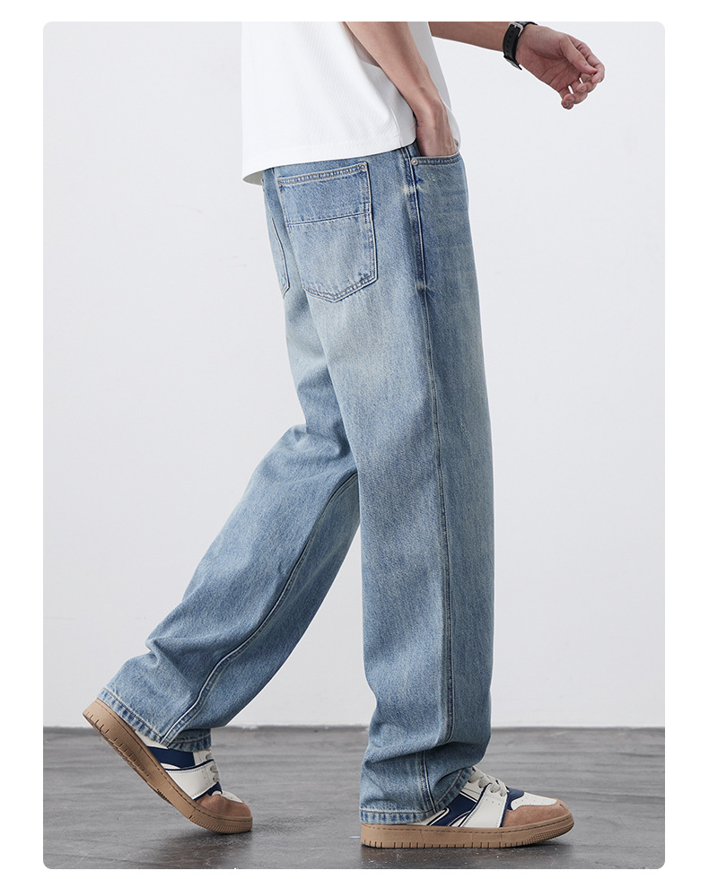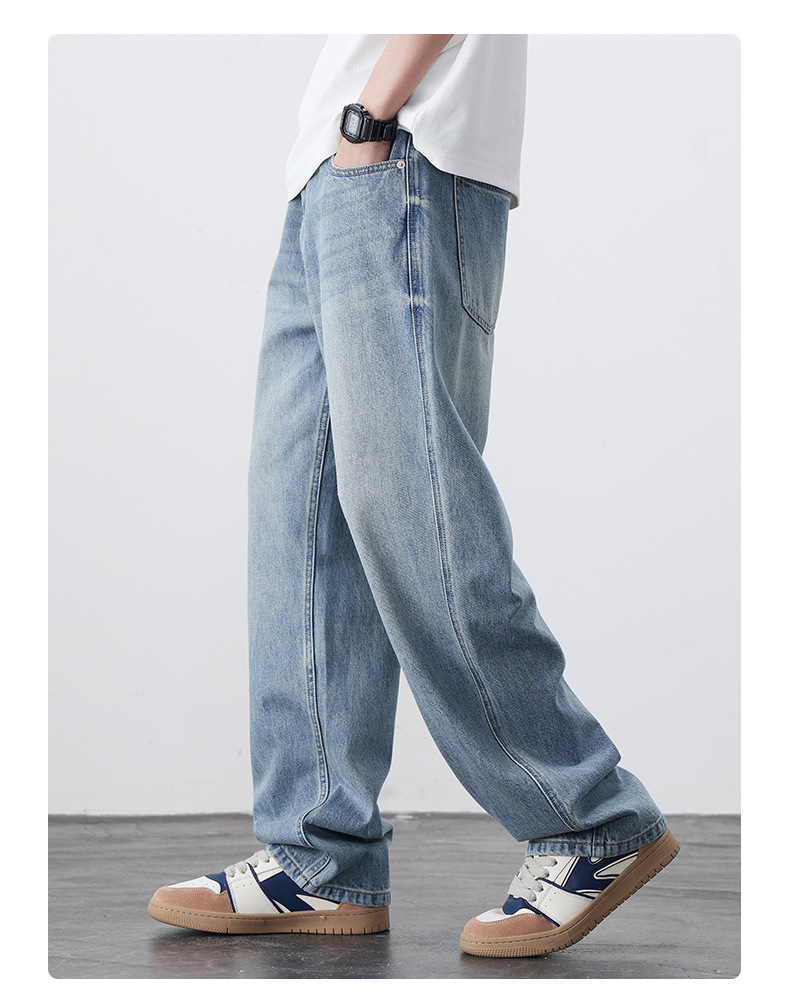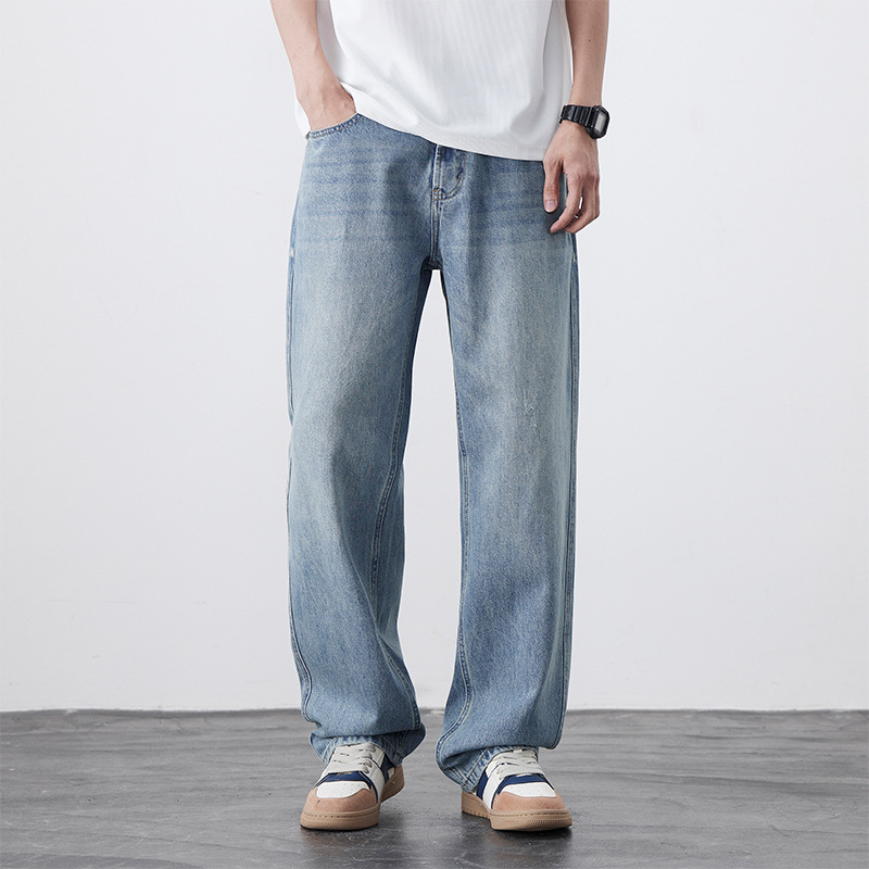 남성용 노스탤직 워싱 데님 통근 남성용 신상 루즈 아메리칸 하이 스트리트 팬츠 트렌디 브랜드 스트레이트 와이드 레그 청바지스토어 가기