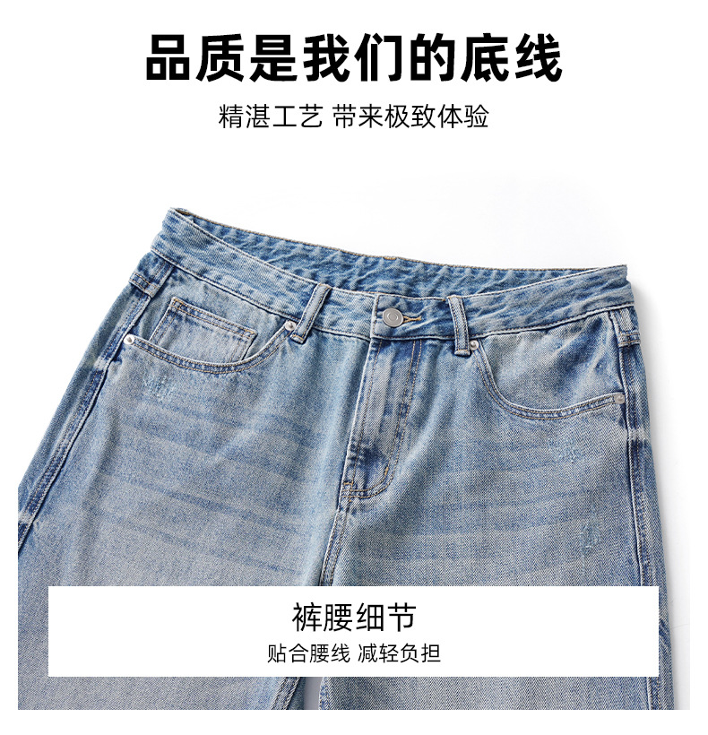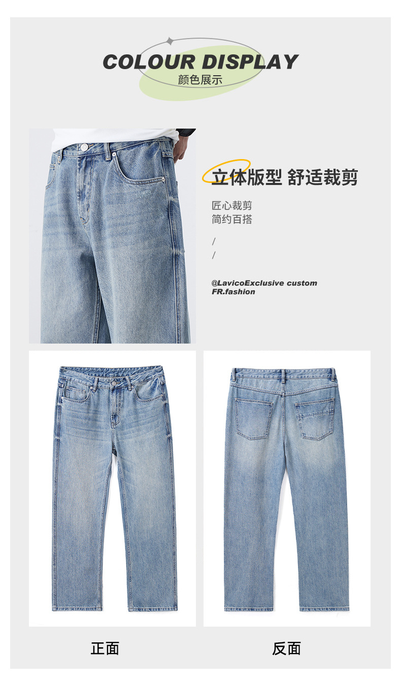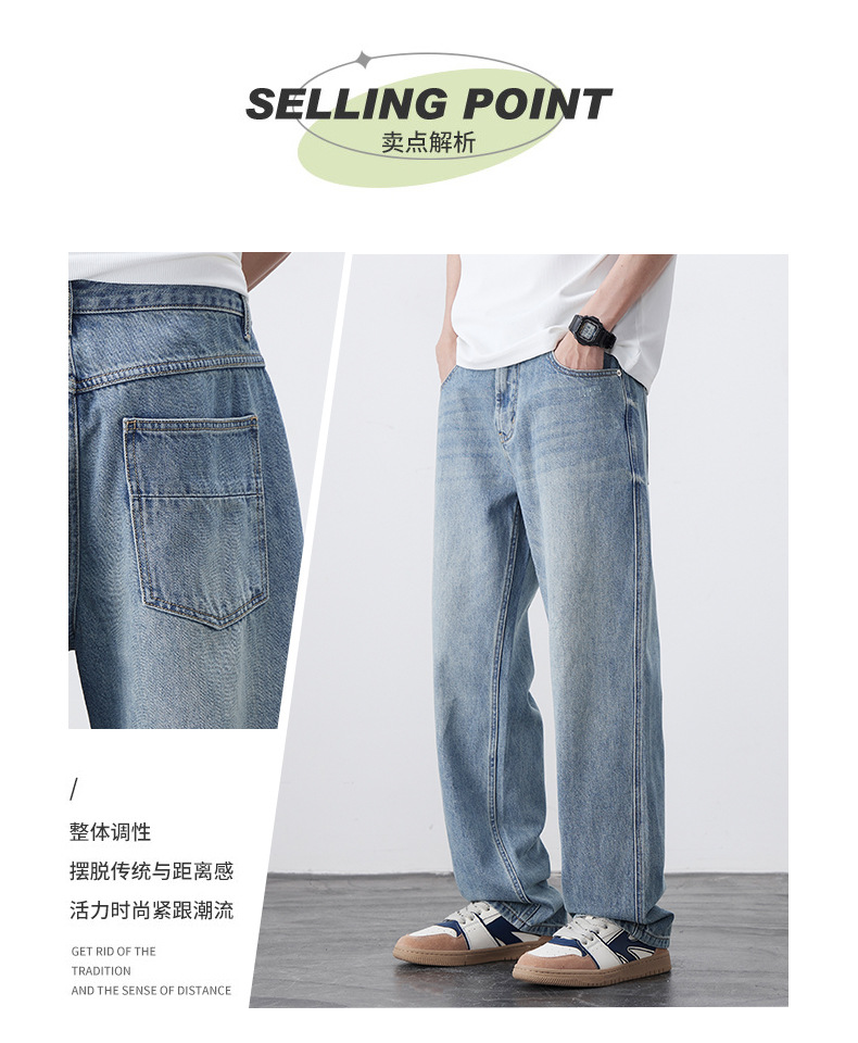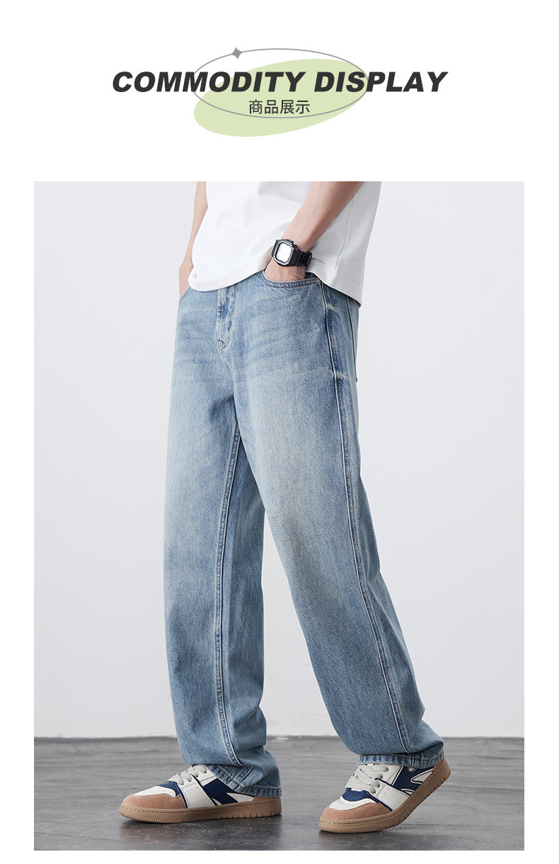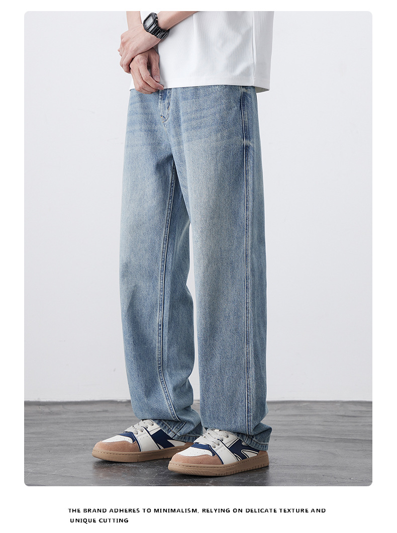 남성용 노스탤직 워싱 데님 통근 남성용 신상 루즈 아메리칸 하이 스트리트 팬츠 트렌디 브랜드 스트레이트 와이드 레그 청바지스토어 가기