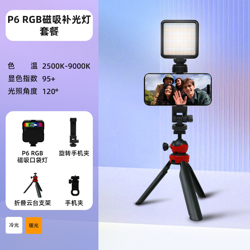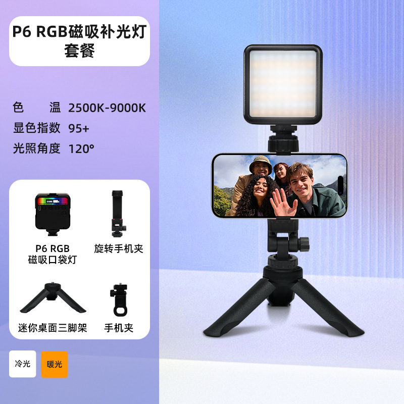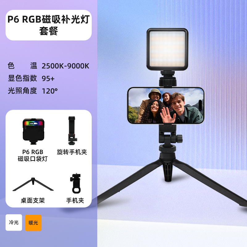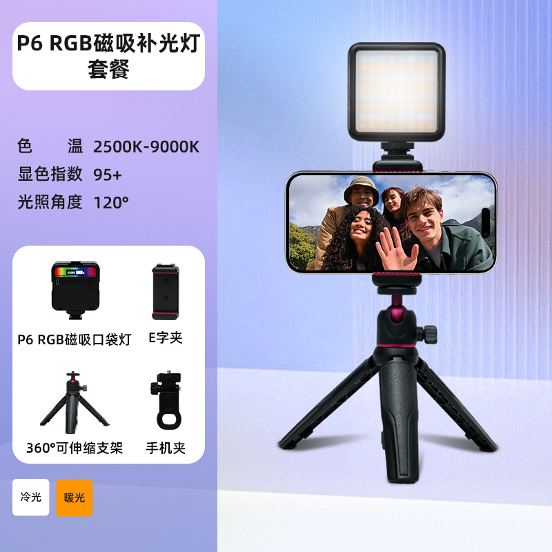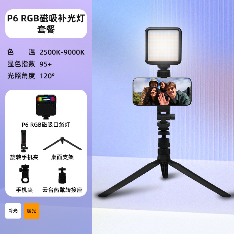 • P6R [마그네틱 풀 컬러/LCD 디스플레이] + 데스크탑 스탠드 + 회전 휴대폰 클립 + 팬틸트 핫슈 어댑터 + 휴대폰 클립