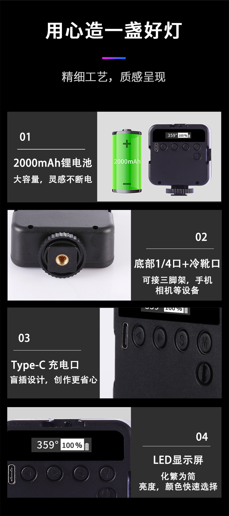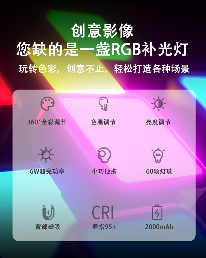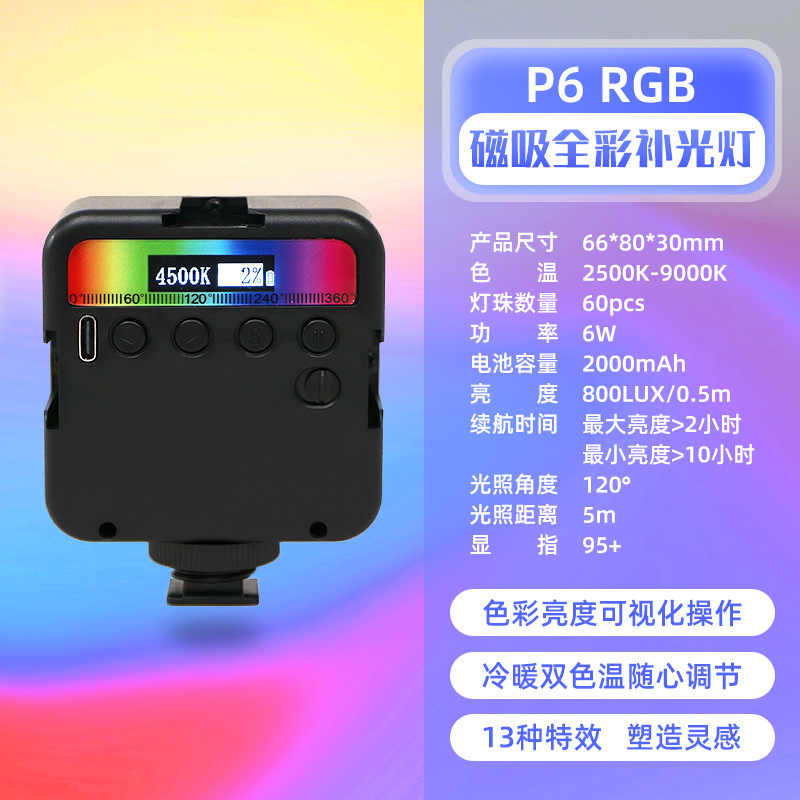 Inkxi P6RGB 미니 필 라이트 풀 컬러 포켓 휴대용 소형 LED 멀티 컬러 조명 사진 조명 메인