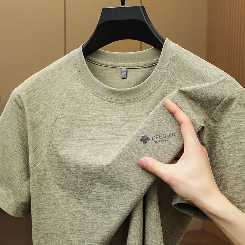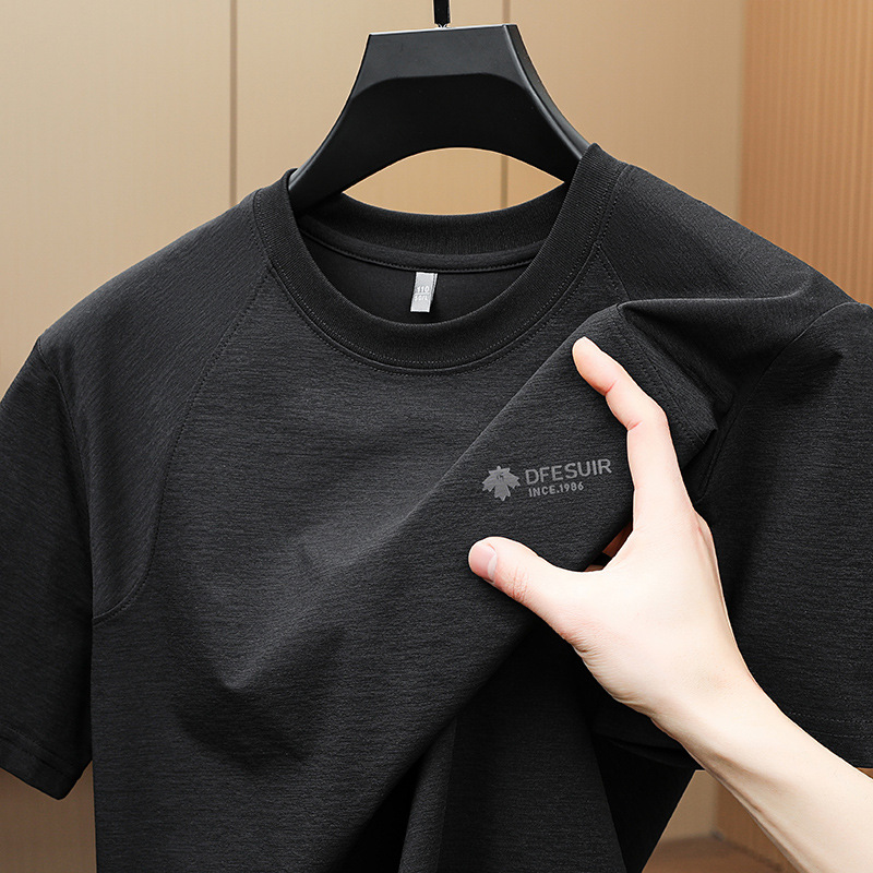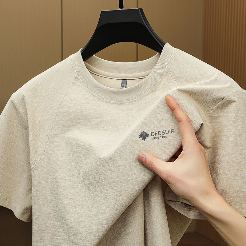 2025 라이브 방송 핫 여름 남성 속건성 반팔 라운드 넥 티셔츠 시원하고 통기성이 뛰어나며 캐주얼하고 다재다능한 루즈 탑
