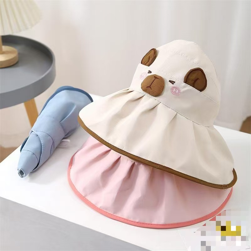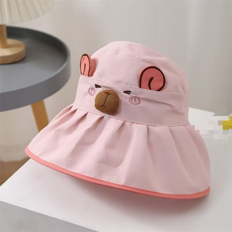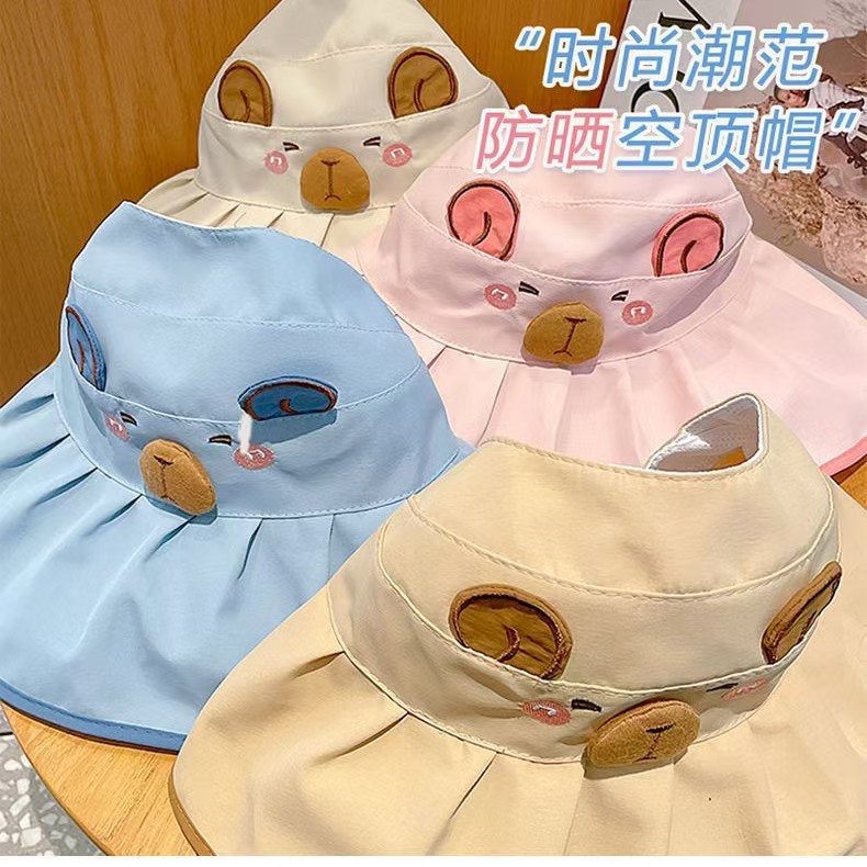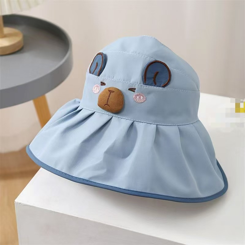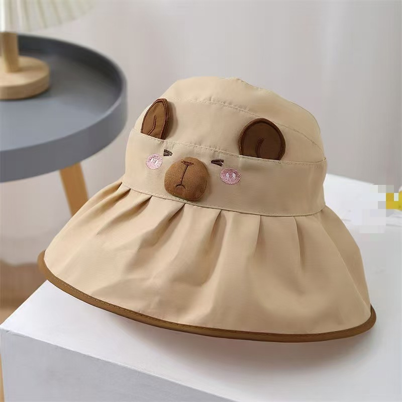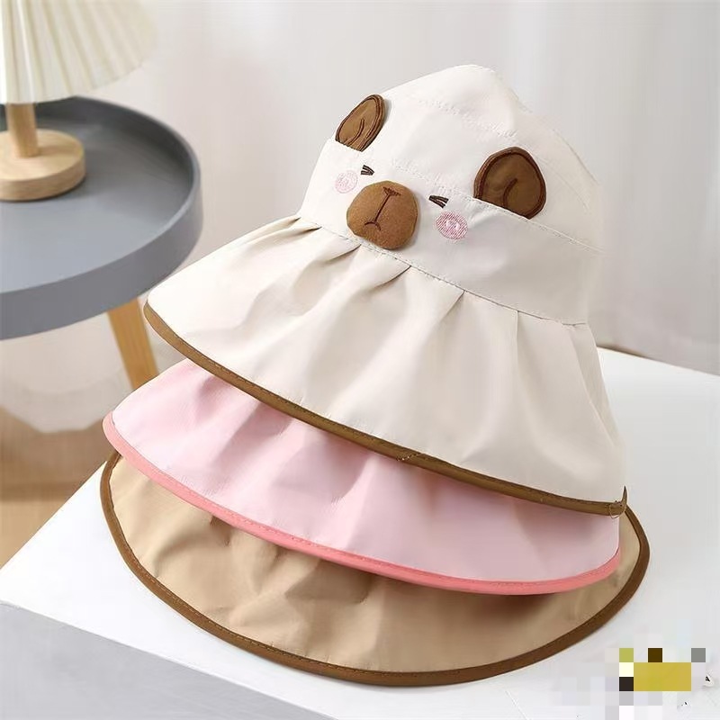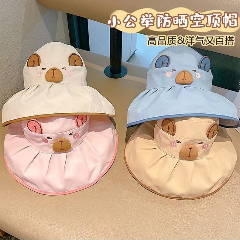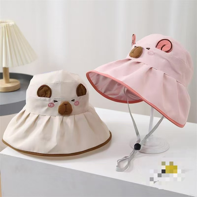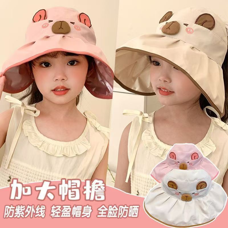 Kapibala 어린이 만화 태양 보호 여름 빈 탑 태양 모자 소년과 소녀를위한 어부 모자 컬러 고무 빈 탑 여름 모자스토어 가기