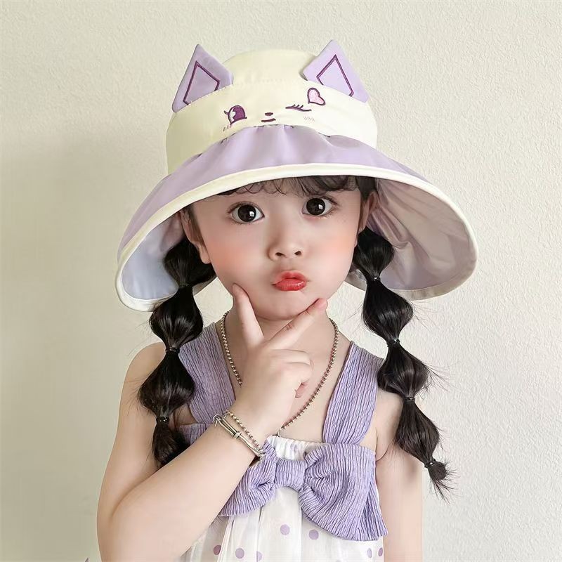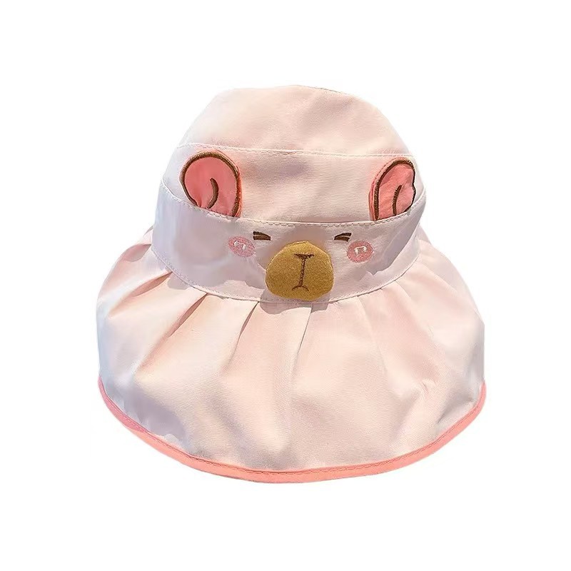 Kapibala 어린이 만화 태양 보호 여름 빈 탑 태양 모자 소년과 소녀를위한 어부 모자 컬러 고무 빈 탑 여름 모자