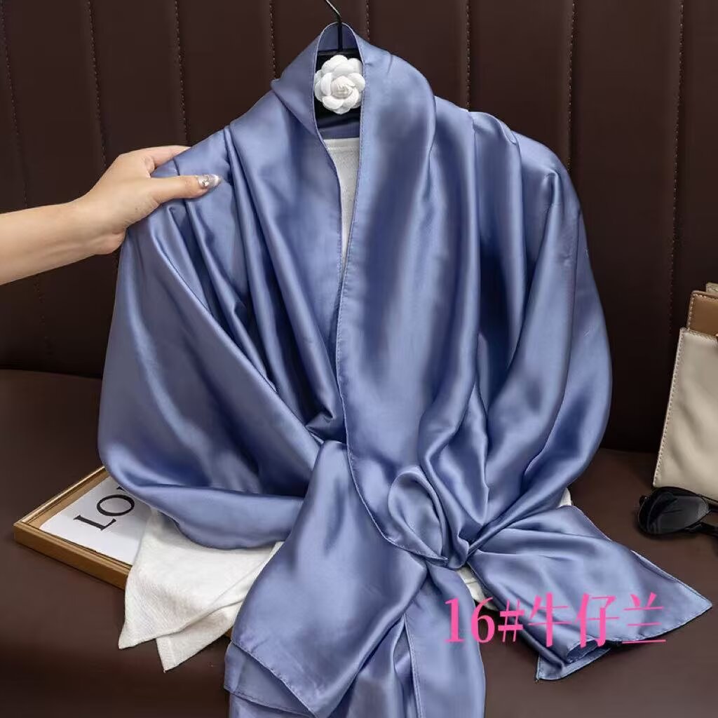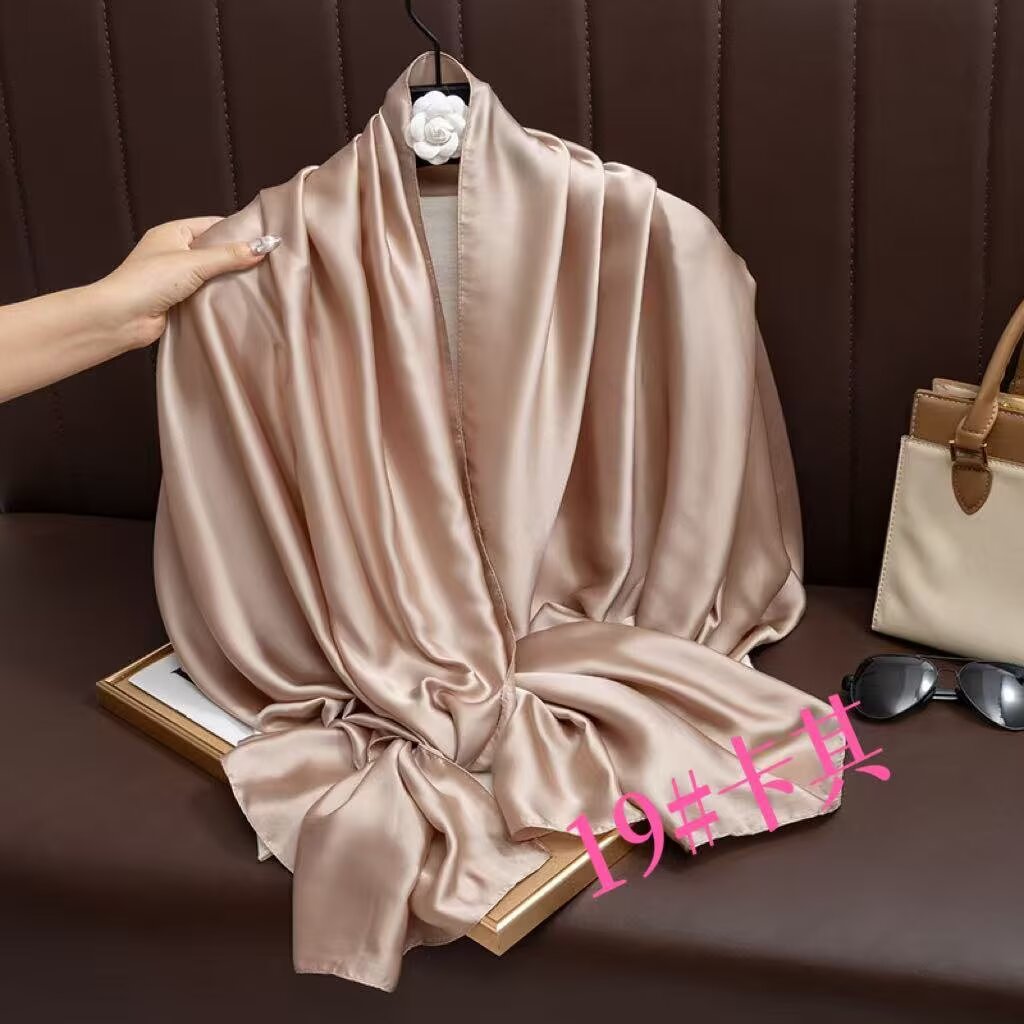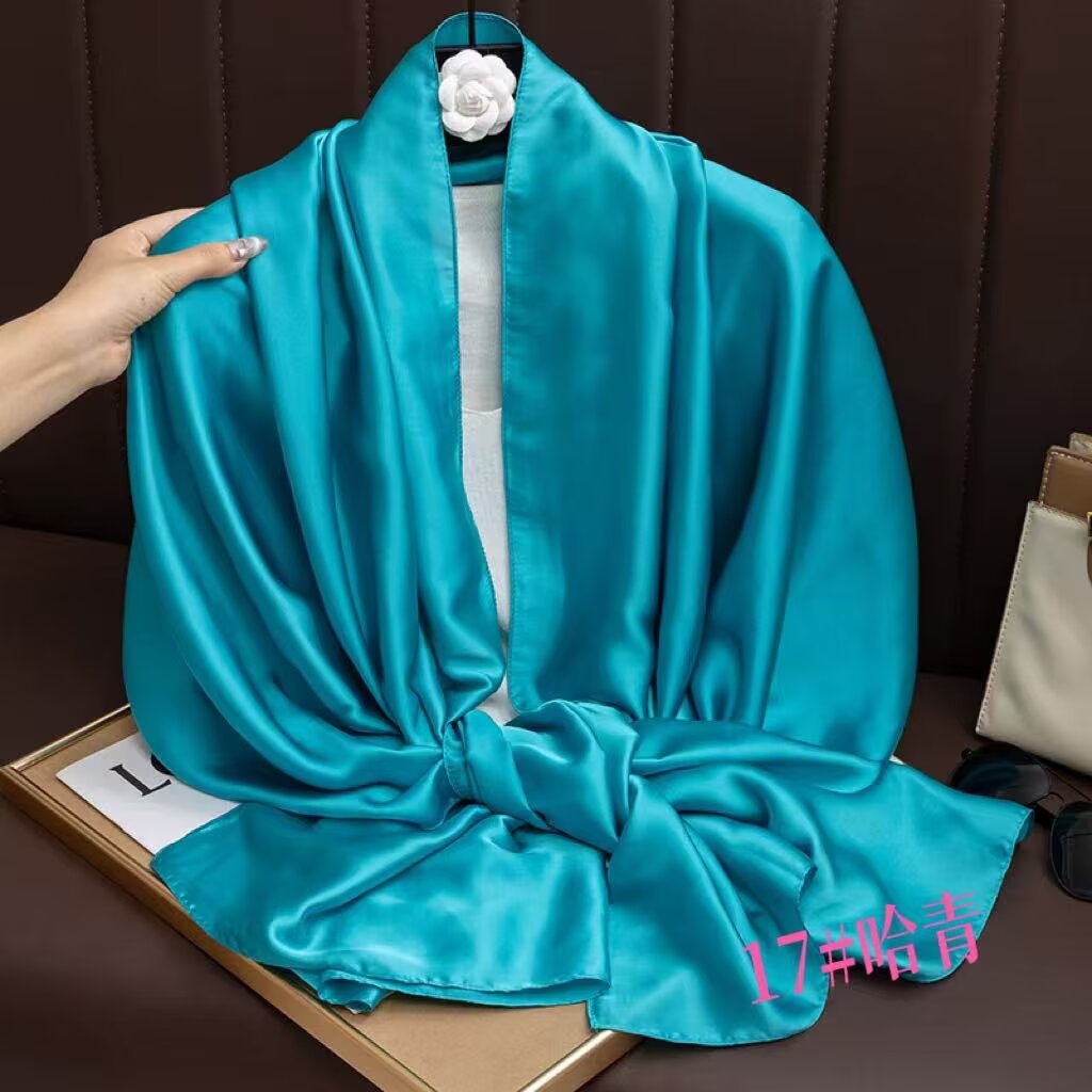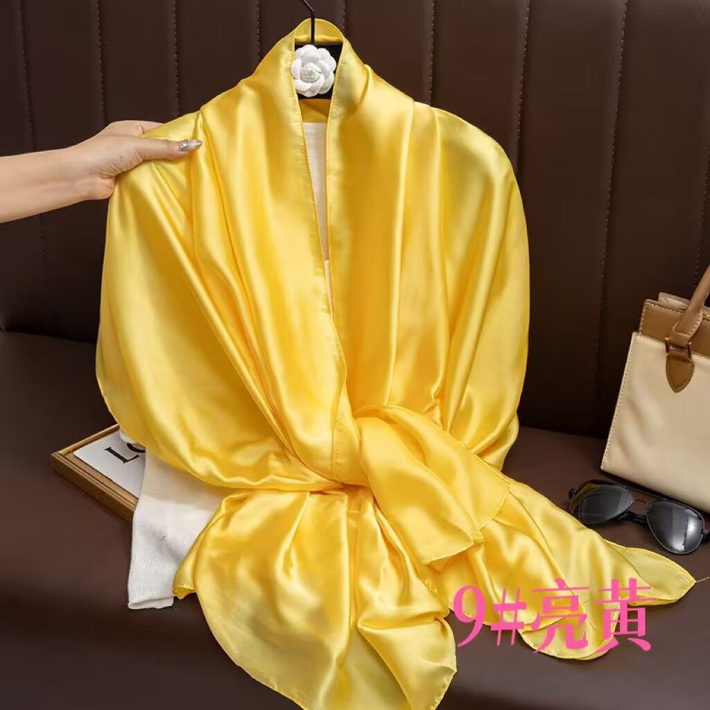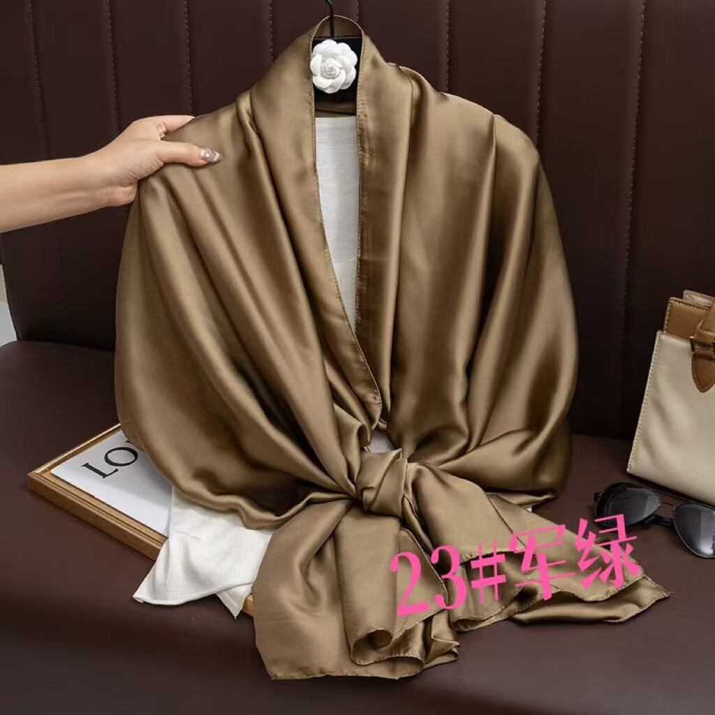 새로운 시뮬레이션 실크 스카프, 브로케이드 롱 스카프, 봄과 가을 패션, 다재다능한 여름 자외선 차단 숄, 터번스토어 가기