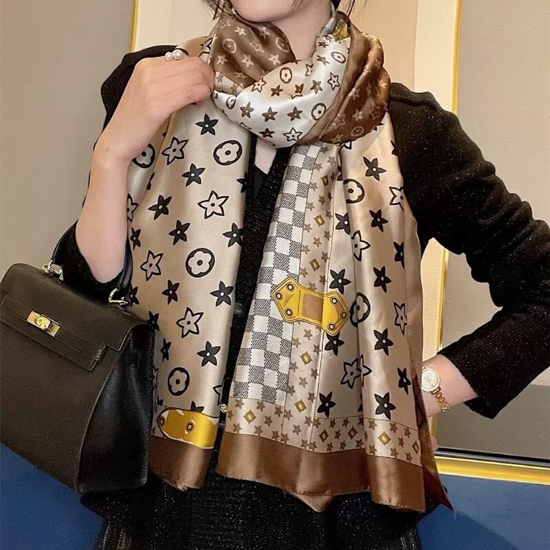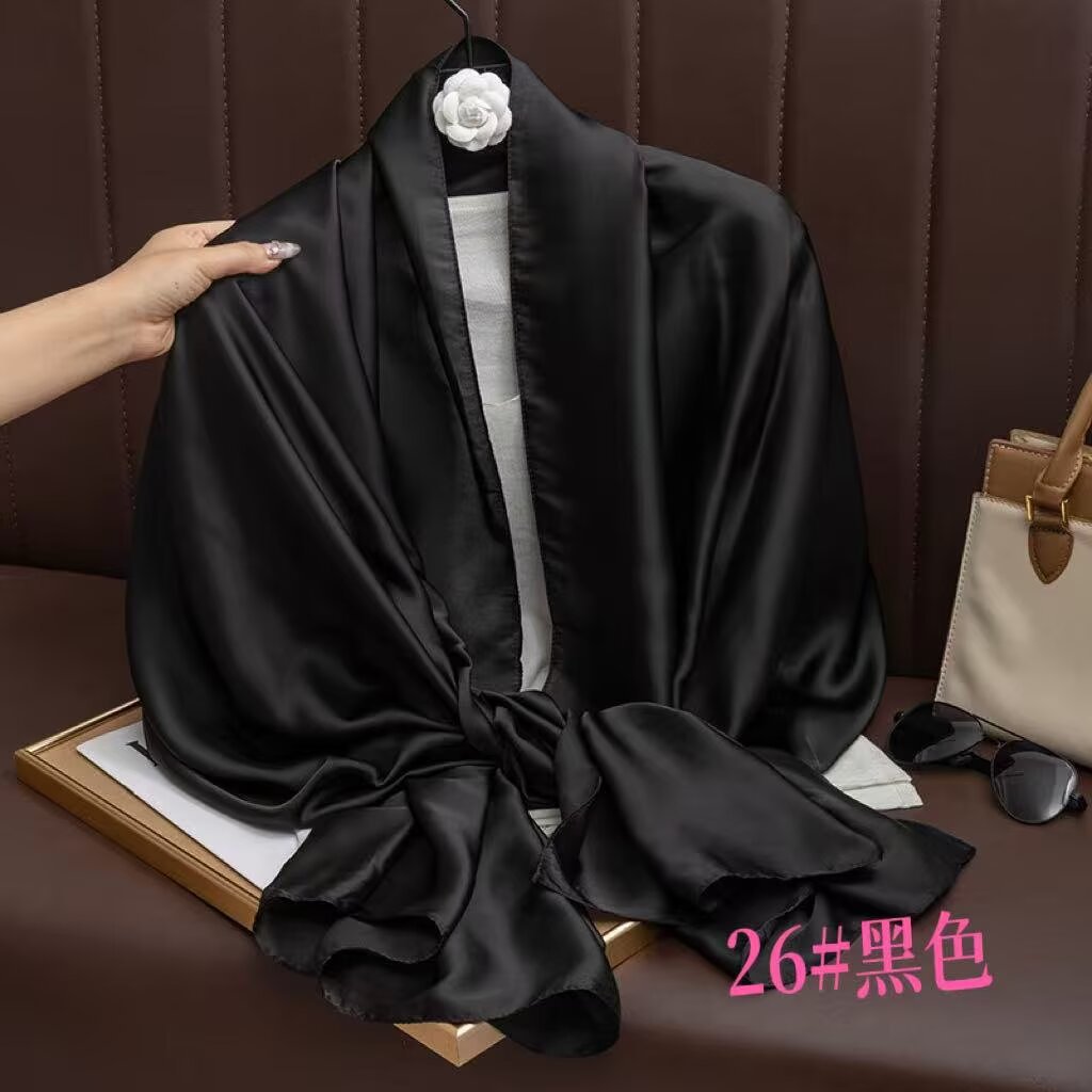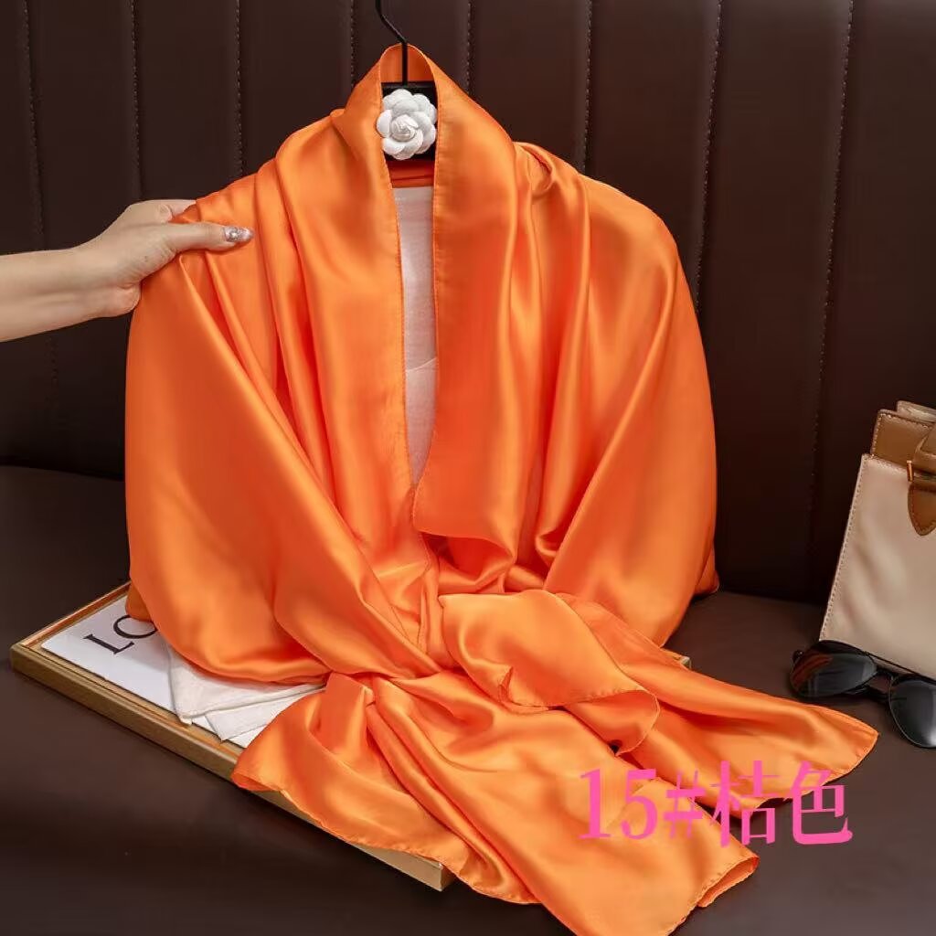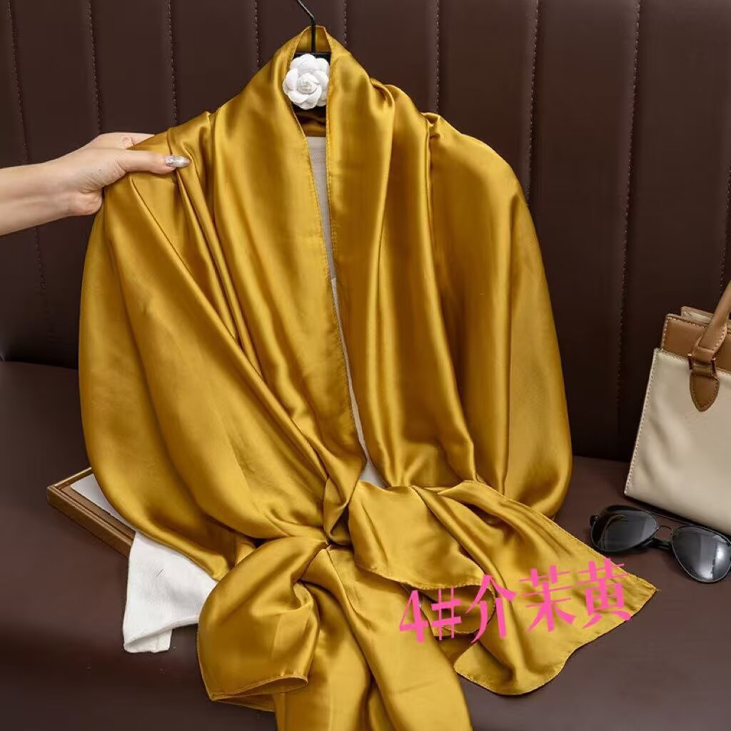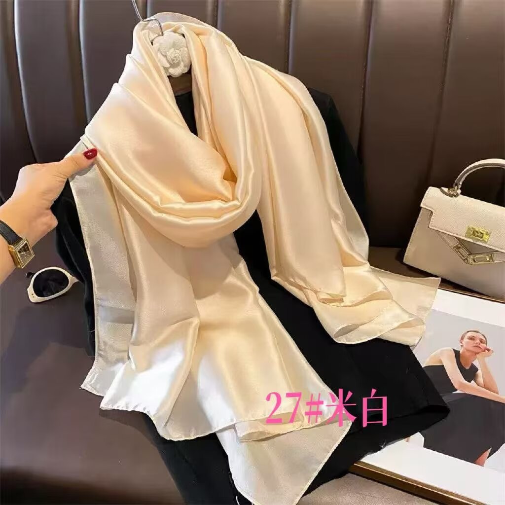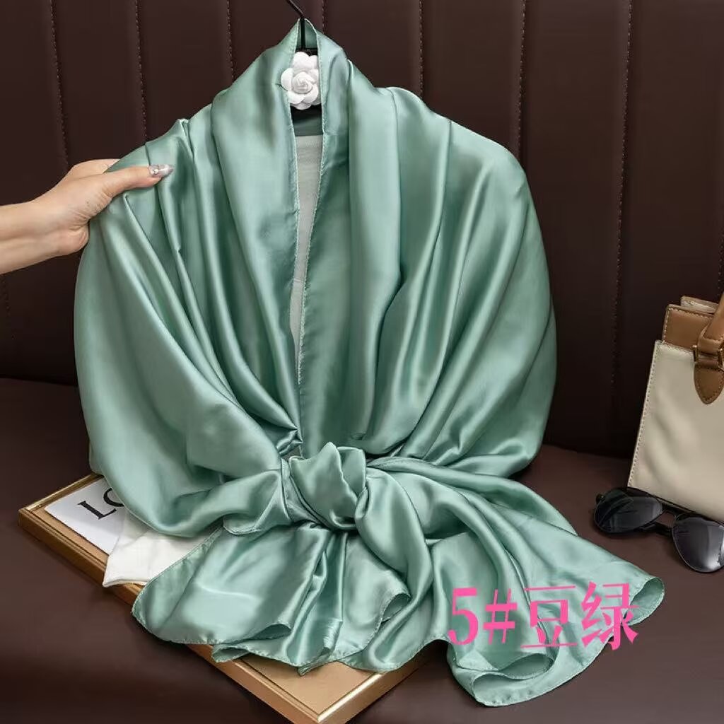 새로운 시뮬레이션 실크 스카프, 브로케이드 롱 스카프, 봄과 가을 패션, 다재다능한 여름 자외선 차단 숄, 터번스토어 가기