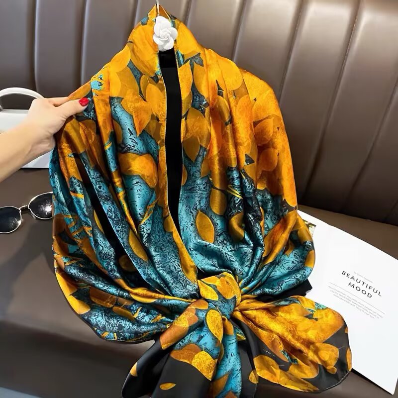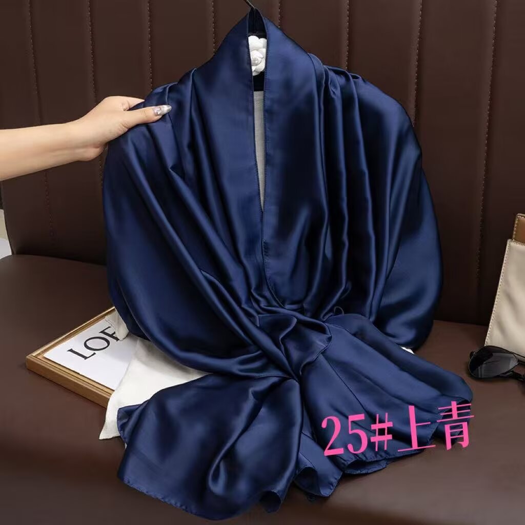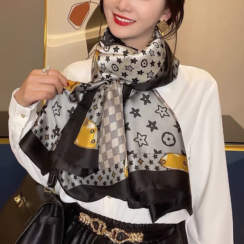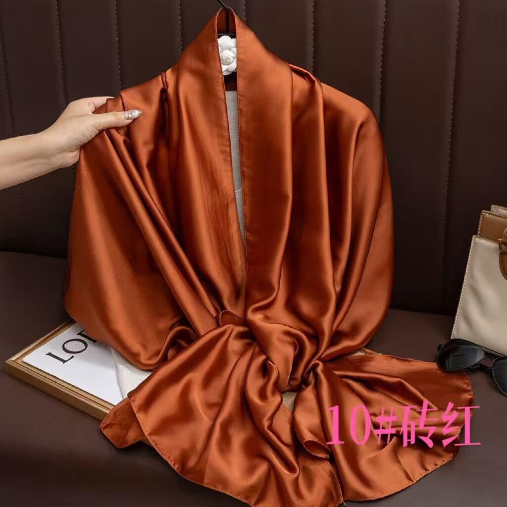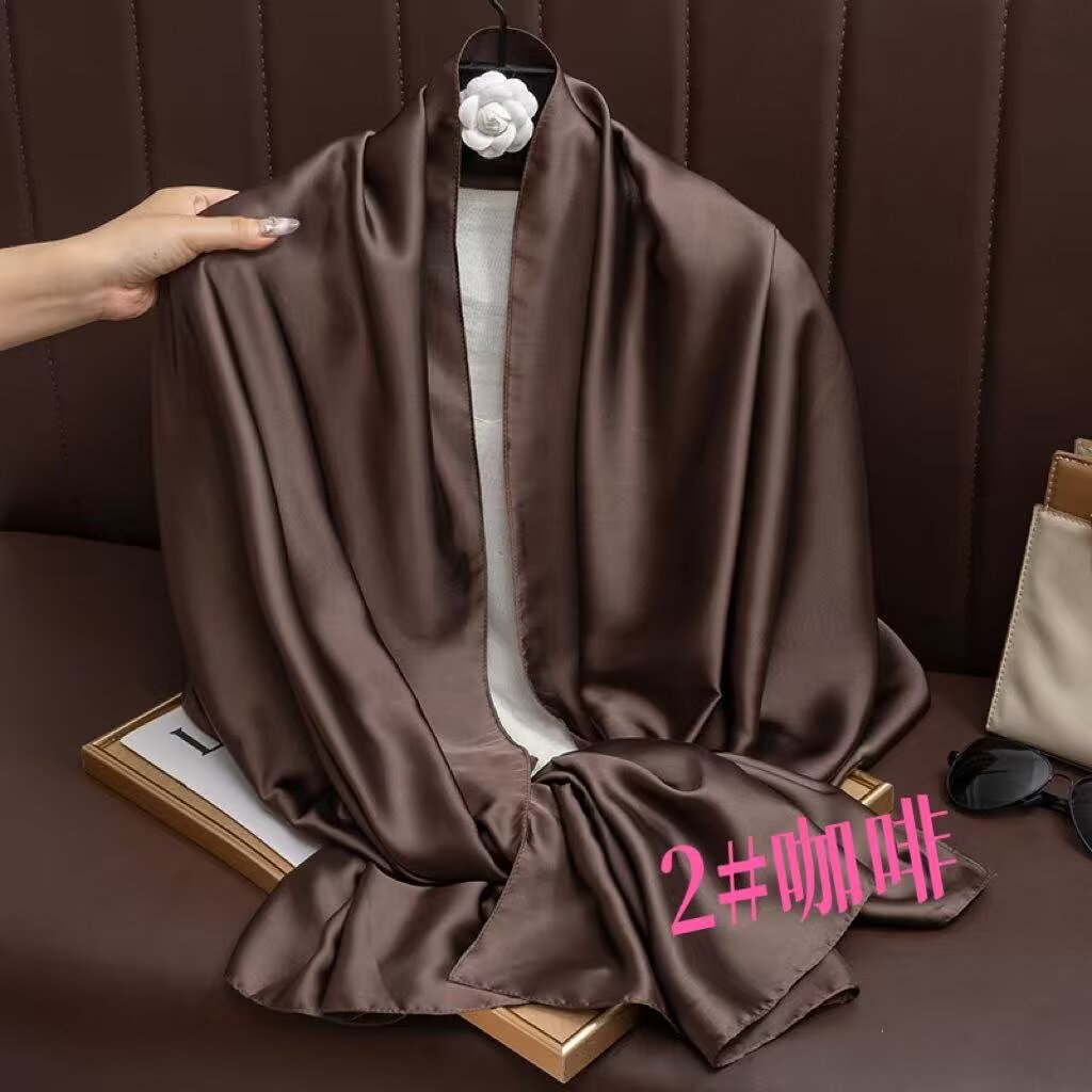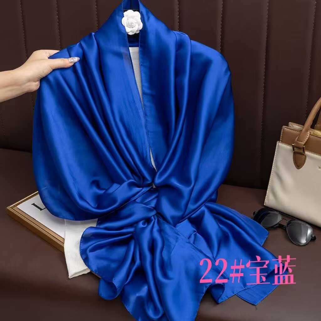 새로운 시뮬레이션 실크 스카프, 브로케이드 롱 스카프, 봄과 가을 패션, 다재다능한 여름 자외선 차단 숄, 터번스토어 가기