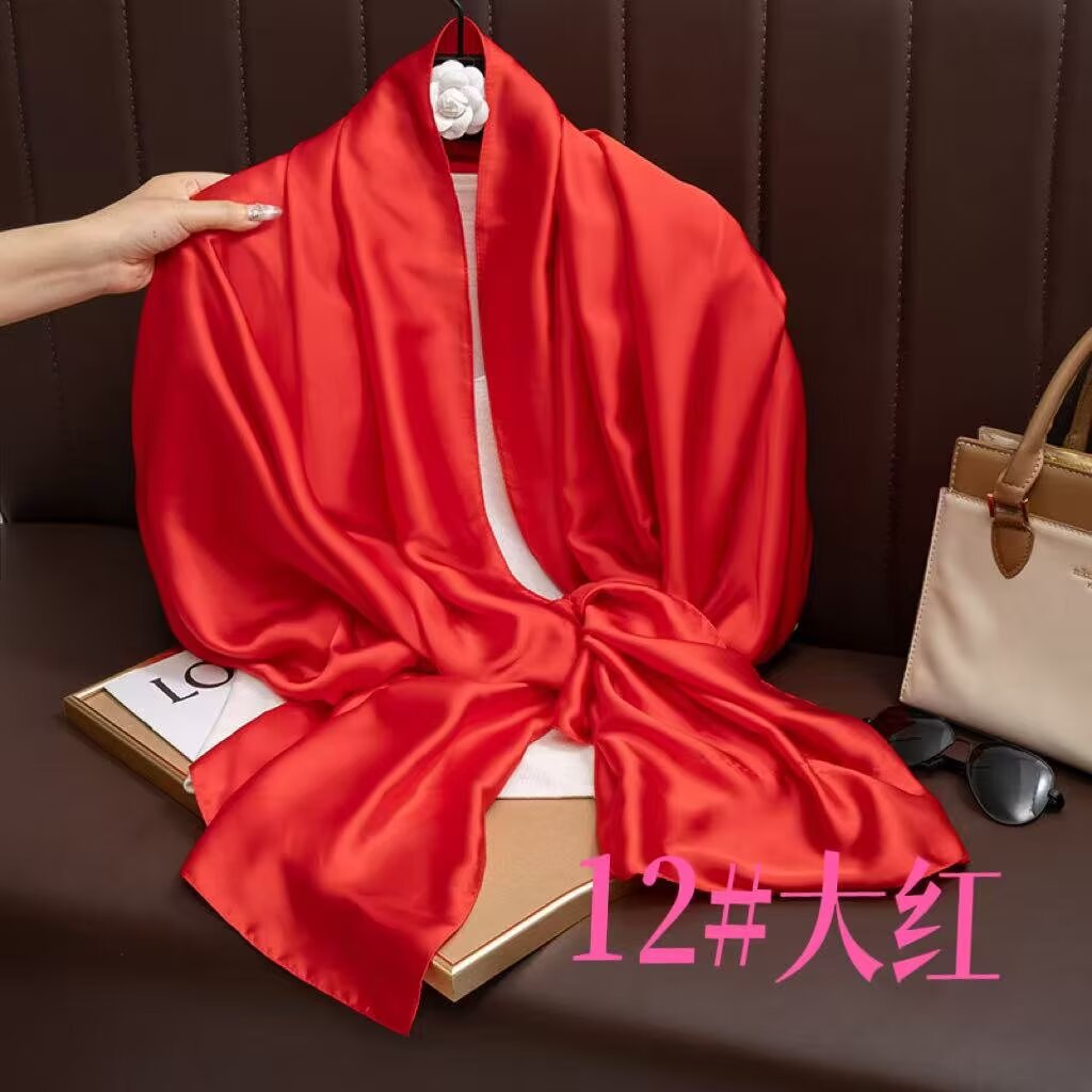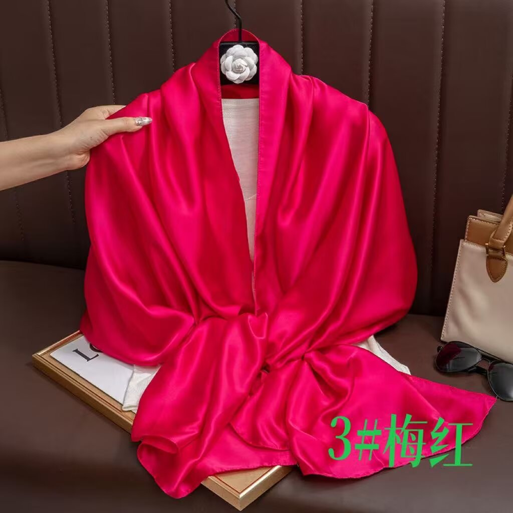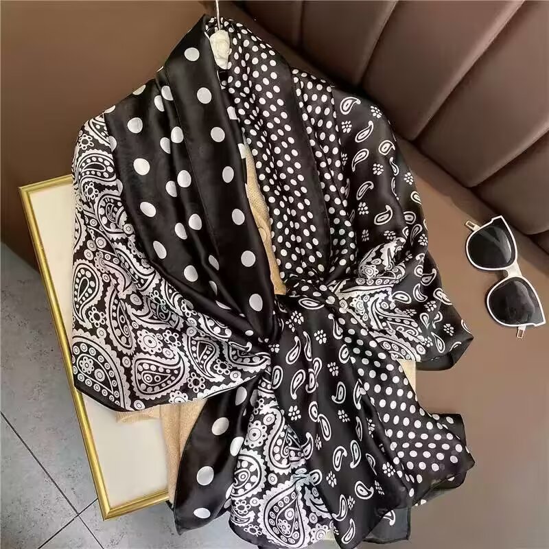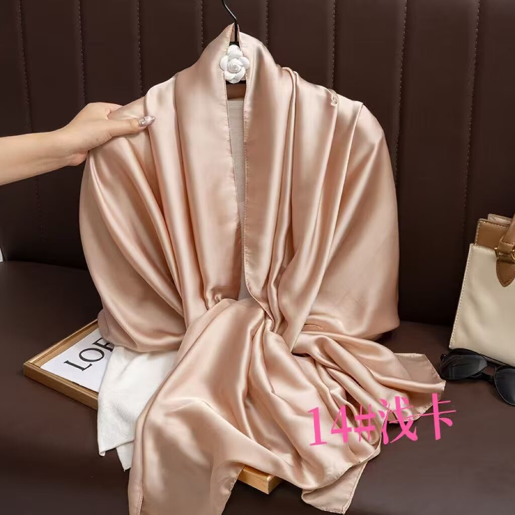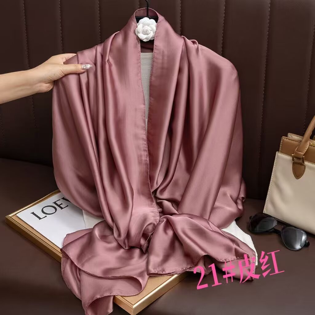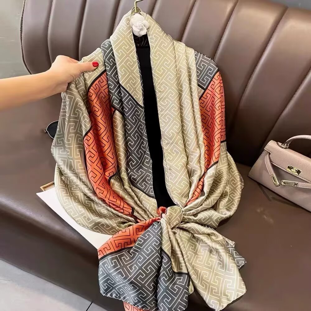 새로운 시뮬레이션 실크 스카프, 브로케이드 롱 스카프, 봄과 가을 패션, 다재다능한 여름 자외선 차단 숄, 터번스토어 가기
