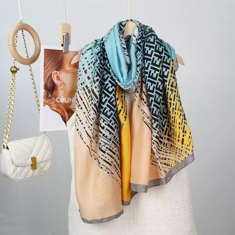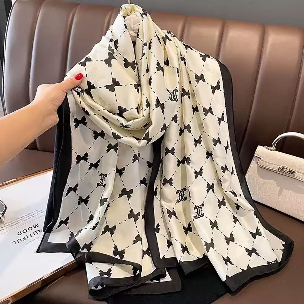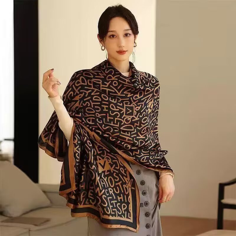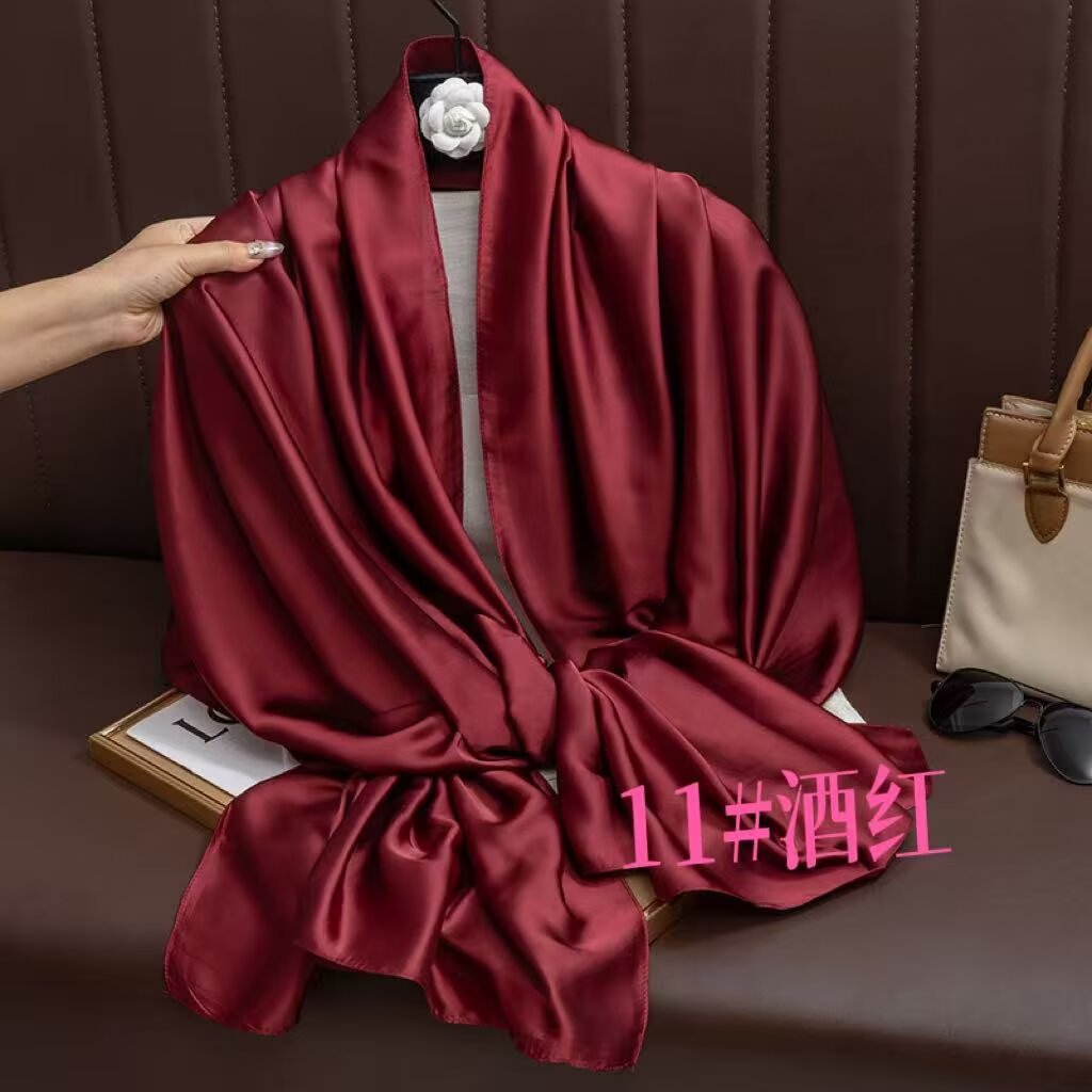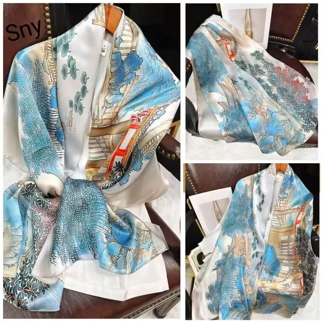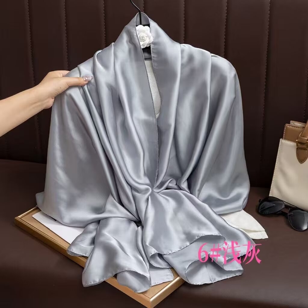 새로운 시뮬레이션 실크 스카프, 브로케이드 롱 스카프, 봄과 가을 패션, 다재다능한 여름 자외선 차단 숄, 터번스토어 가기