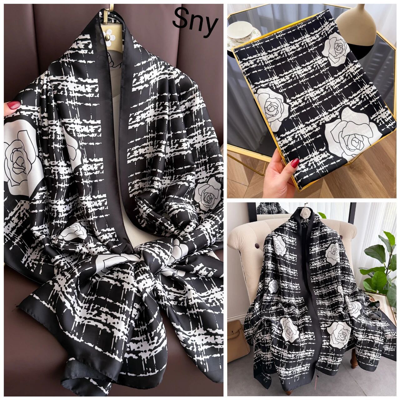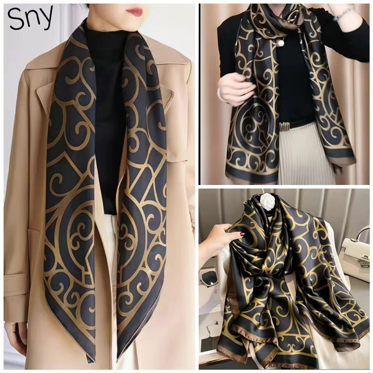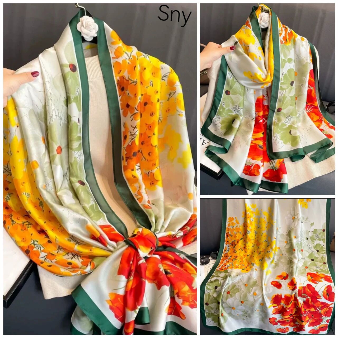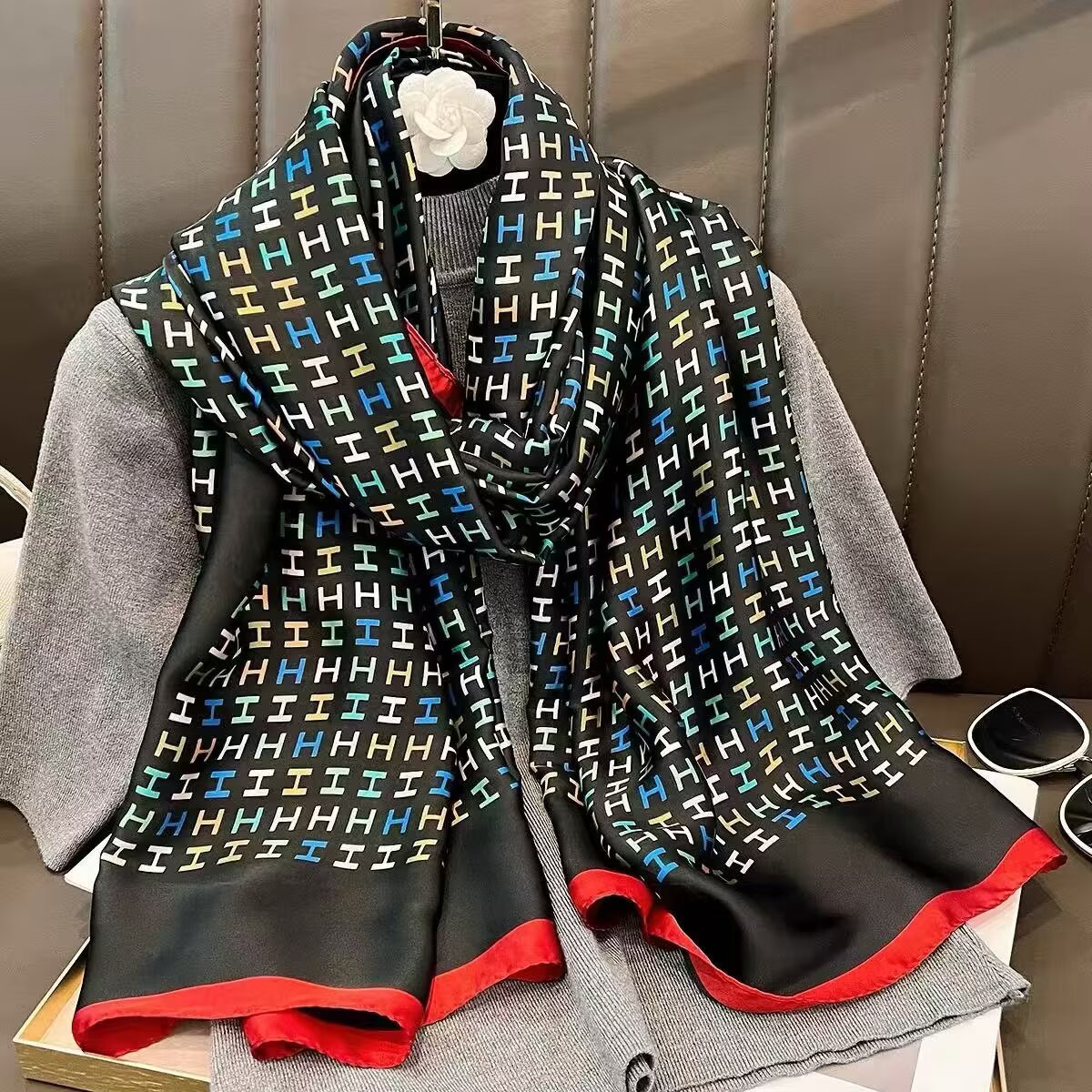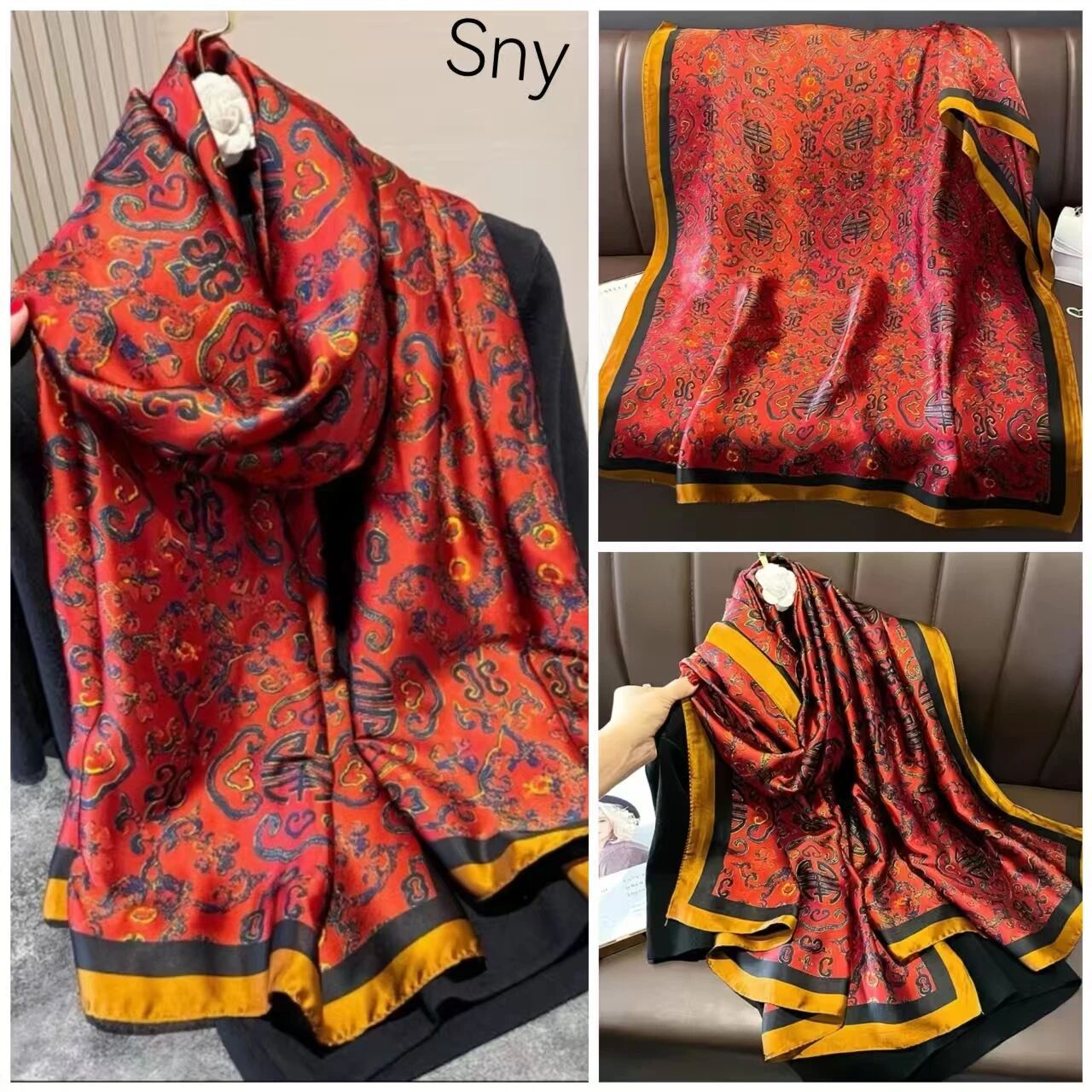 새로운 시뮬레이션 실크 스카프, 브로케이드 롱 스카프, 봄과 가을 패션, 다재다능한 여름 자외선 차단 숄, 터번스토어 가기