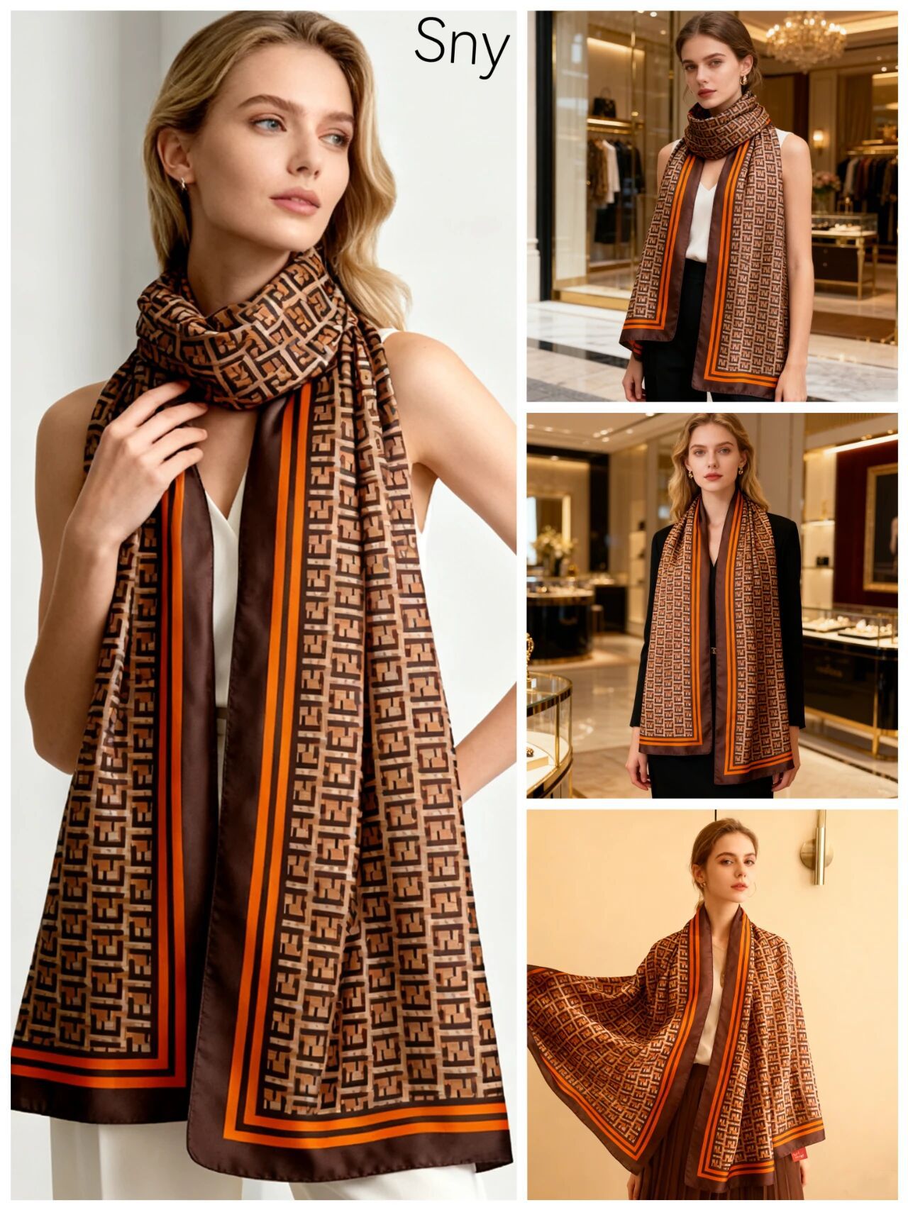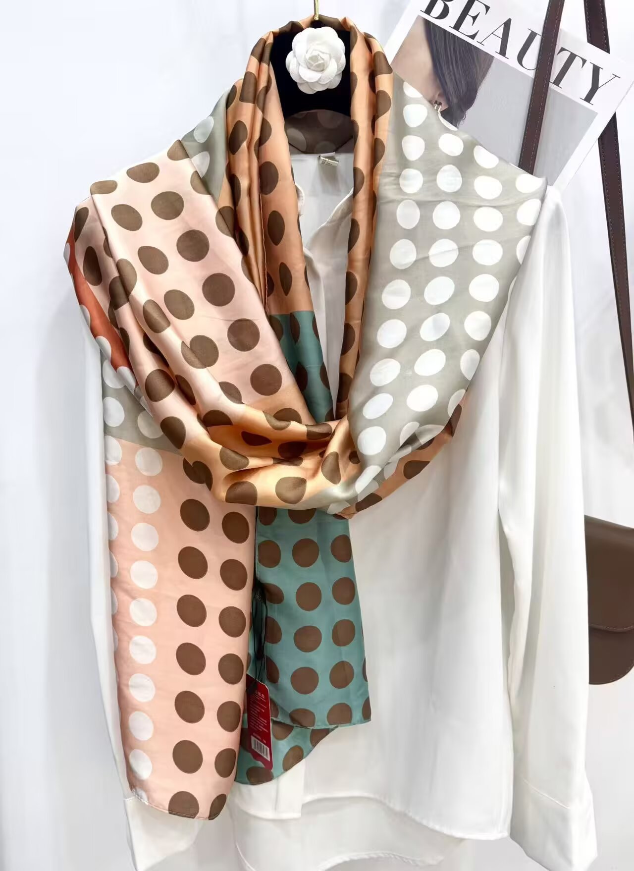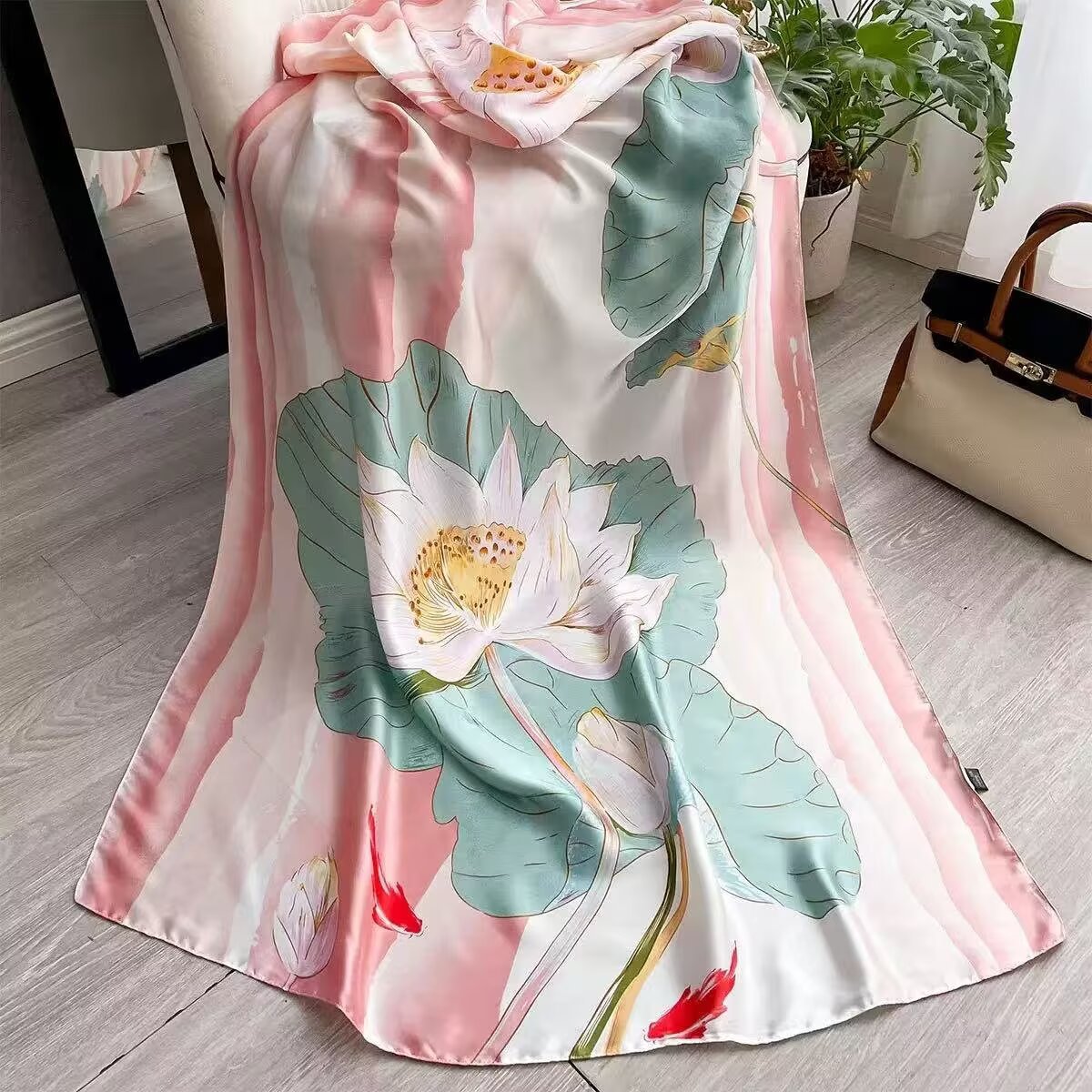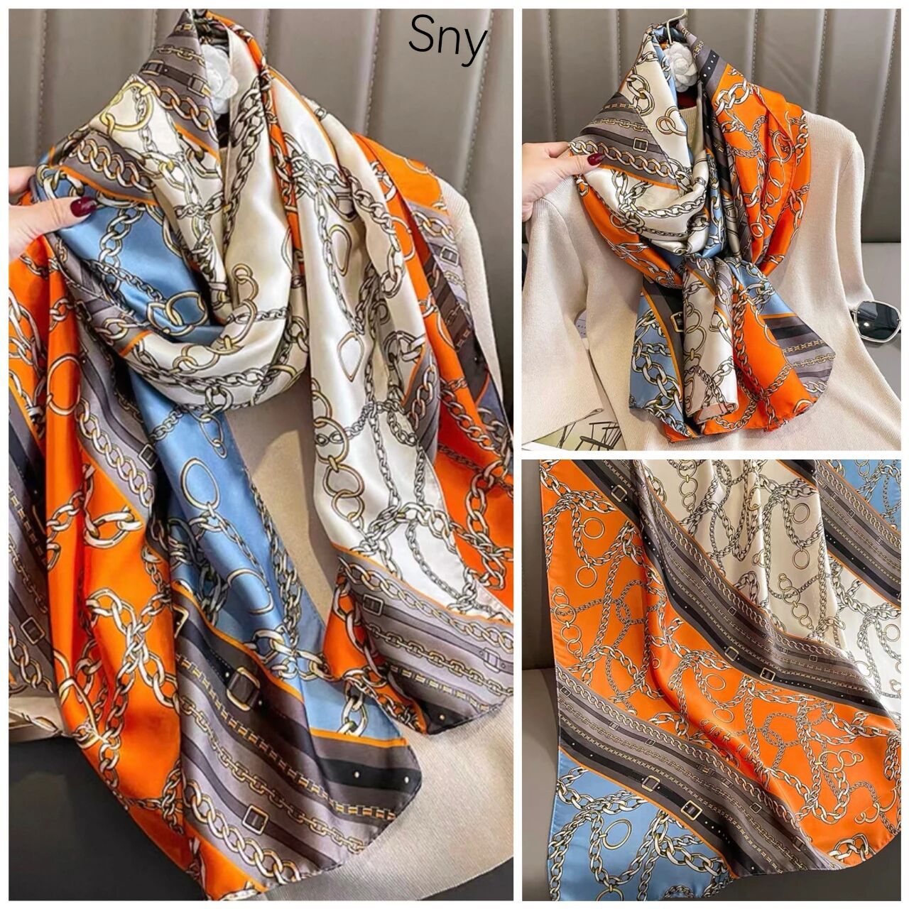 새로운 시뮬레이션 실크 스카프, 브로케이드 롱 스카프, 봄과 가을 패션, 다재다능한 여름 자외선 차단 숄, 터번스토어 가기