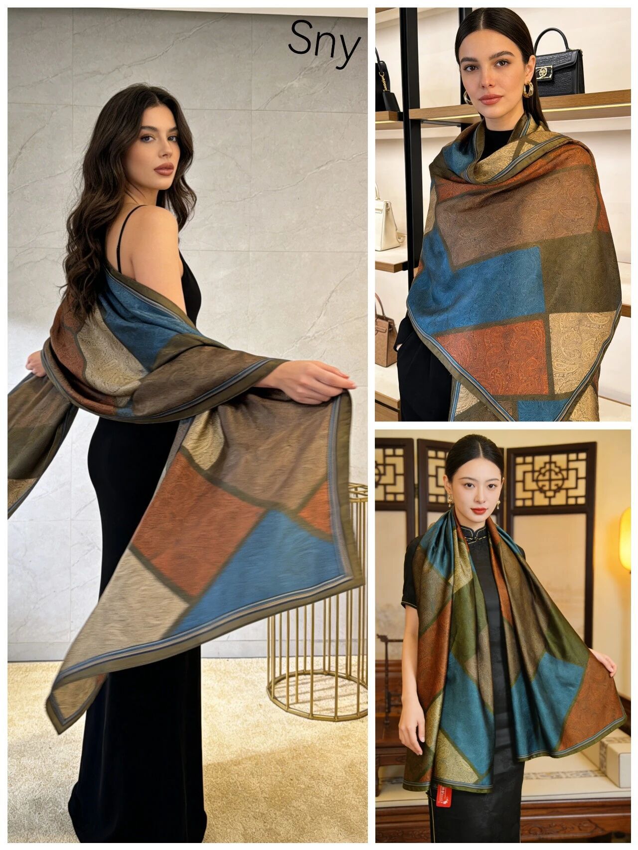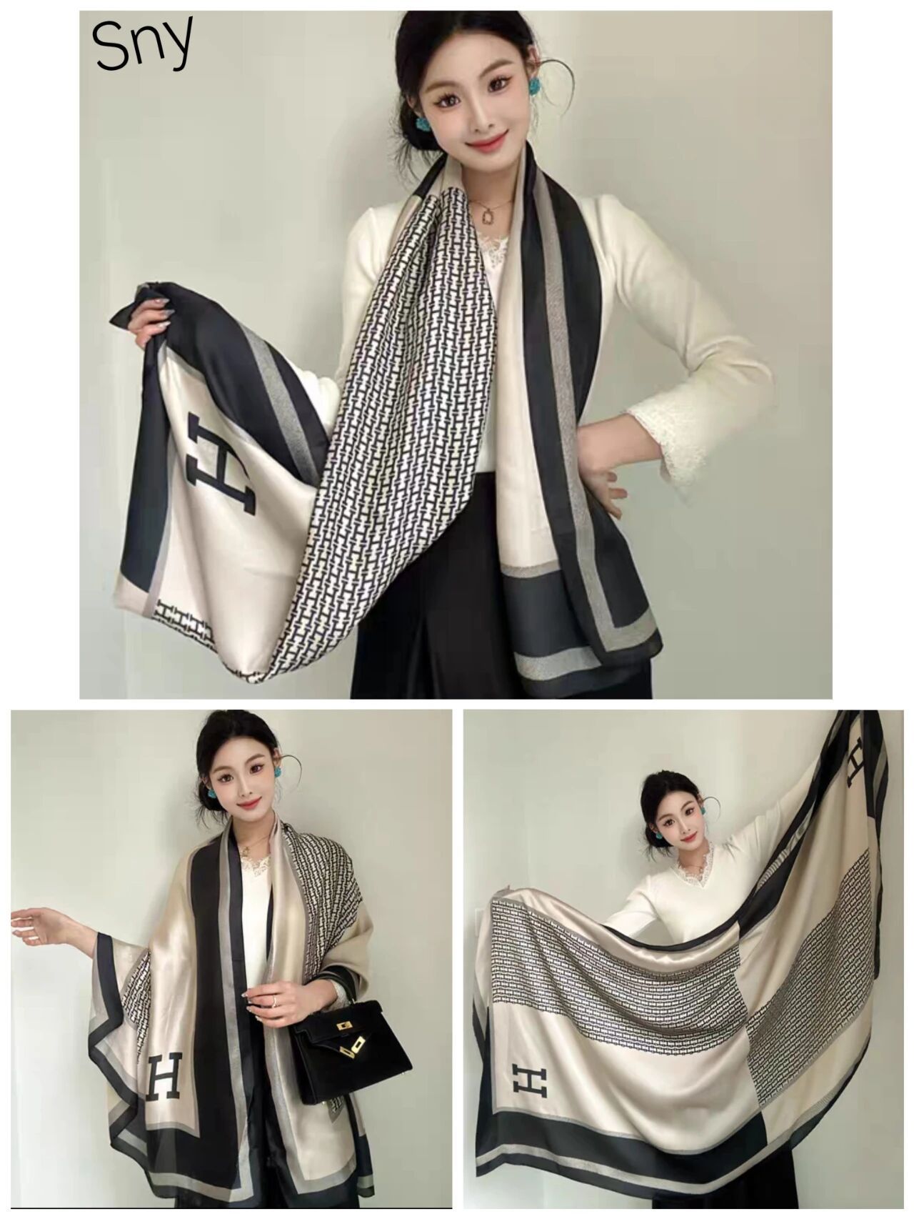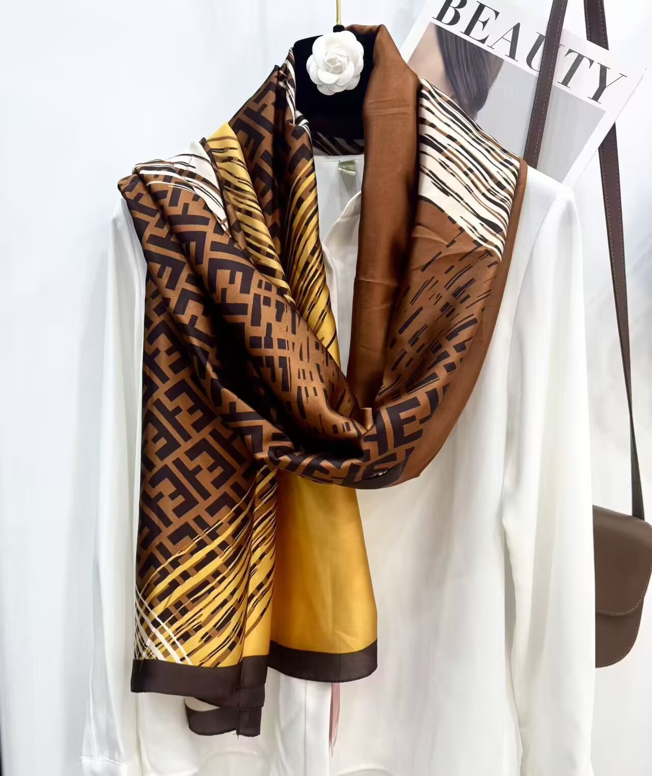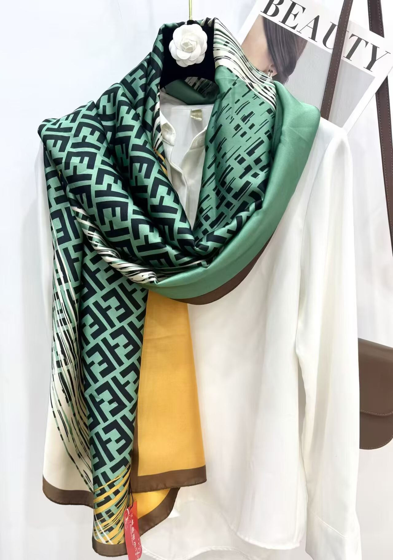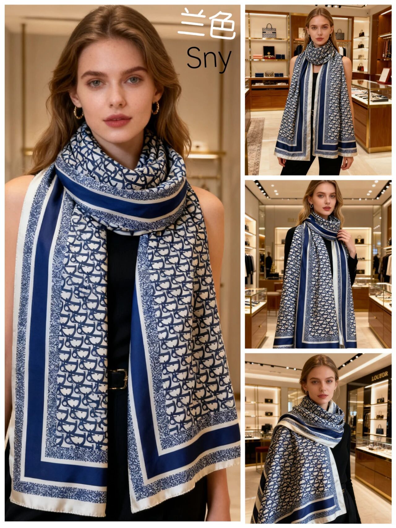새로운 시뮬레이션 실크 스카프, 브로케이드 롱 스카프, 봄과 가을 패션, 다재다능한 여름 자외선 차단 숄, 터번스토어 가기