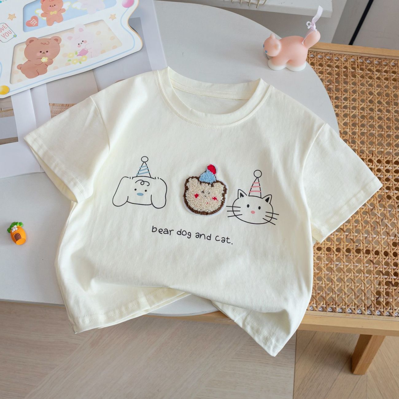 여자 여름 반팔 티셔츠 2025 새로운 순수 코튼 만화 동물 프린트 어린 소녀 캐주얼 다목적 탑 유행스토어 가기