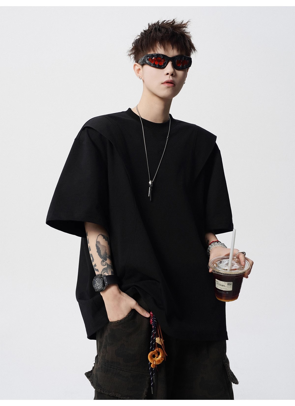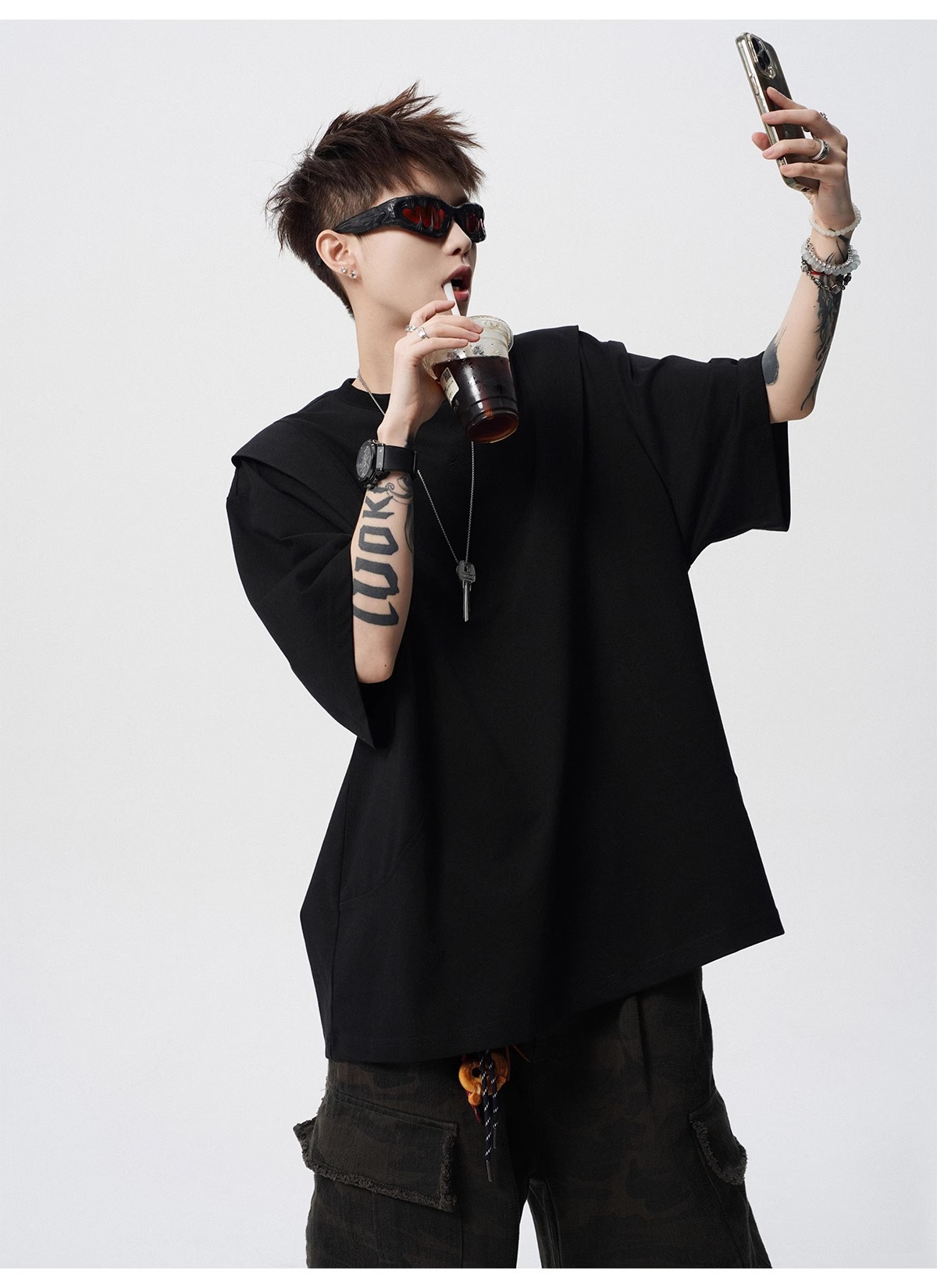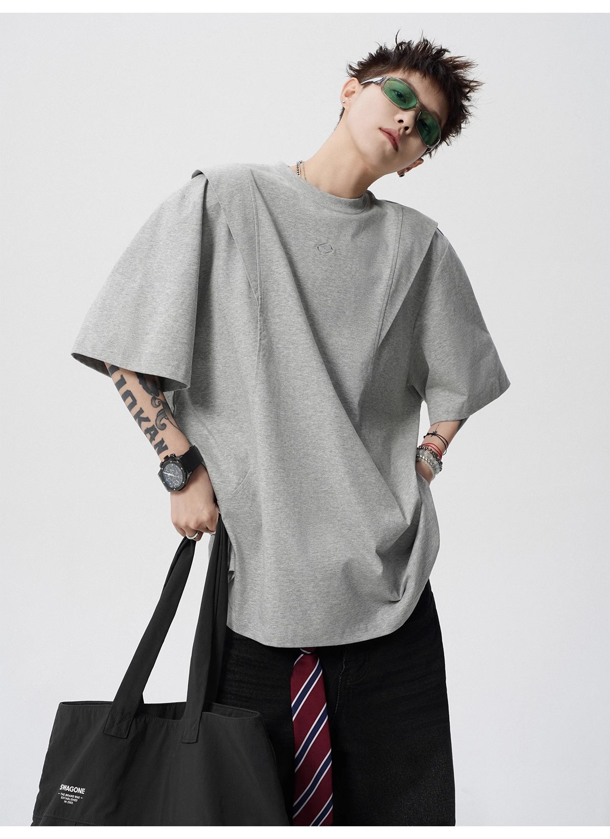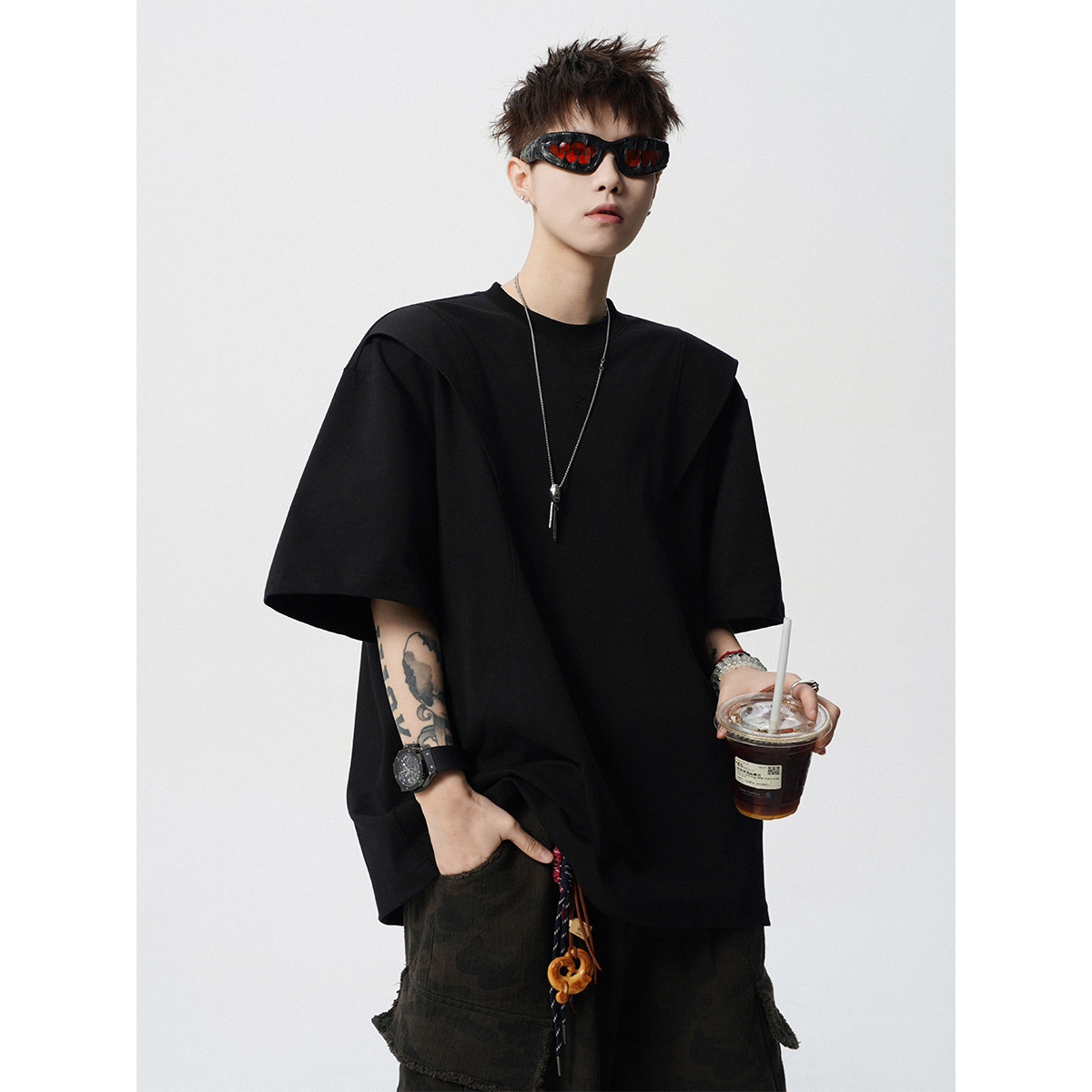 루즈 리프 컷 반팔 티셔츠 남성 여름 아메리칸 스타일 하이 스트리트 해체 크루 넥 풀오버 트렌디 브랜드 디자인 센스 루즈 티셔츠