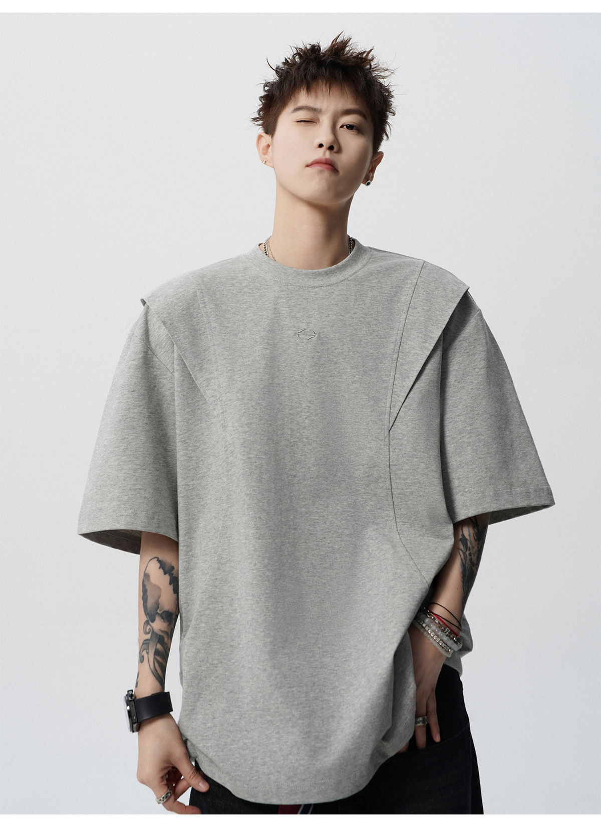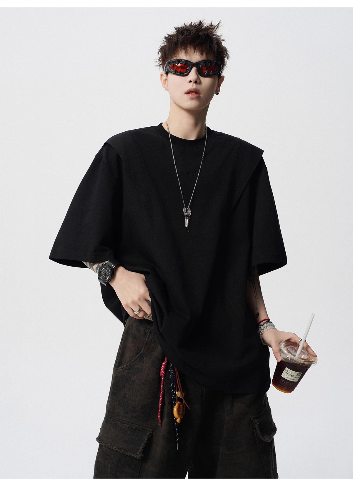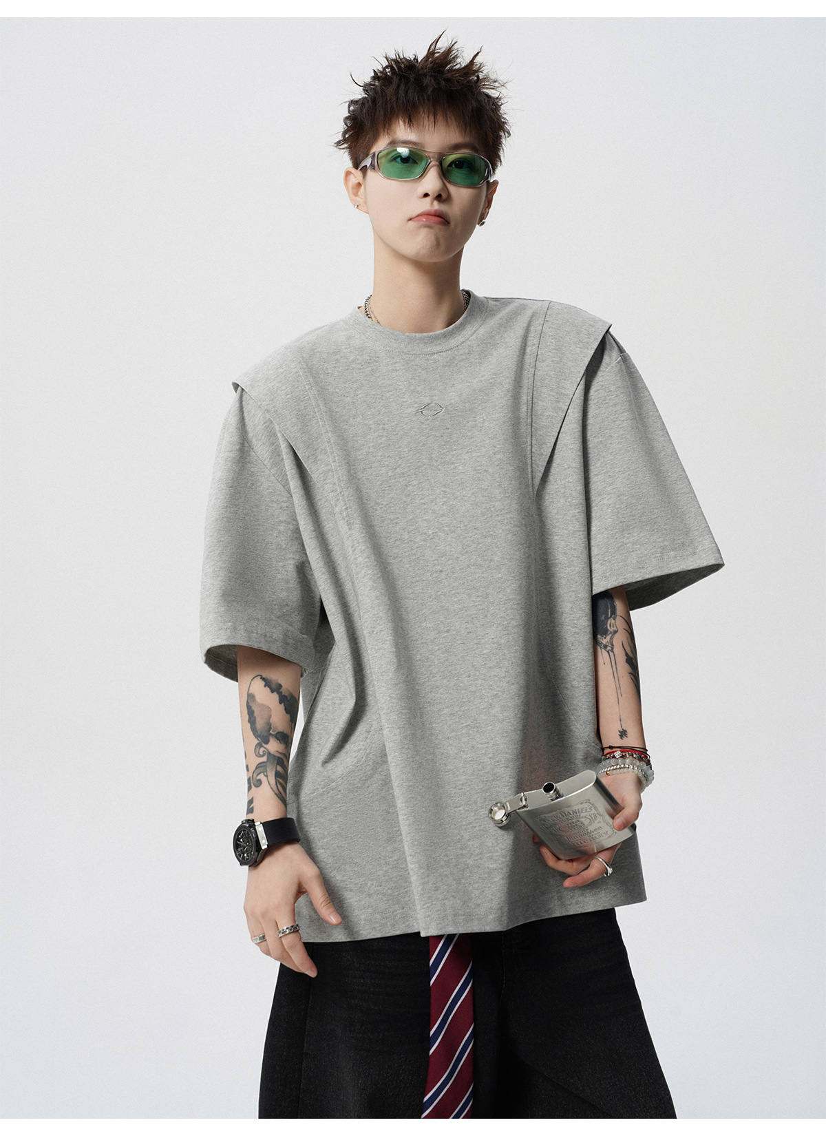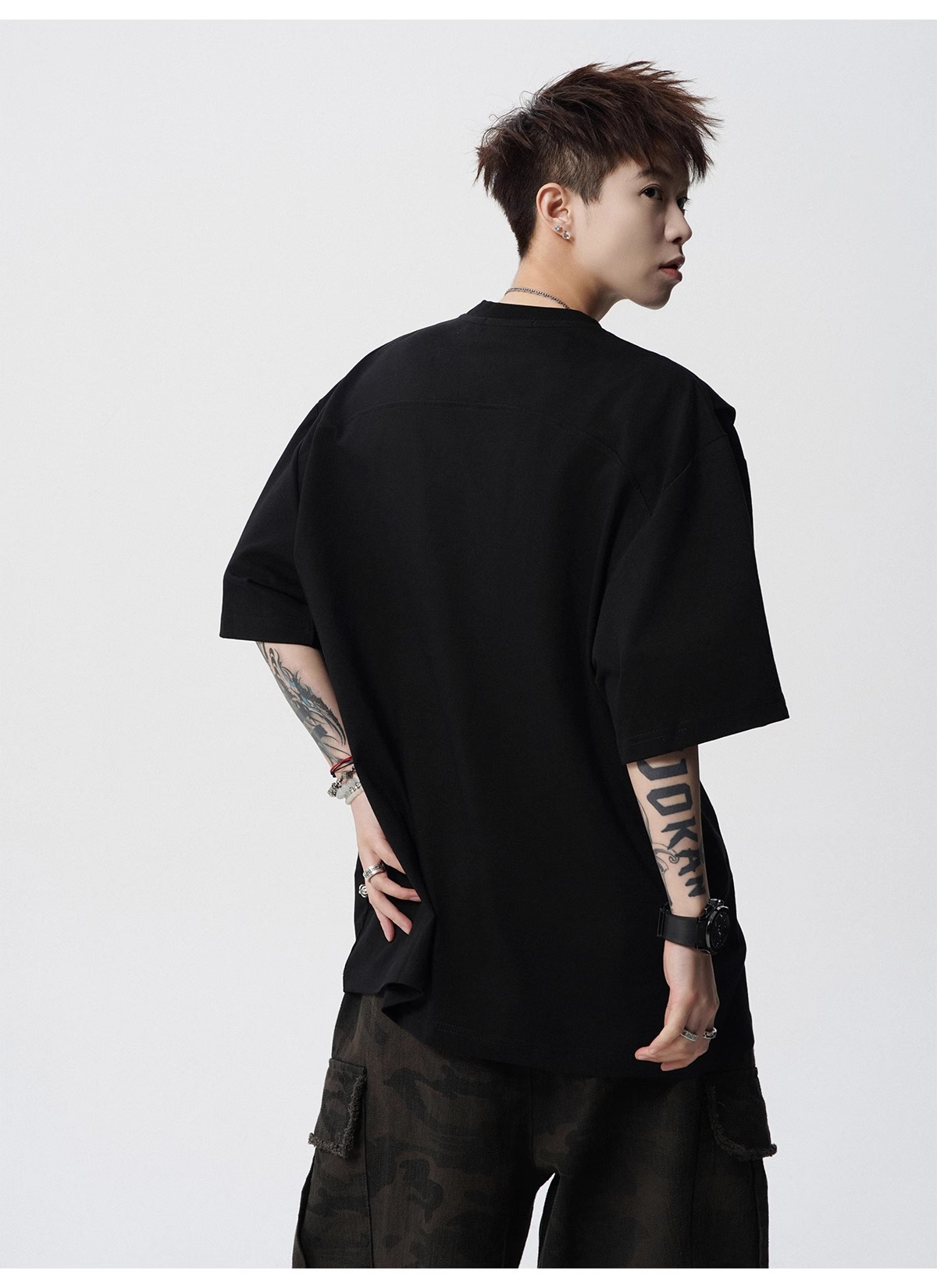 루즈 리프 컷 반팔 티셔츠 남성 여름 아메리칸 스타일 하이 스트리트 해체 크루 넥 풀오버 트렌디 브랜드 디자인 센스 루즈 티셔츠