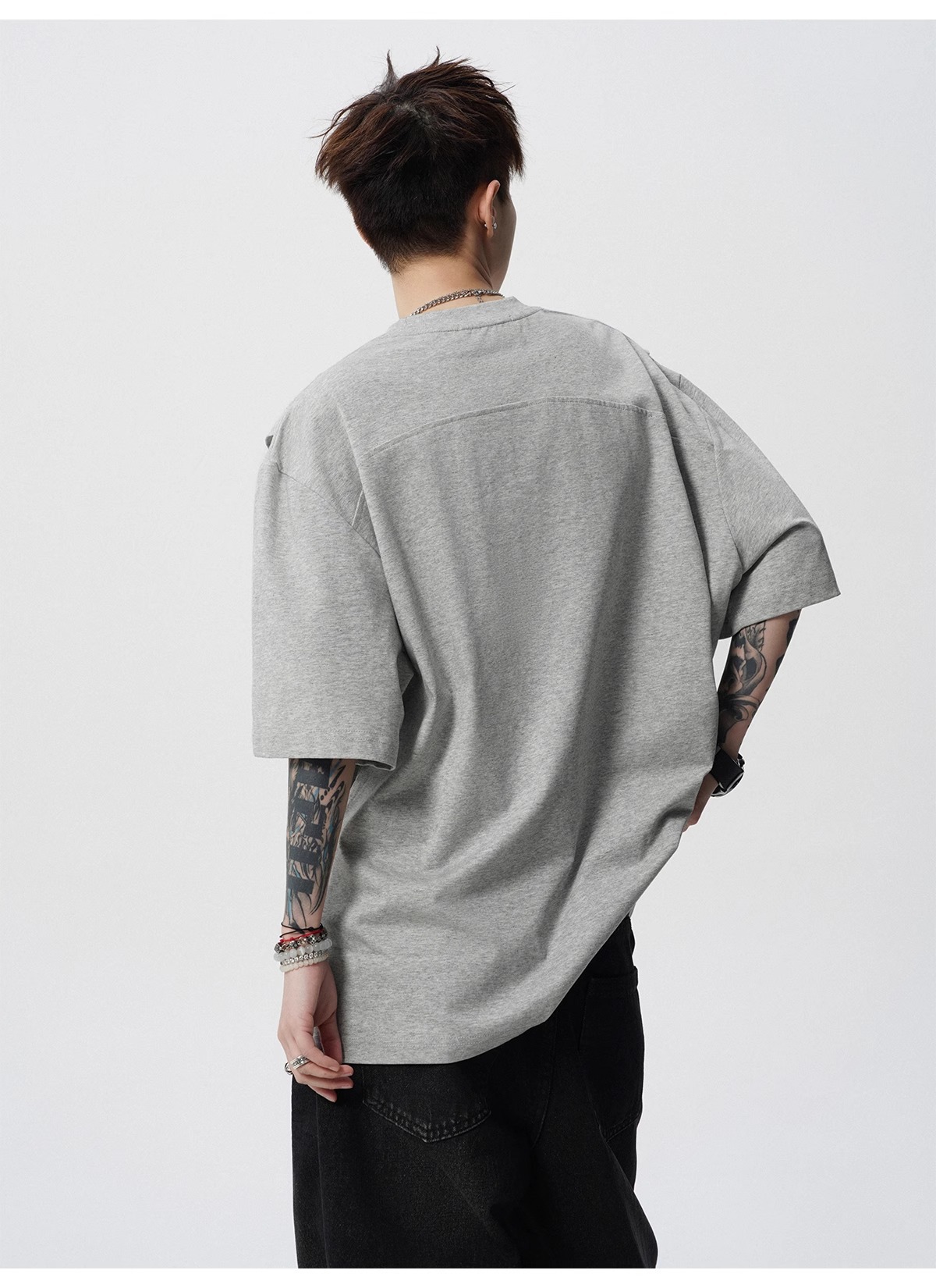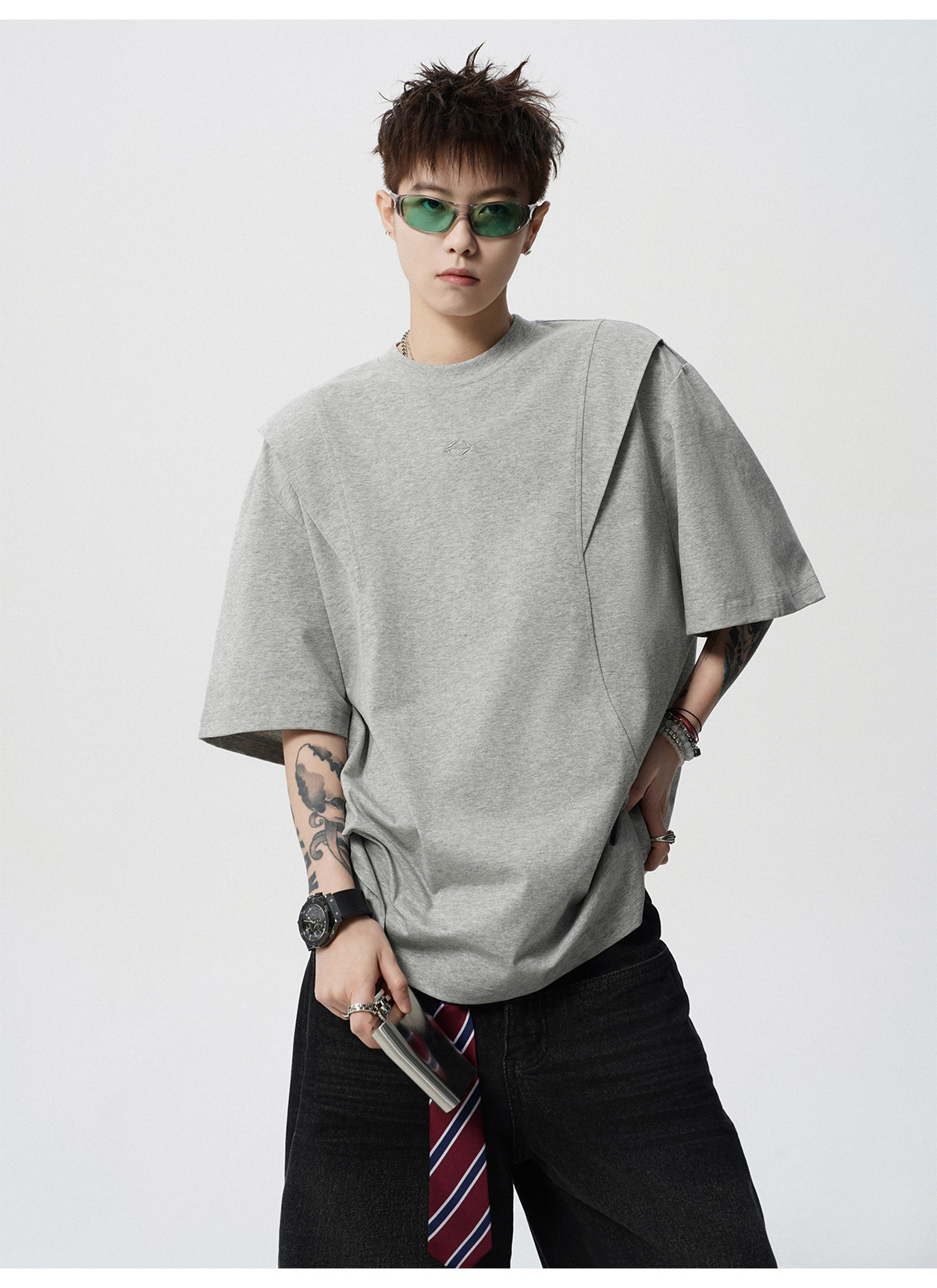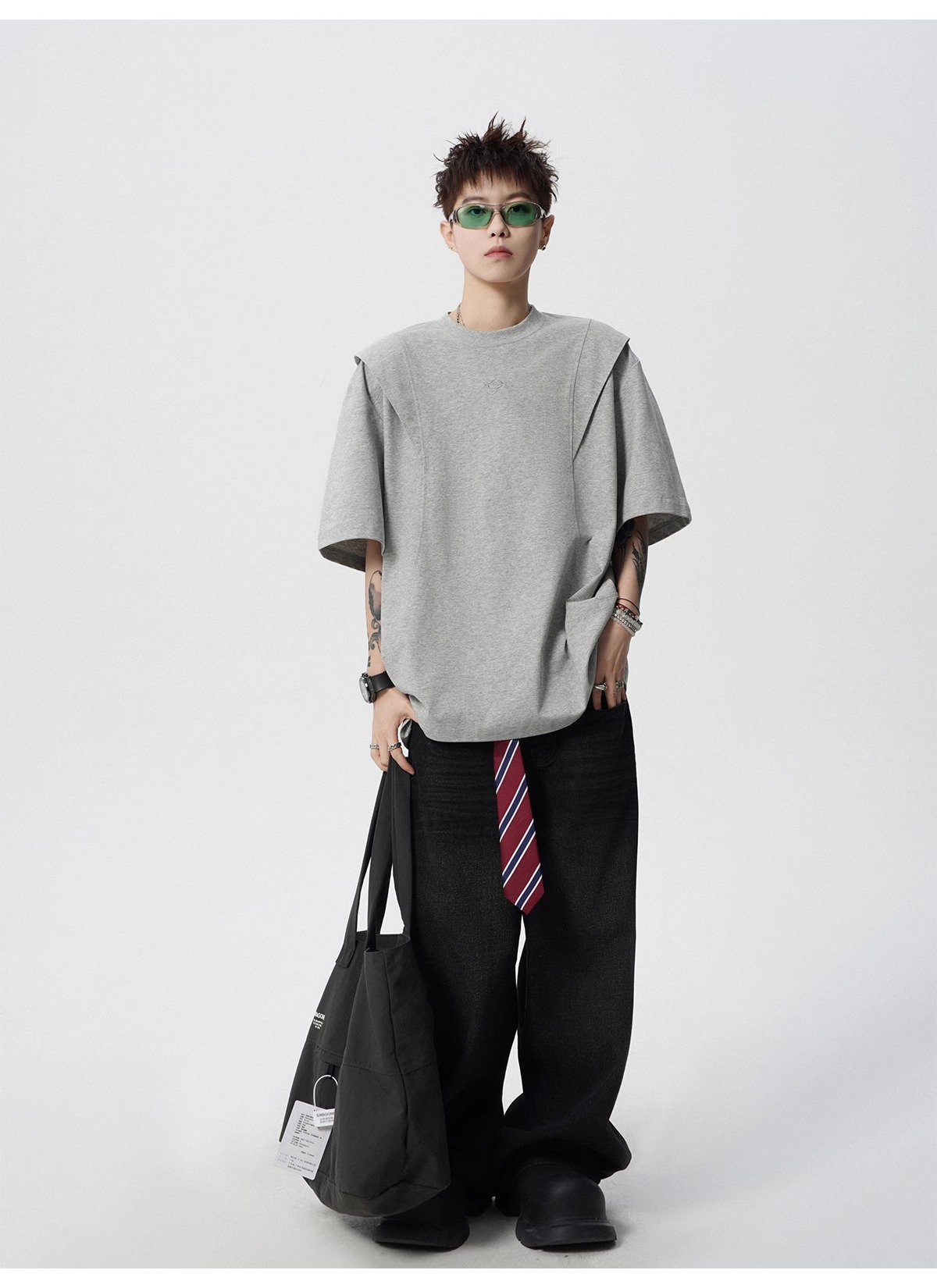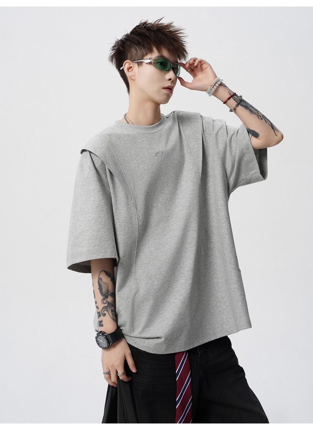루즈 리프 컷 반팔 티셔츠 남성 여름 아메리칸 스타일 하이 스트리트 해체 크루 넥 풀오버 트렌디 브랜드 디자인 센스 루즈 티셔츠