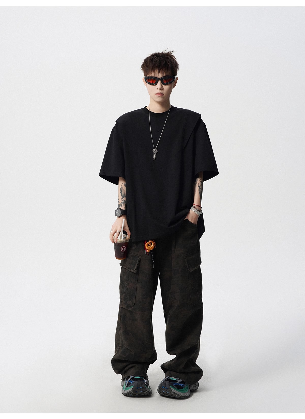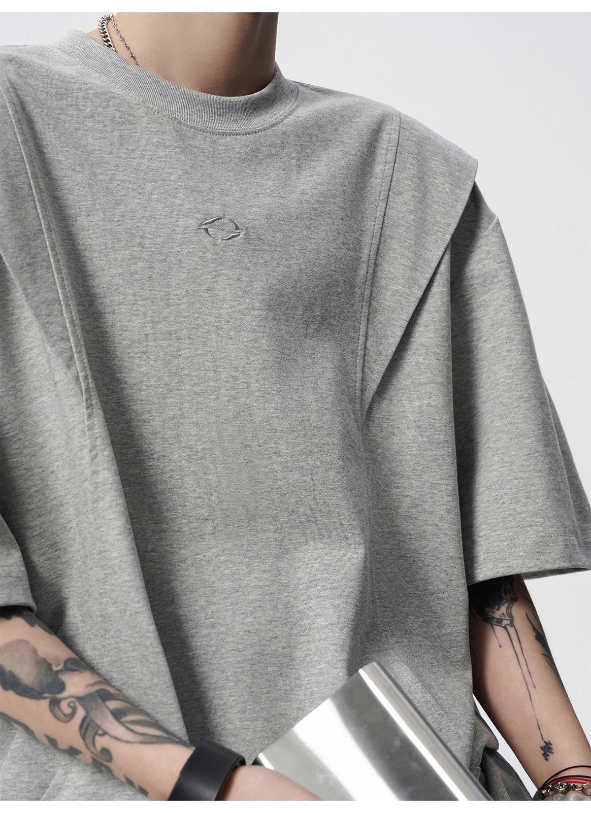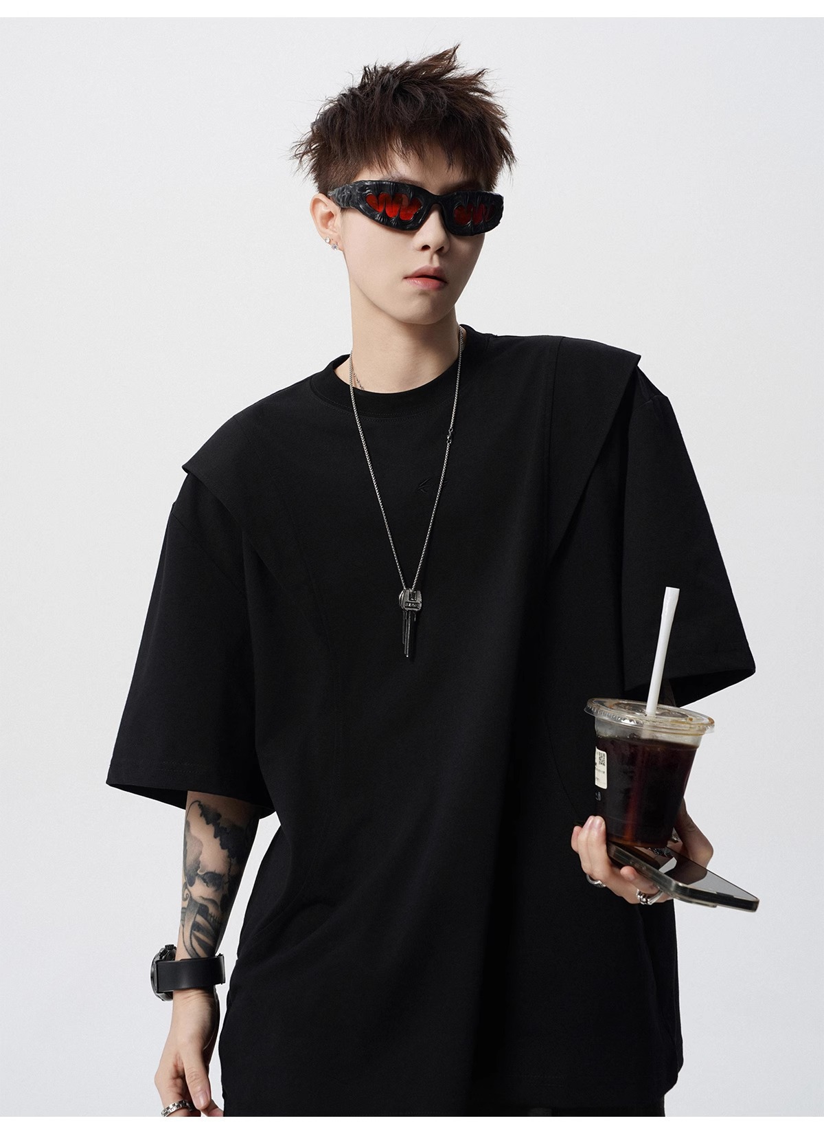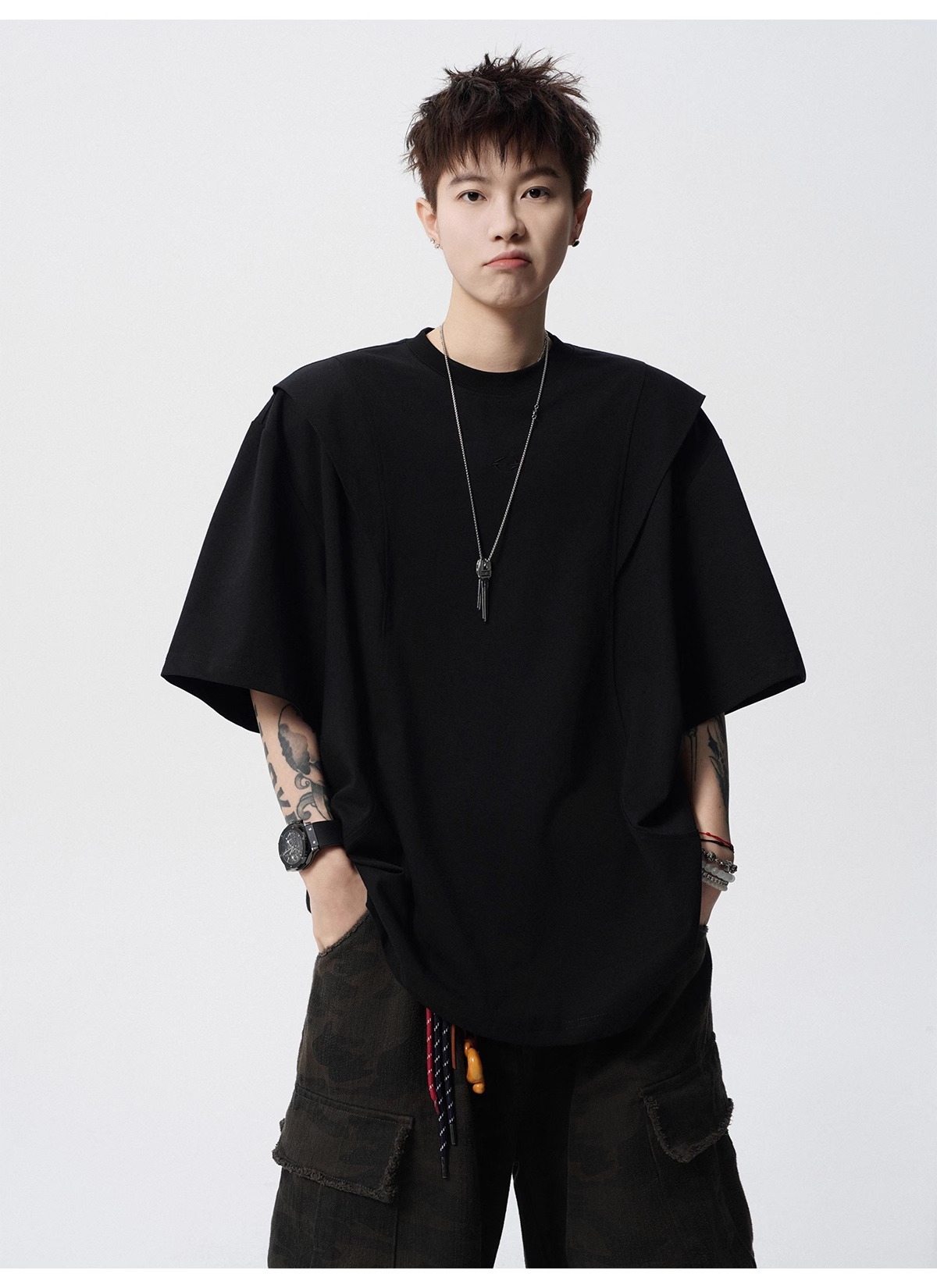 루즈 리프 컷 반팔 티셔츠 남성 여름 아메리칸 스타일 하이 스트리트 해체 크루 넥 풀오버 트렌디 브랜드 디자인 센스 루즈 티셔츠